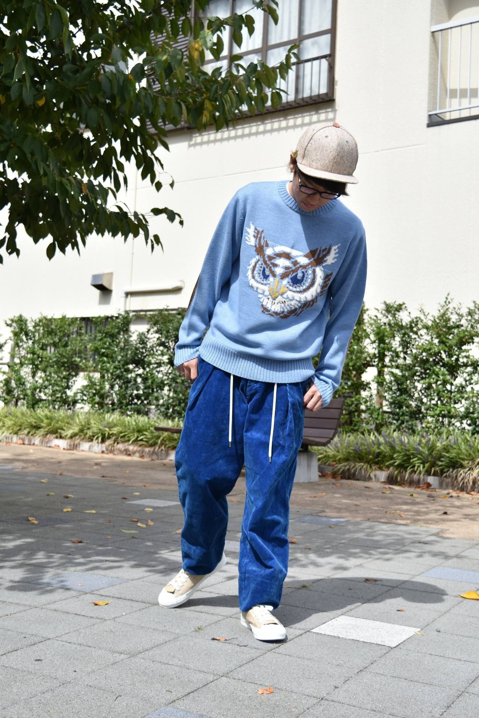 ◾︎ Knit / フクロウジャガードニット (水色) 34,000 ( +TAX) 着用サイズ:M