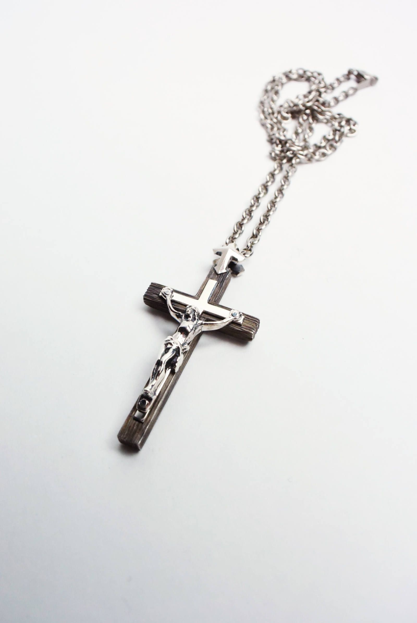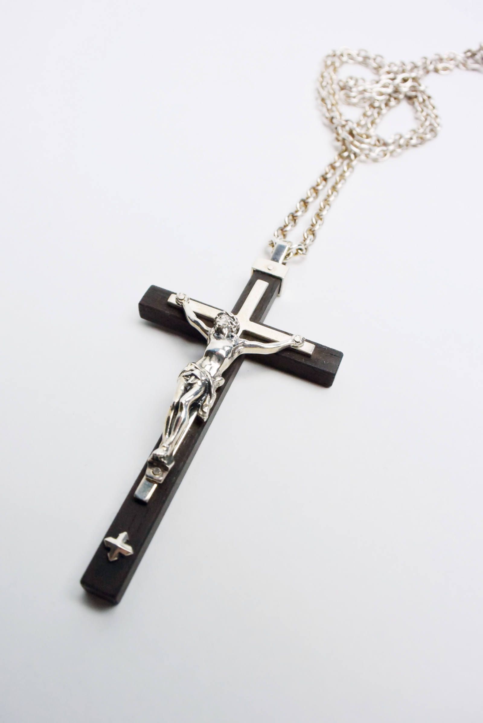 サイズダウンして更に魅力的に新型ロザリオSILVER925にチタンチェーンを使い変色しない金属アレルギーの方も付けられるタイプが追加 クロス土台が流木の様に見えるますがシルバーを塗装やメッキを使わないで表現