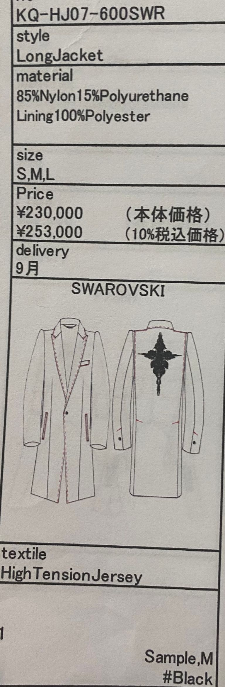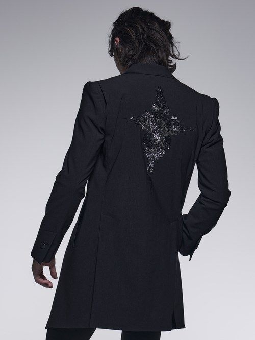 《予約品》 LongJacket / 背中スワロフスキー装飾ロングジャケット / ブラック 【kiryuyrik】 9月以降入荷予定
