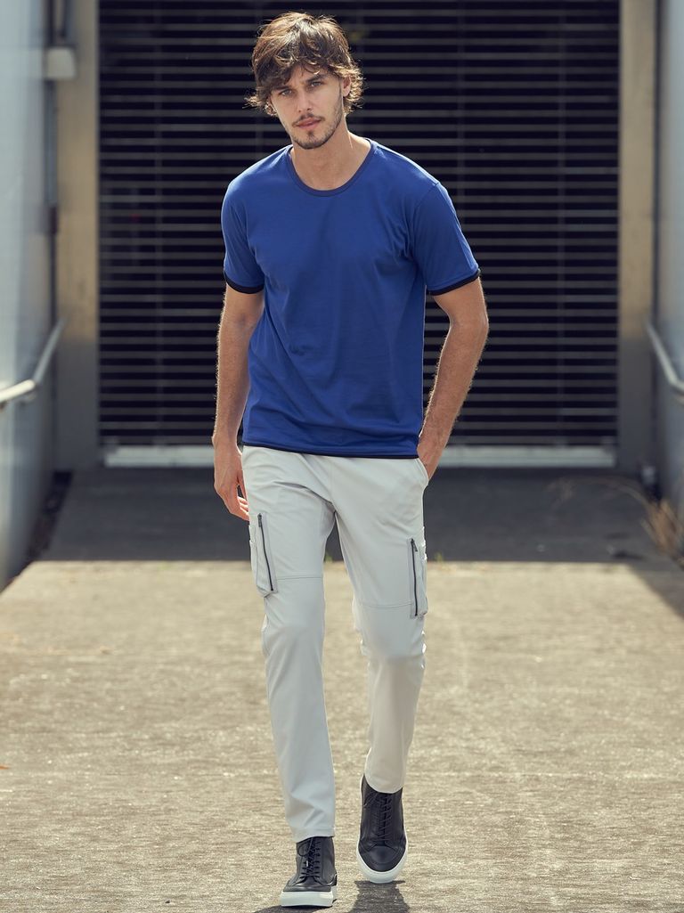 ・ややゆとりのベーシックシルエット。サイズ感にゆとりをもたせ、より夏に快適に着用できるアイテムに仕上げている。