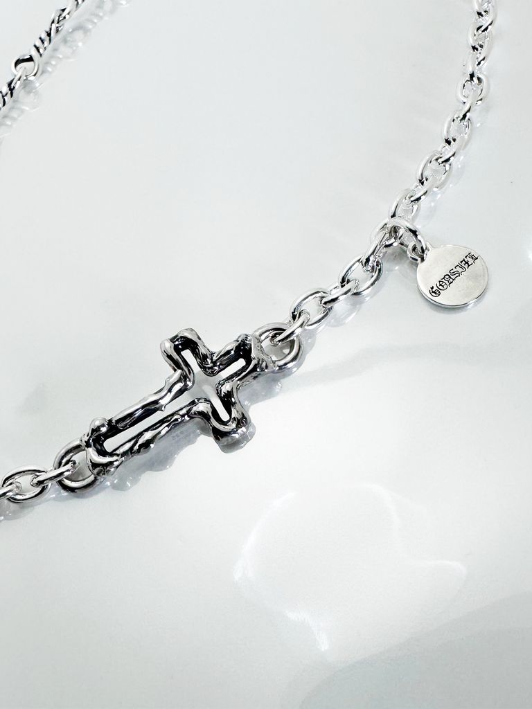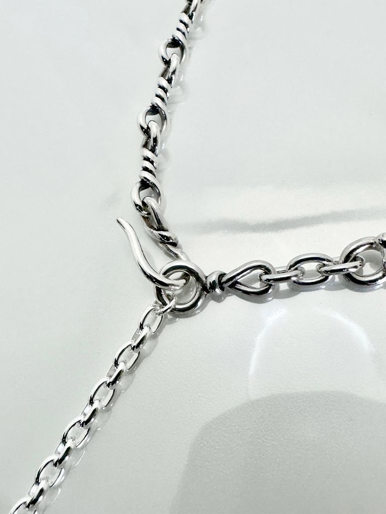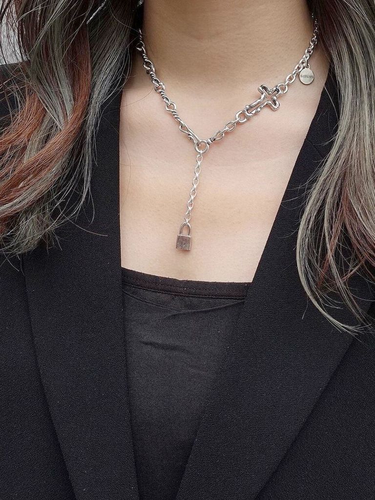 《受注生産》OPEN CROSS & TWIST CHAIN NECKLACE with PADLOCK pink silver / オープンクロス&ツイストチェーンネックレス ウィズピンクシルバーパドロック / 注文から5~8週間後入荷予定