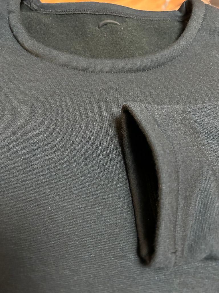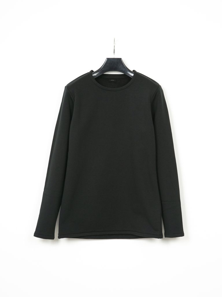 Fleece Lining Jersey L/S Crew Neck T-shirt / L/S革紐付き クルーネック T シャツ / ブラック