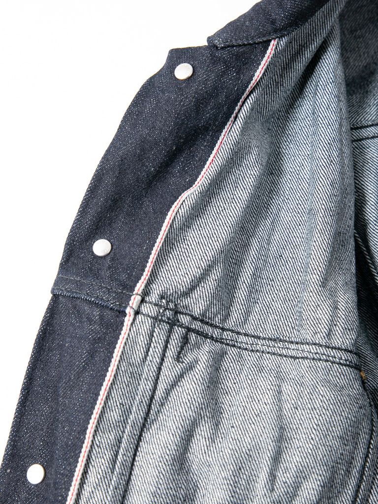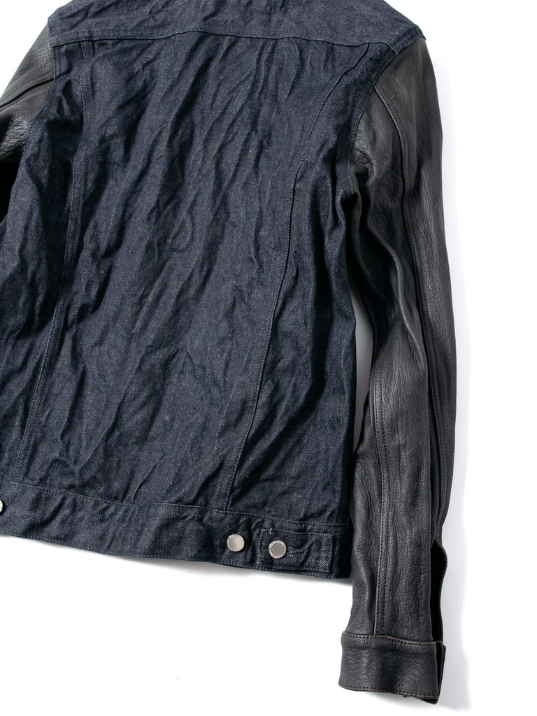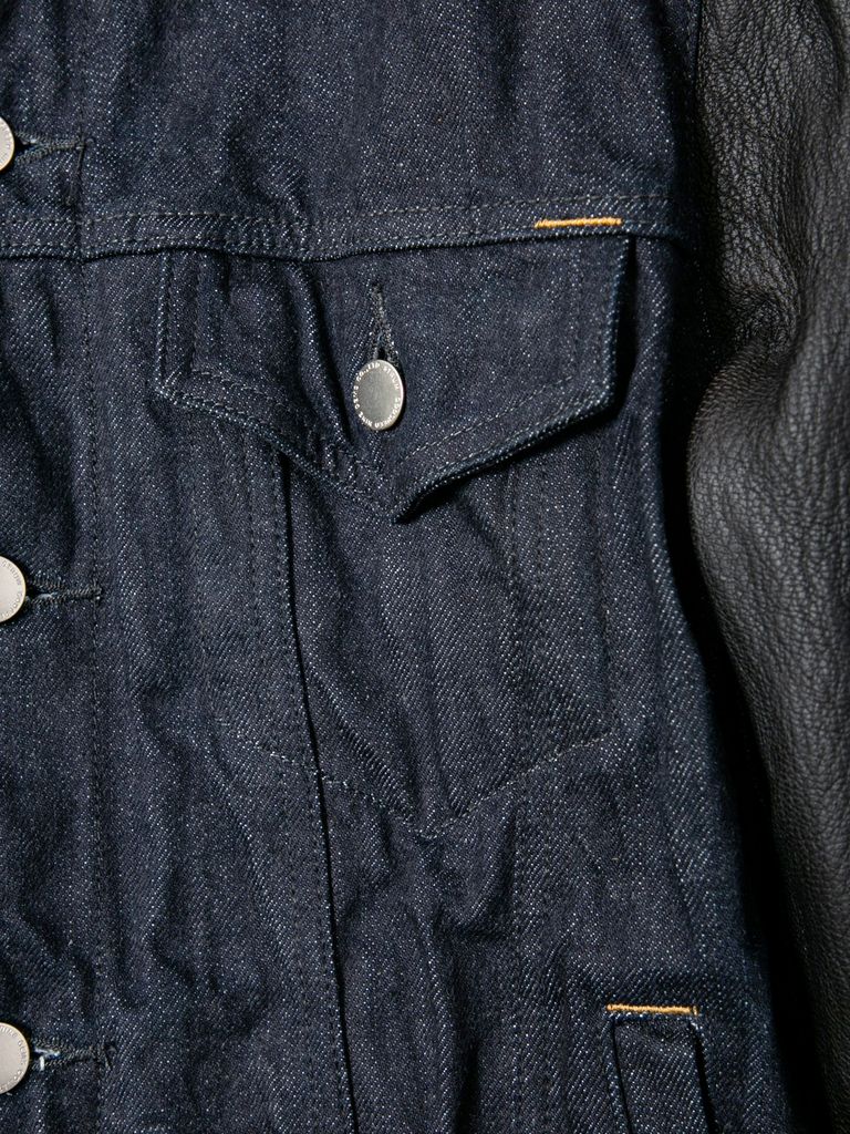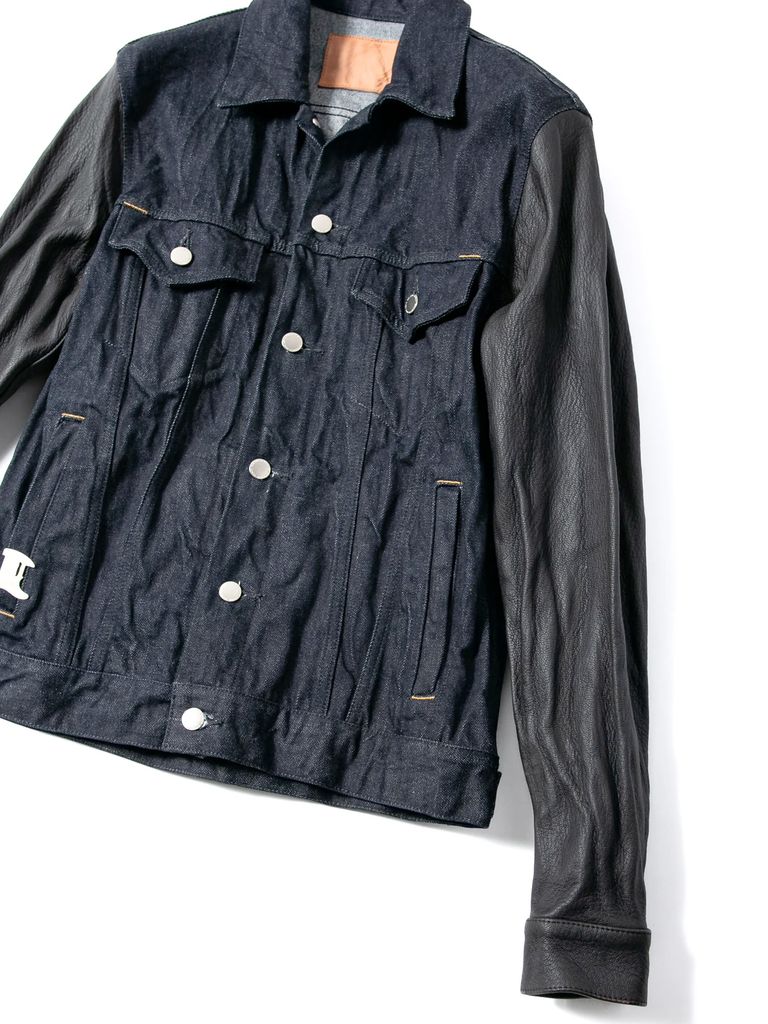 14oz Deep Blue Heavy Selvage Denim Leather Sleeve G Jean Blouson / 14oz ディープブルー ヘビーセルヴィッチ デニム 袖革 Gジャン / BLITZ / インディゴ(ワンウォッシュ)