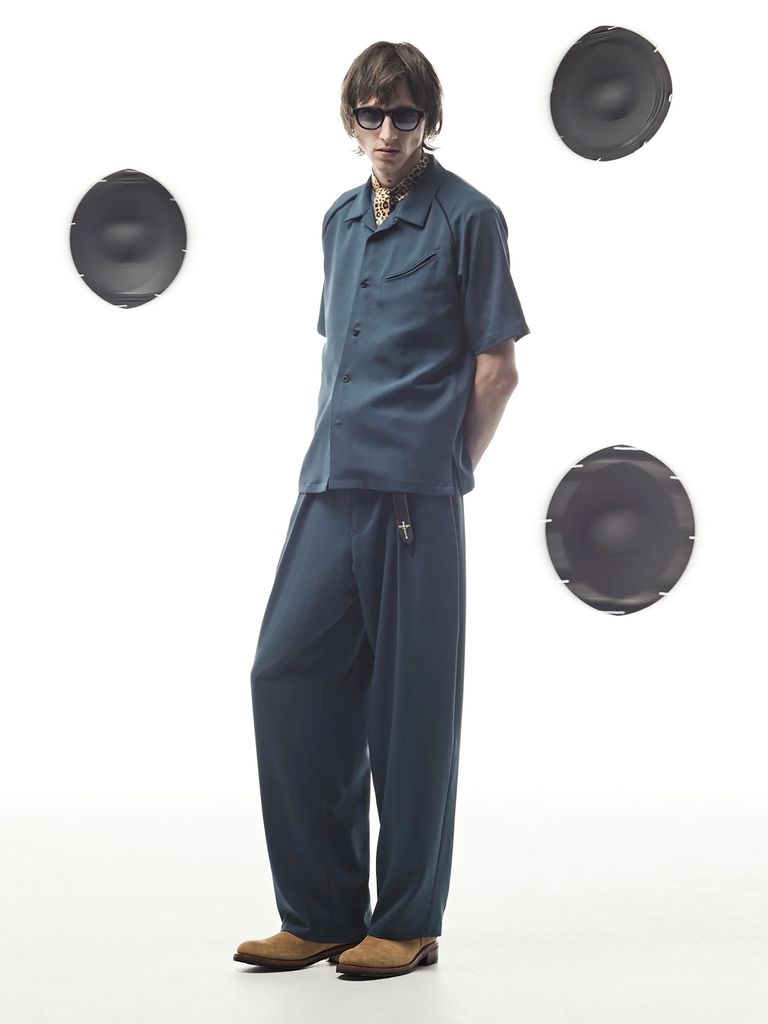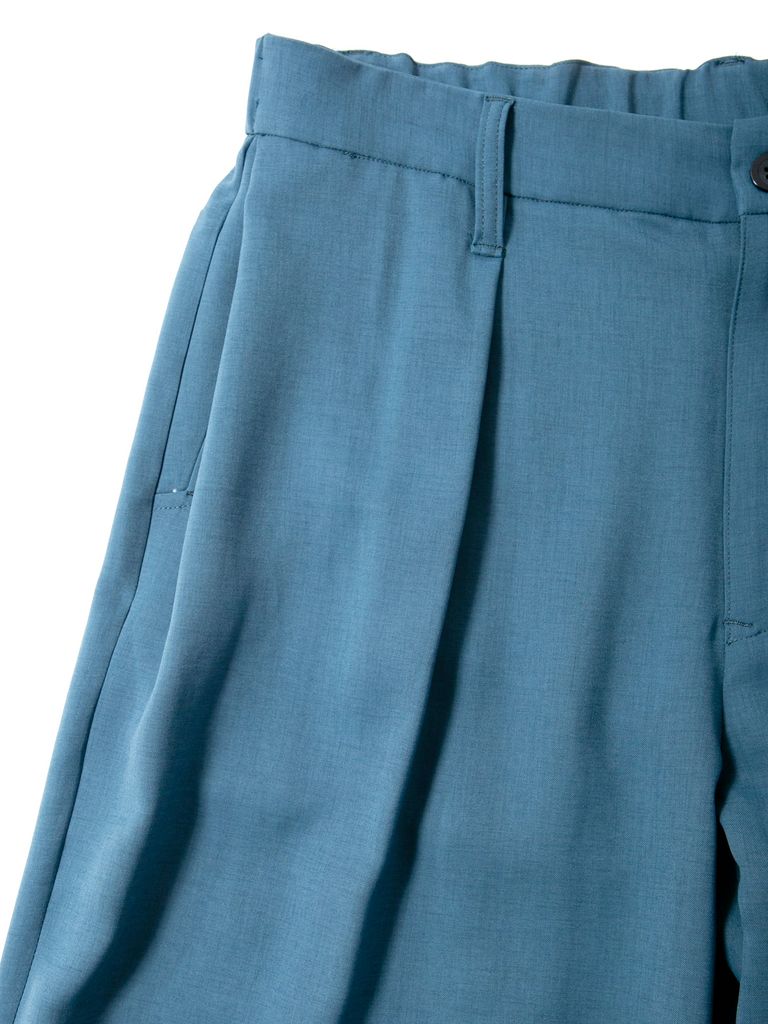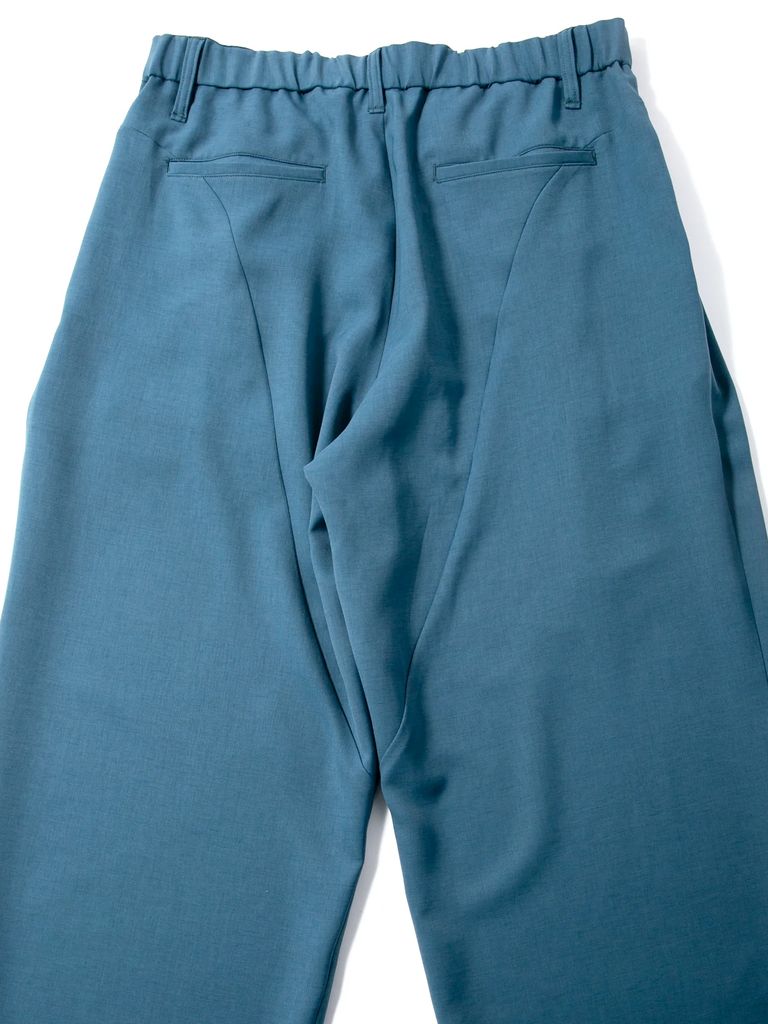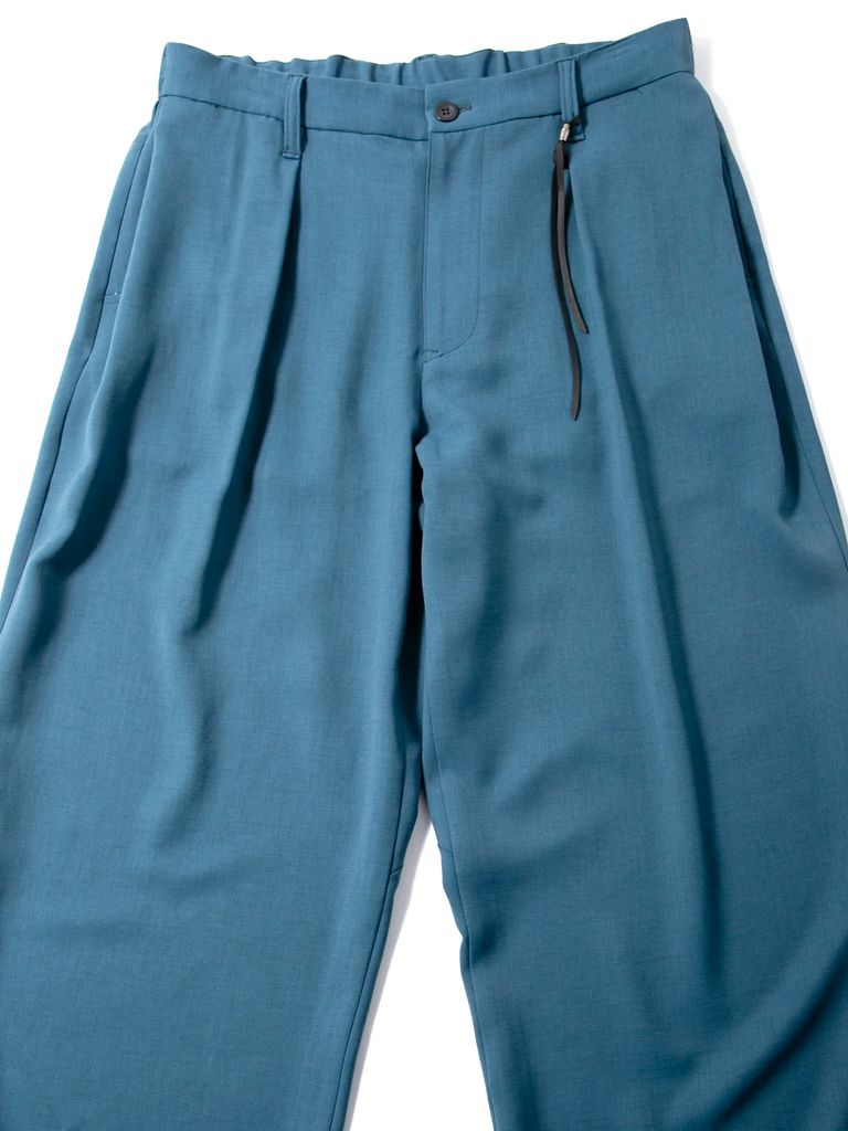 Polyester Stretch Twill Barrel Wide Pants / ポリエステル ストレッチ ツイル バレル ワイドパンツ / ブルーグリーン