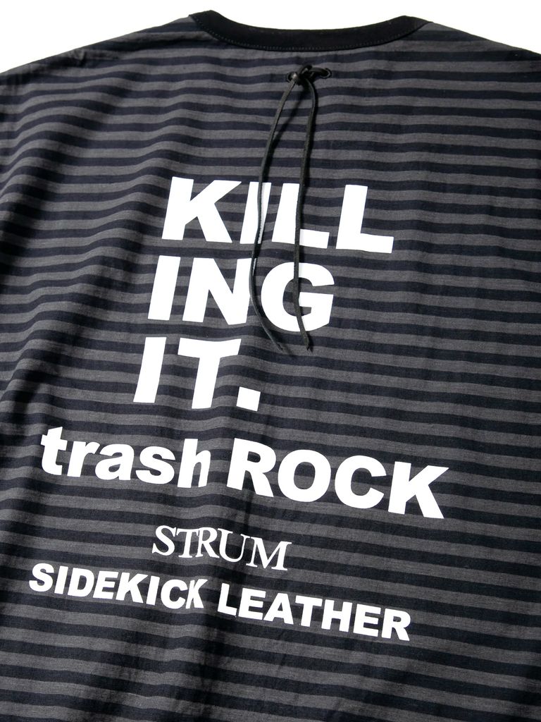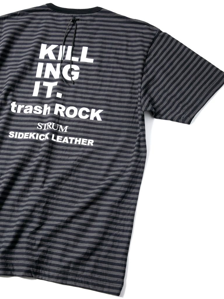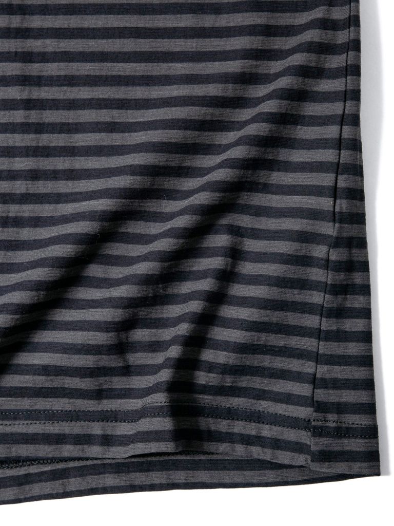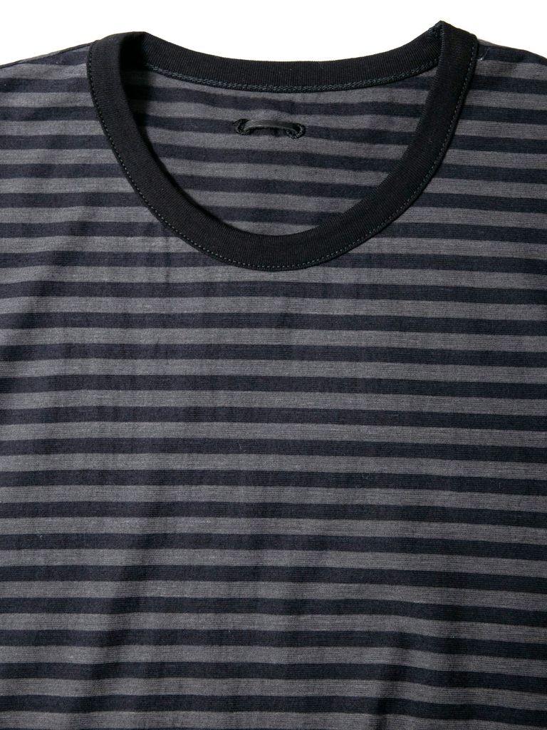 High Twisted Yarn Cotton Single Jersey Stripes Printed Crew Neck T-shirt / ボーダー強撚天竺 プリント クルーネック Tシャツ / ブラック×グレー