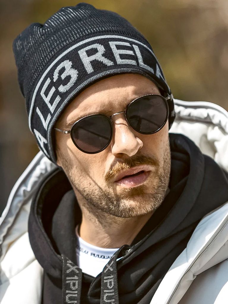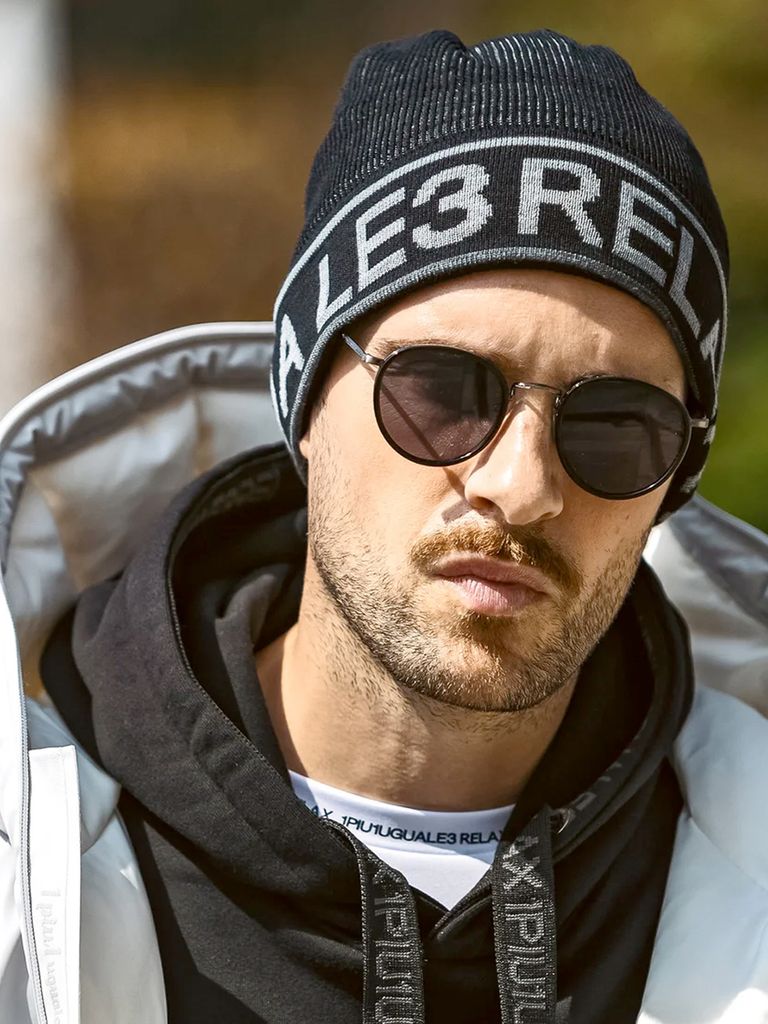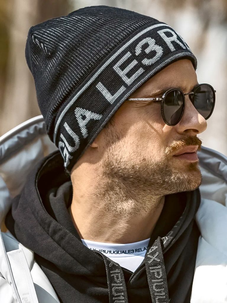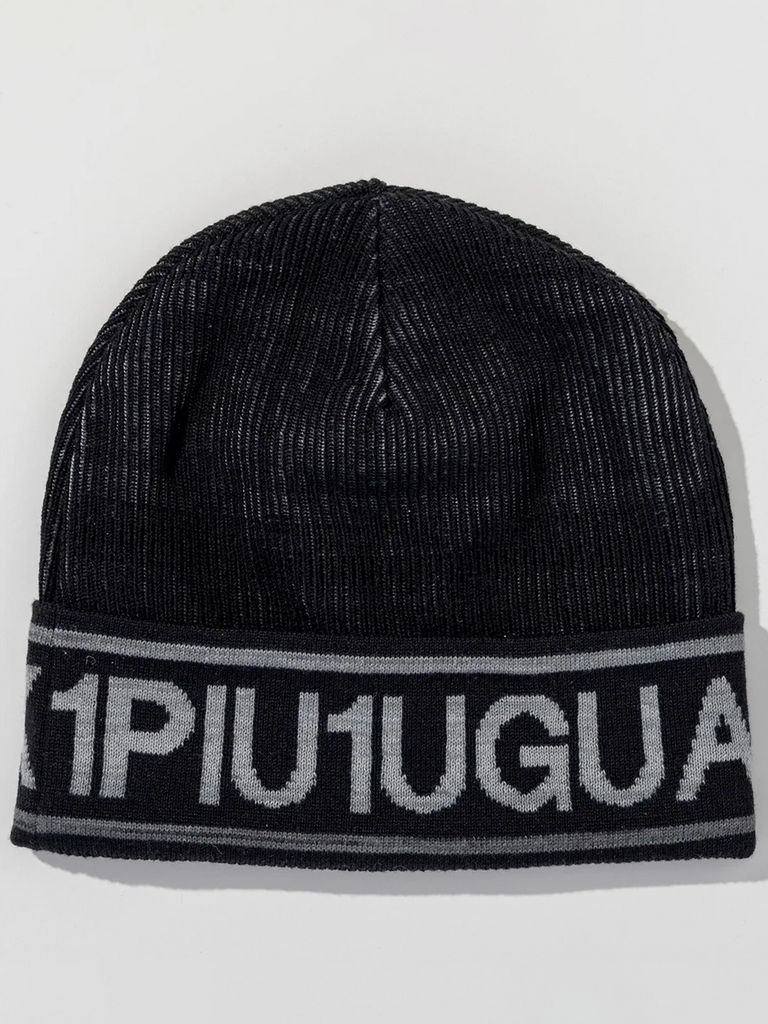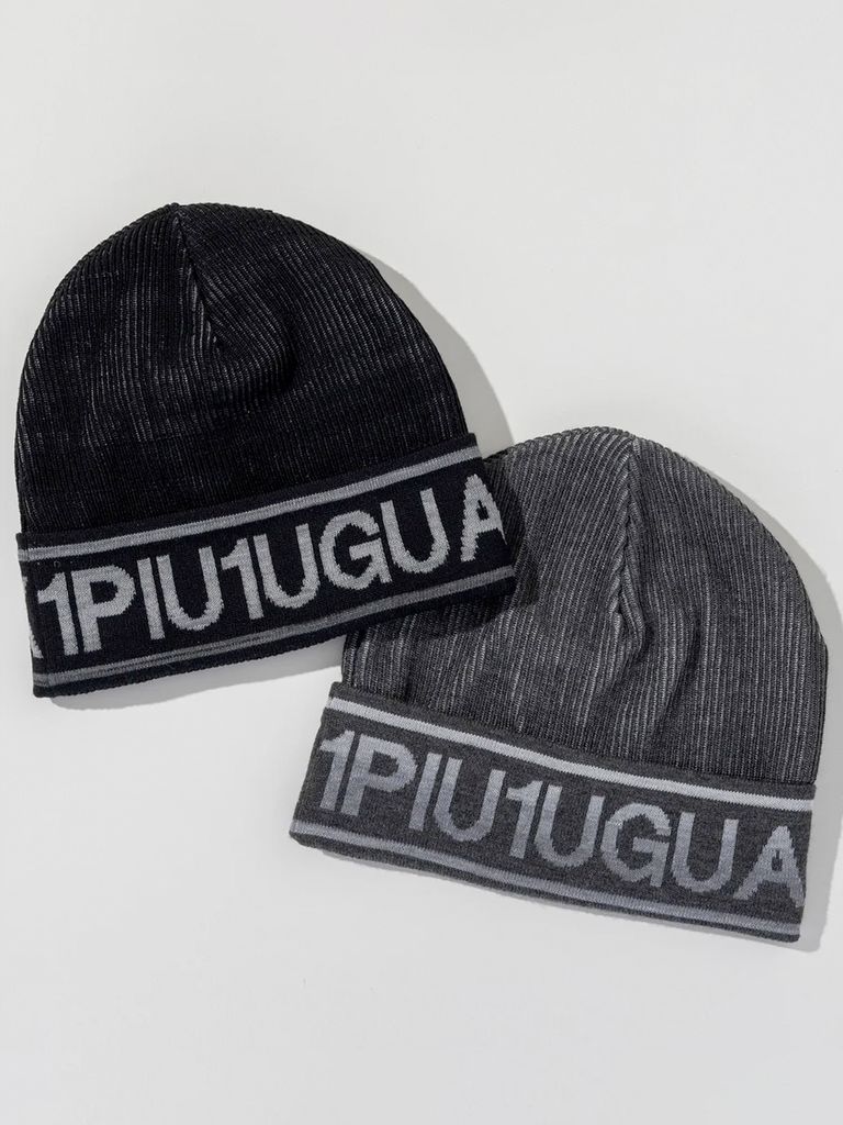 ブランドロゴをグラデーションでデザインしたニット帽。
