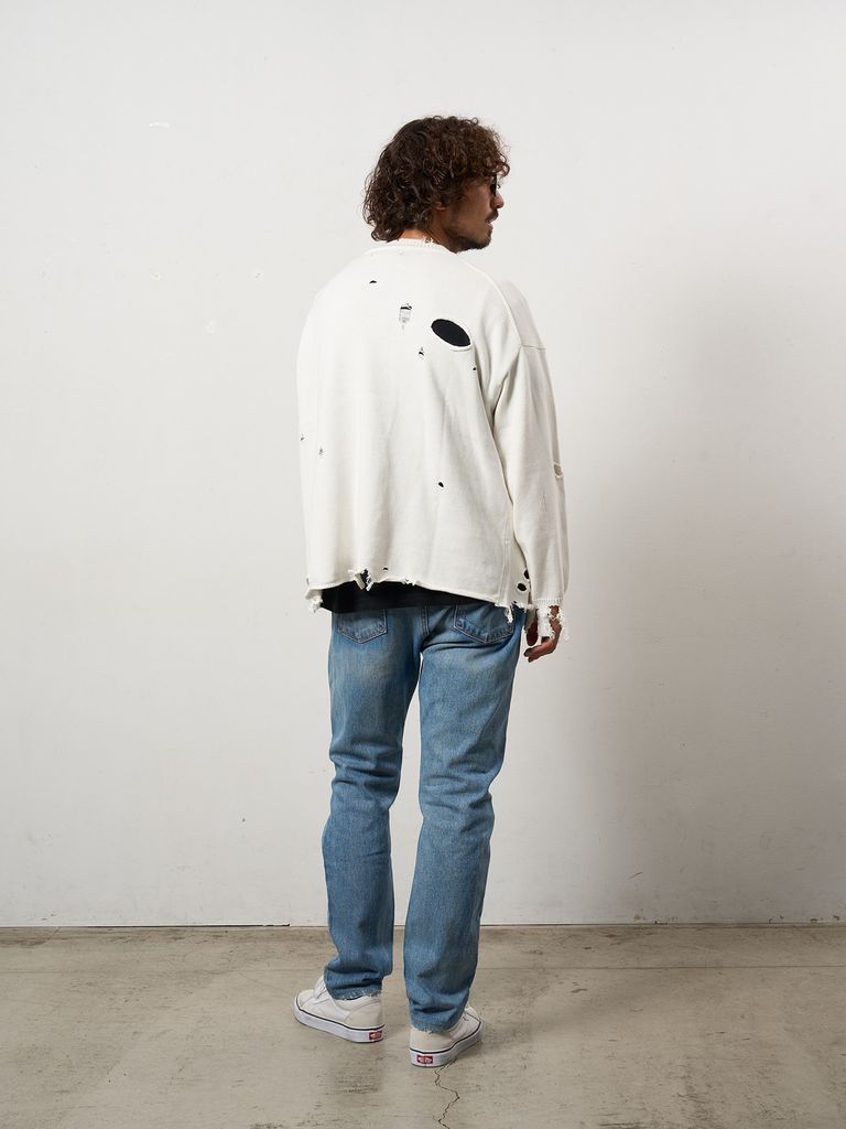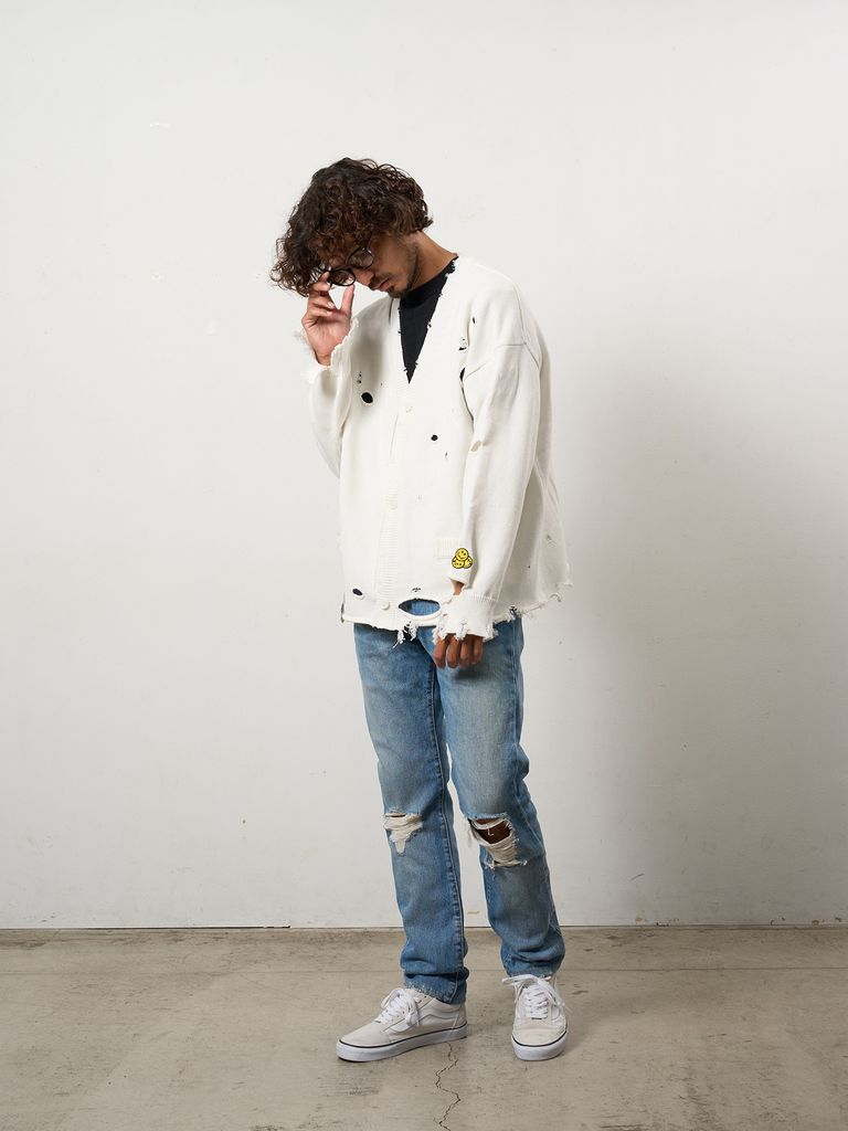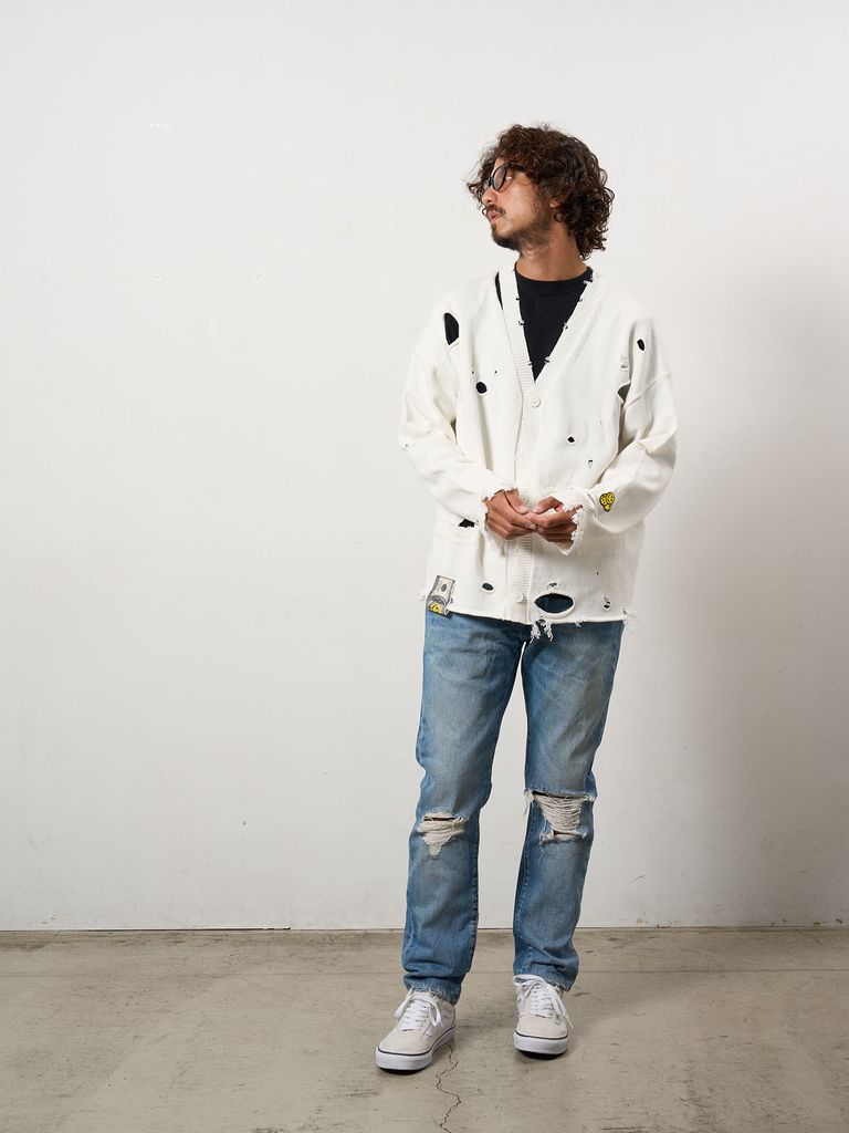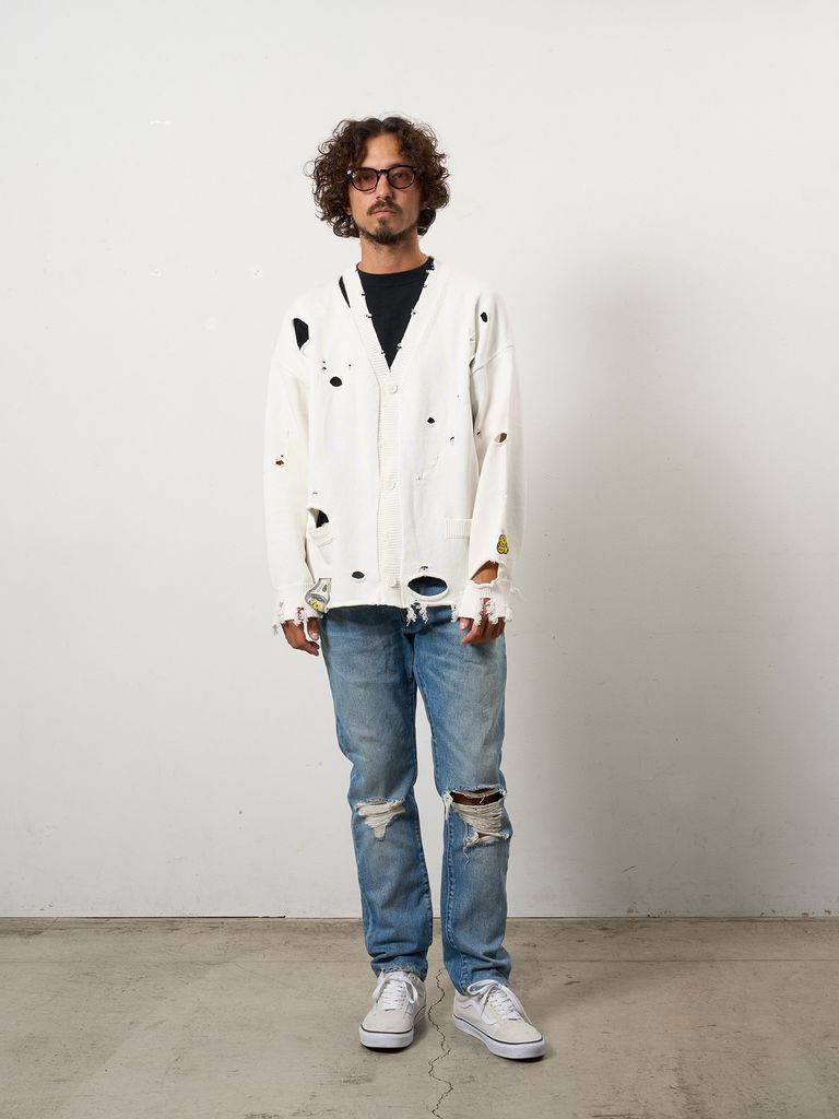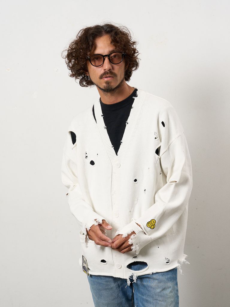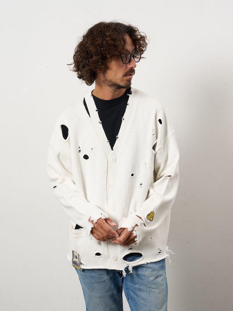 【予約品 10月16日(木) 締切】ローゲージコットンヤーン ダメージカーディガン / オフホワイト