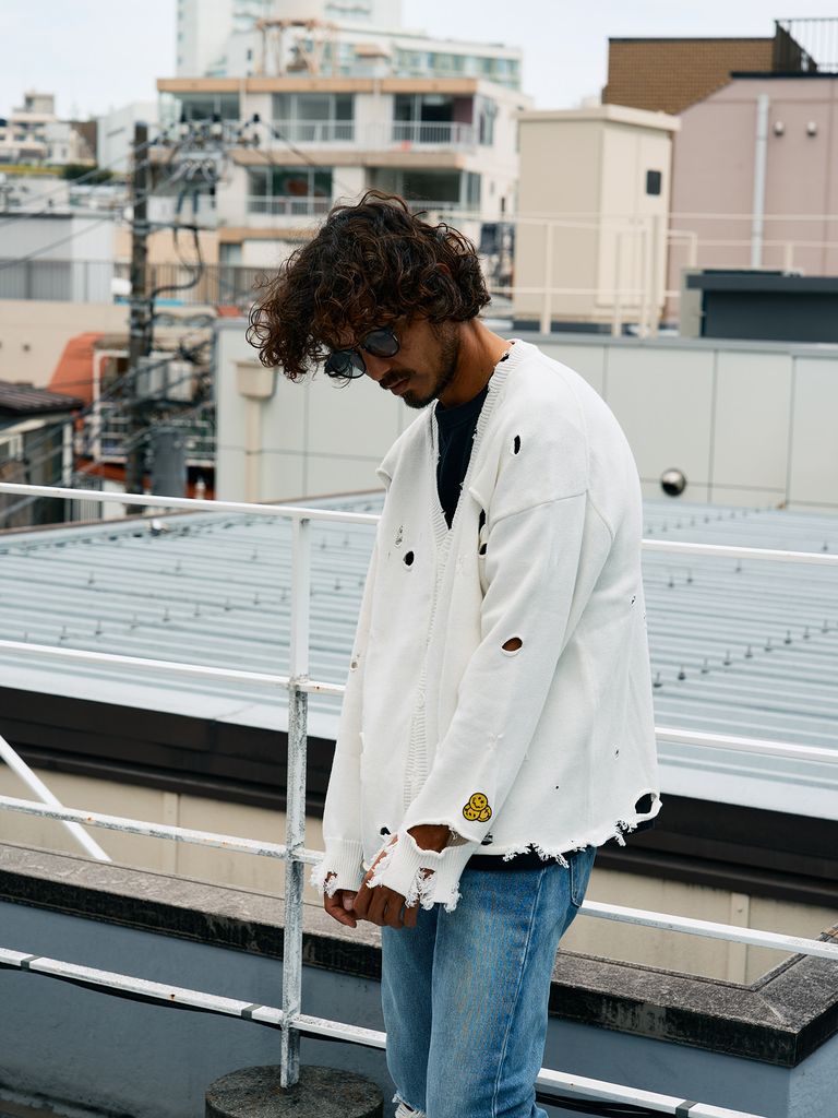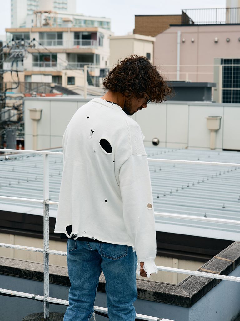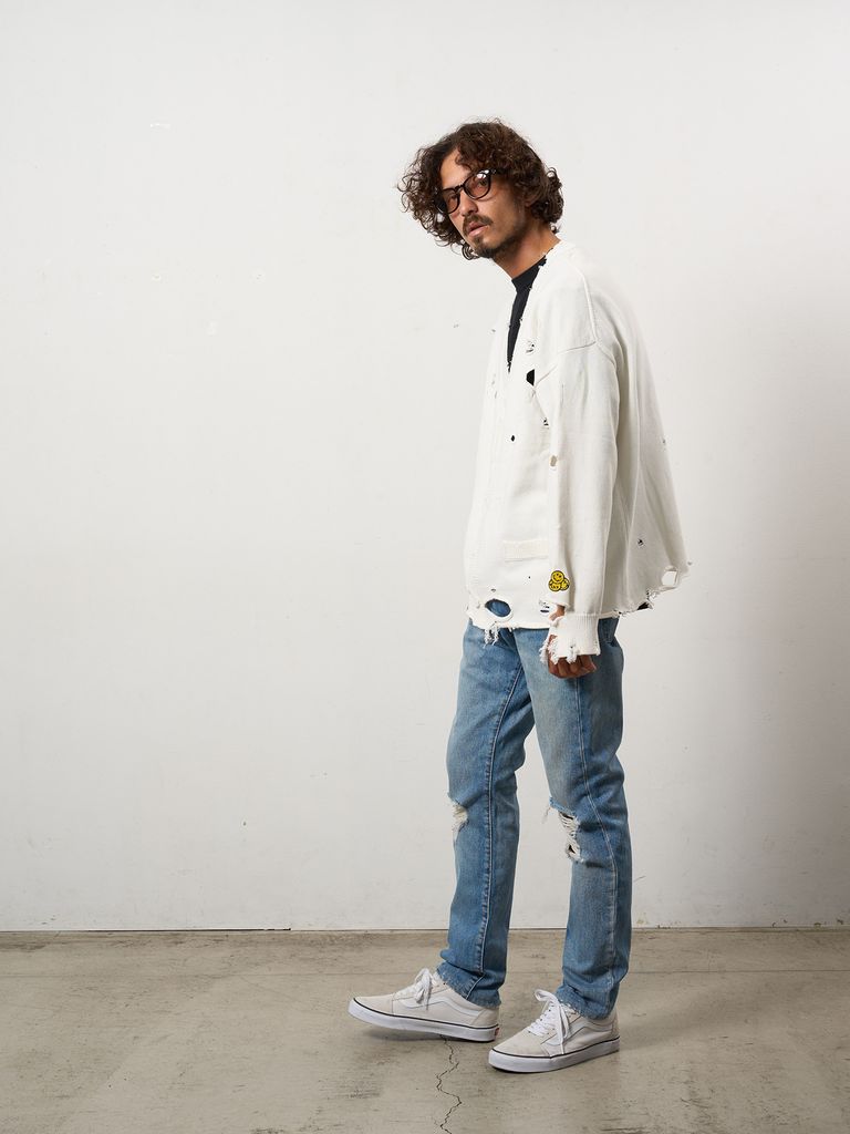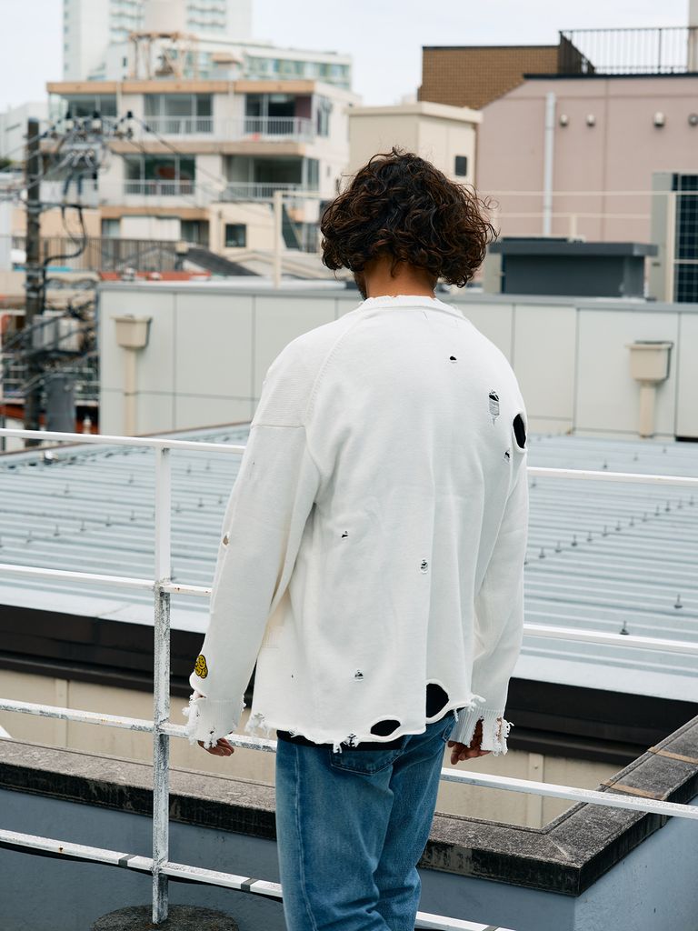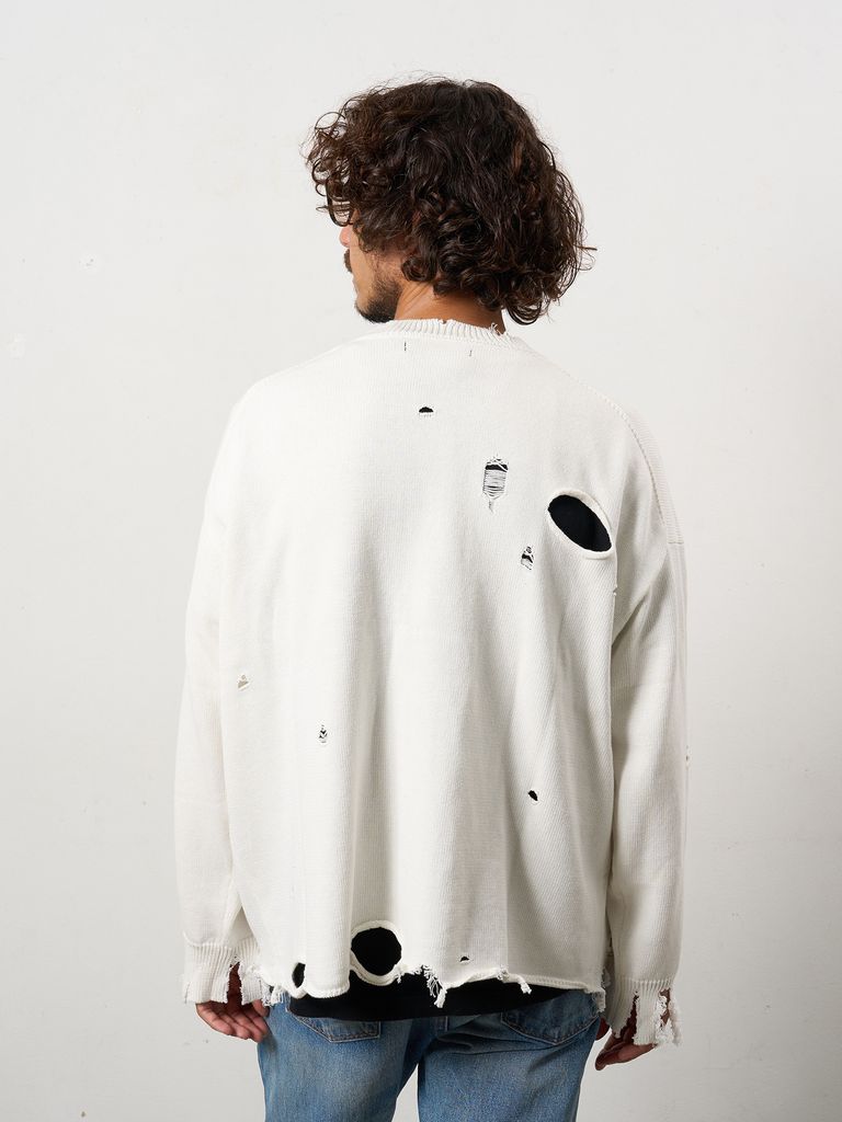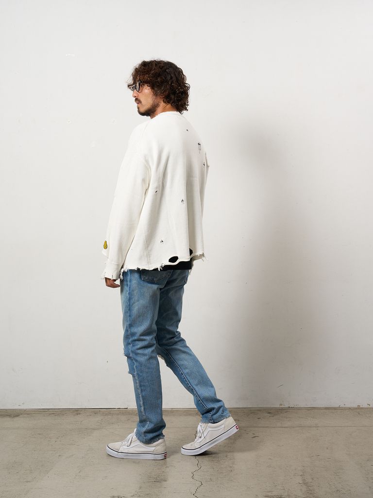 【予約品 10月16日(木) 締切】ローゲージコットンヤーン ダメージカーディガン / オフホワイト