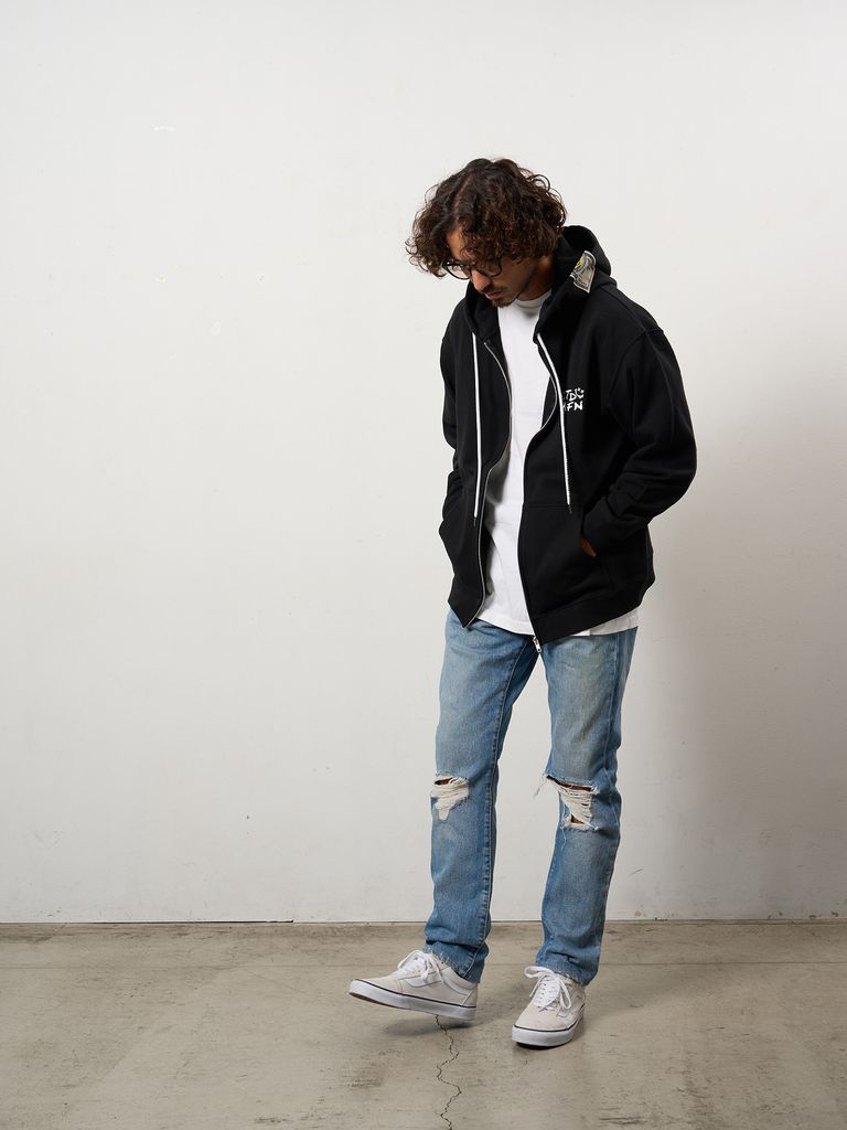 【予約品 10月16日(木) 締切】オーセンティックパイル フラワーフォームPT ジップパーカー / ブラック