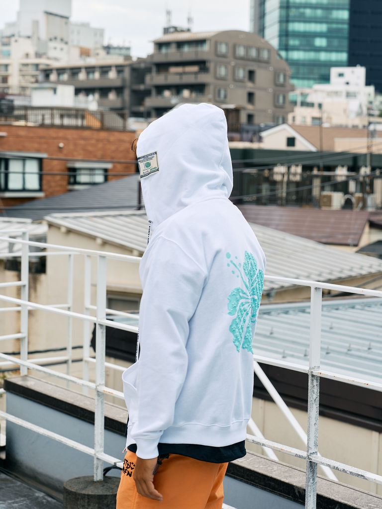 【予約品 10月16日(木) 締切】オーセンティックパイル フラワーフォームPT ジップパーカー / ホワイト