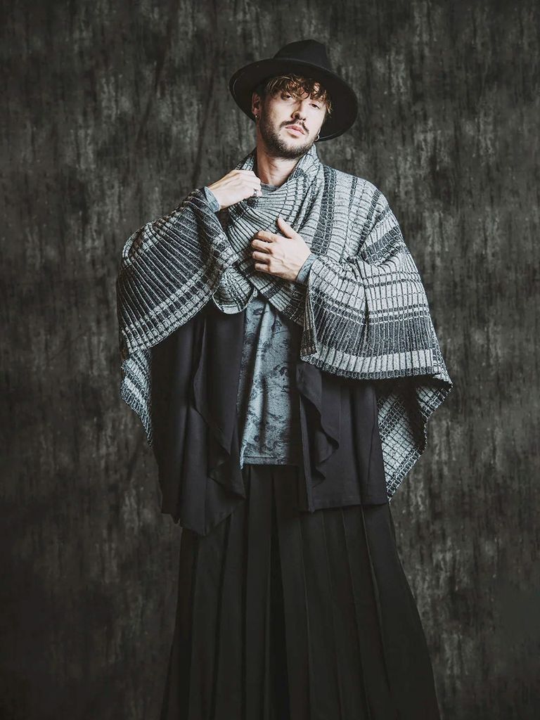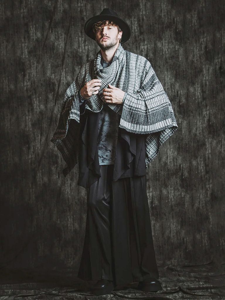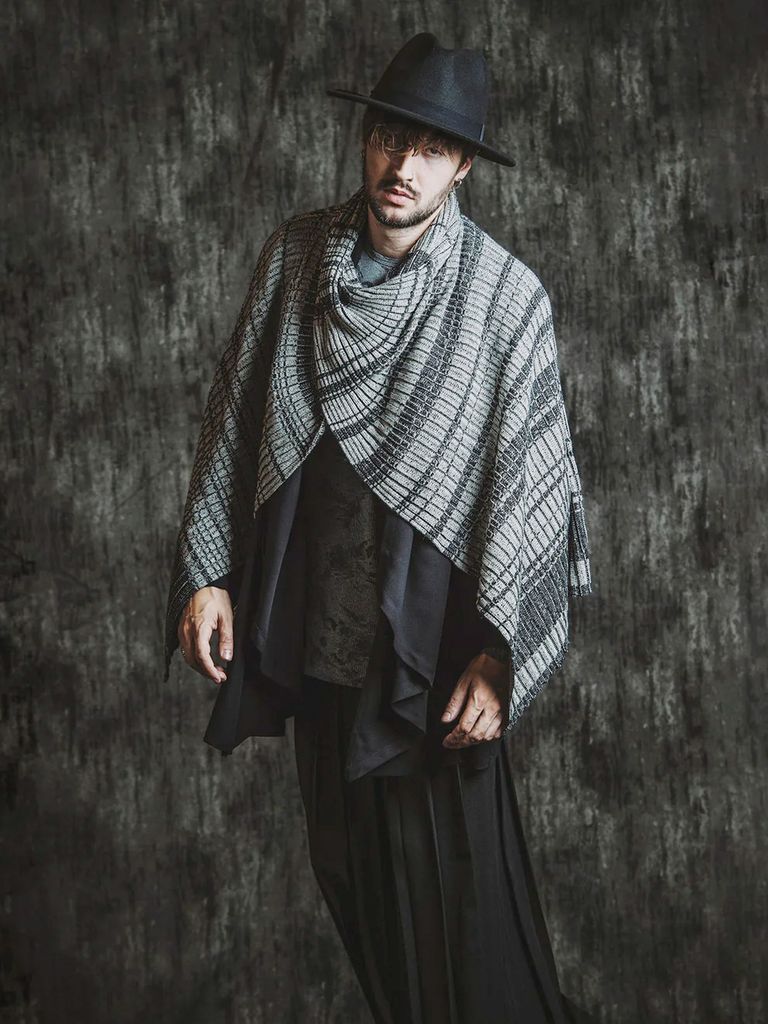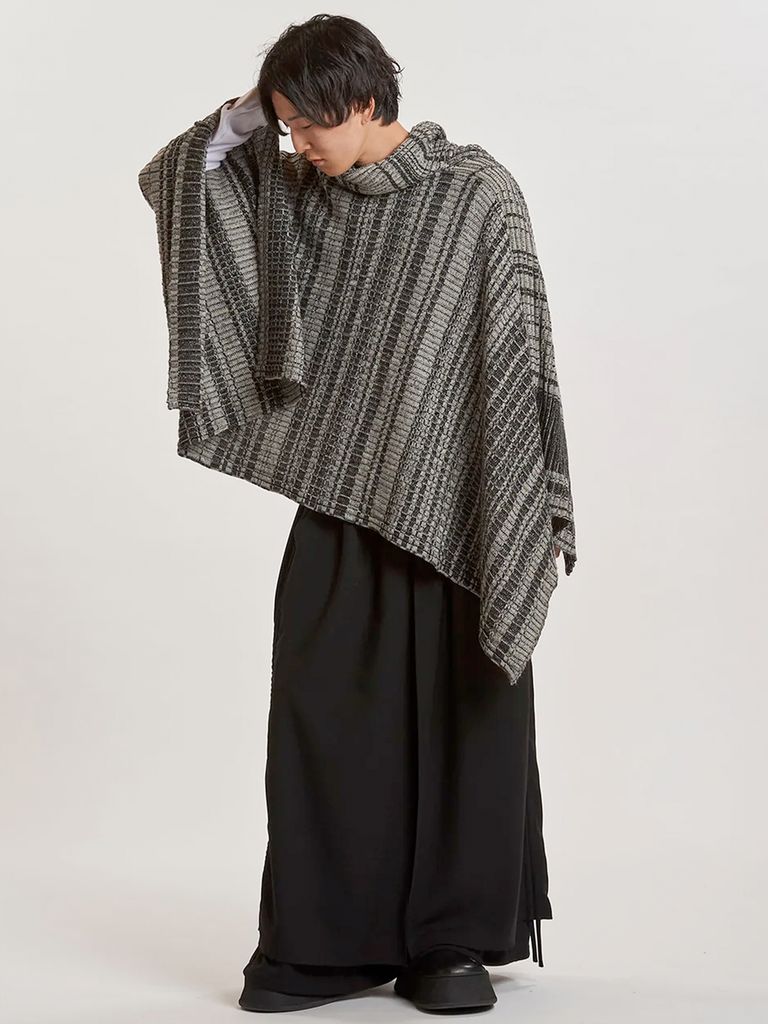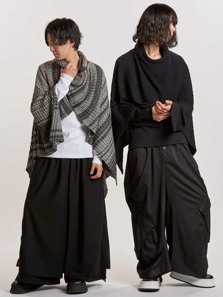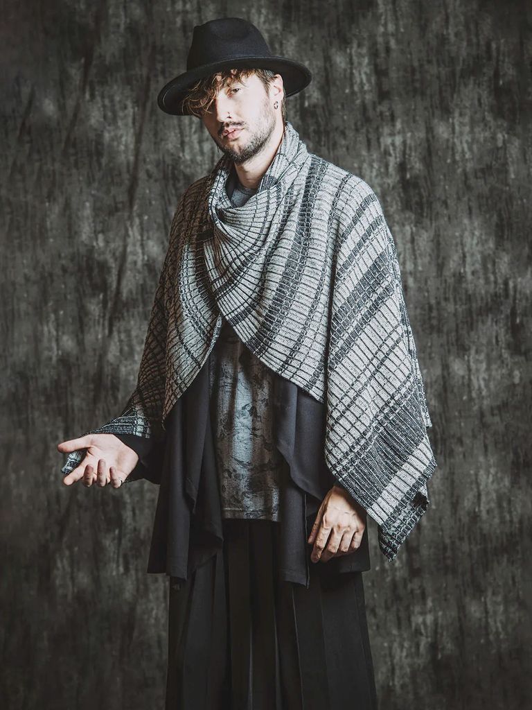 ネックラインをツイストする事でオーセンティックなポンチョをモードな装いにプラス