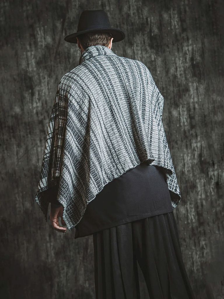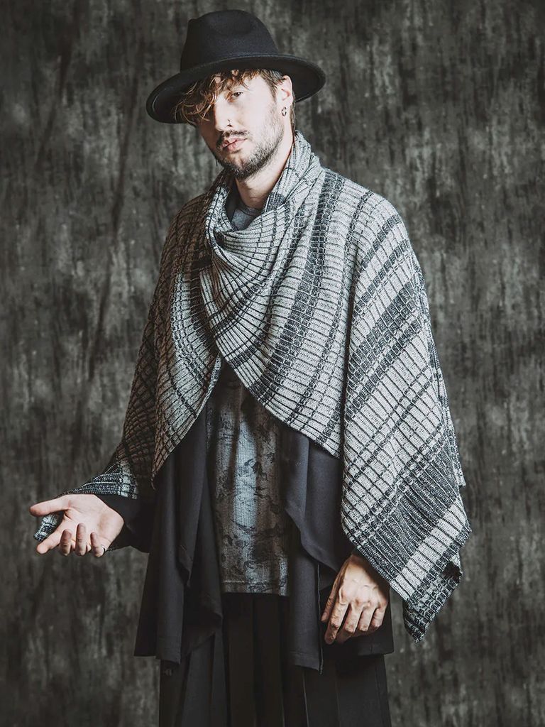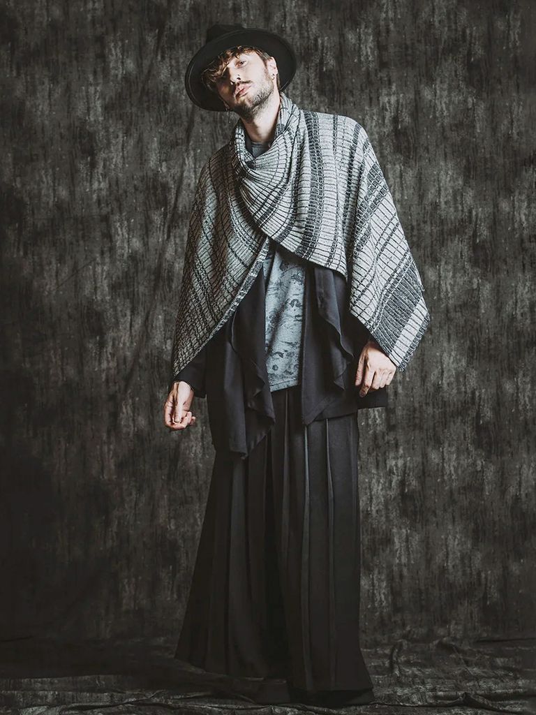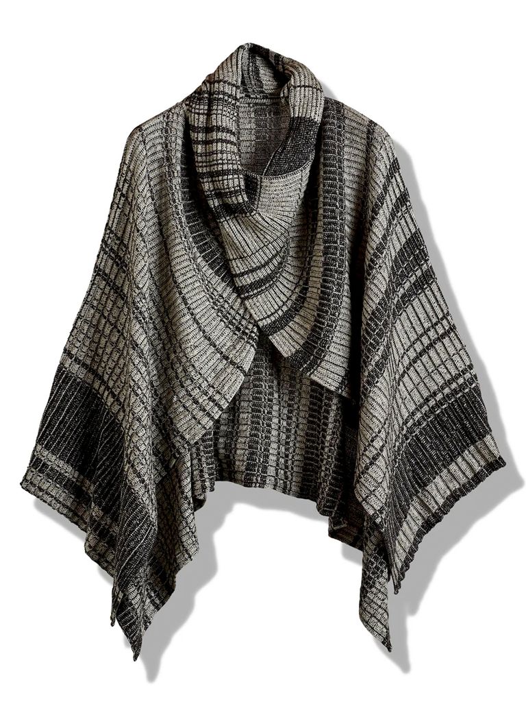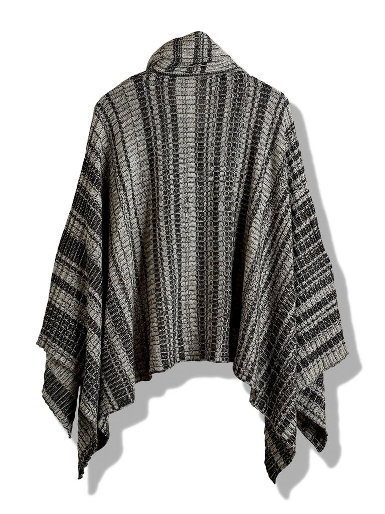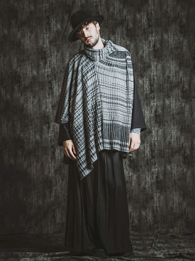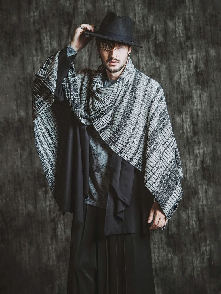 ネックラインをツイストする事でオーセンティックなポンチョをモードな装いにプラス