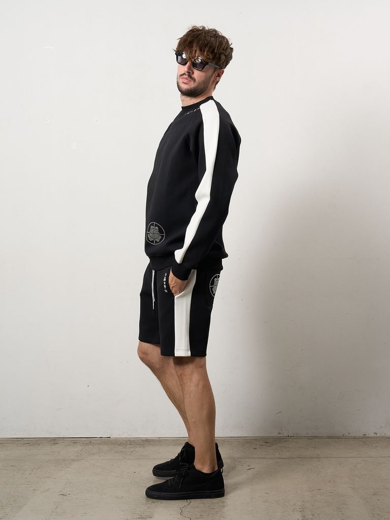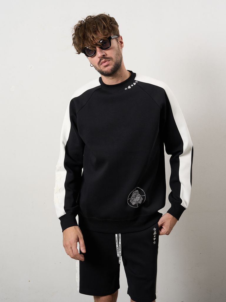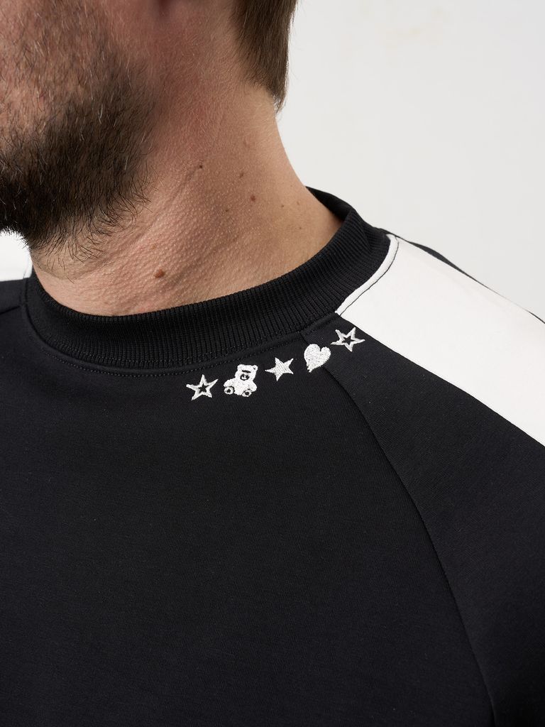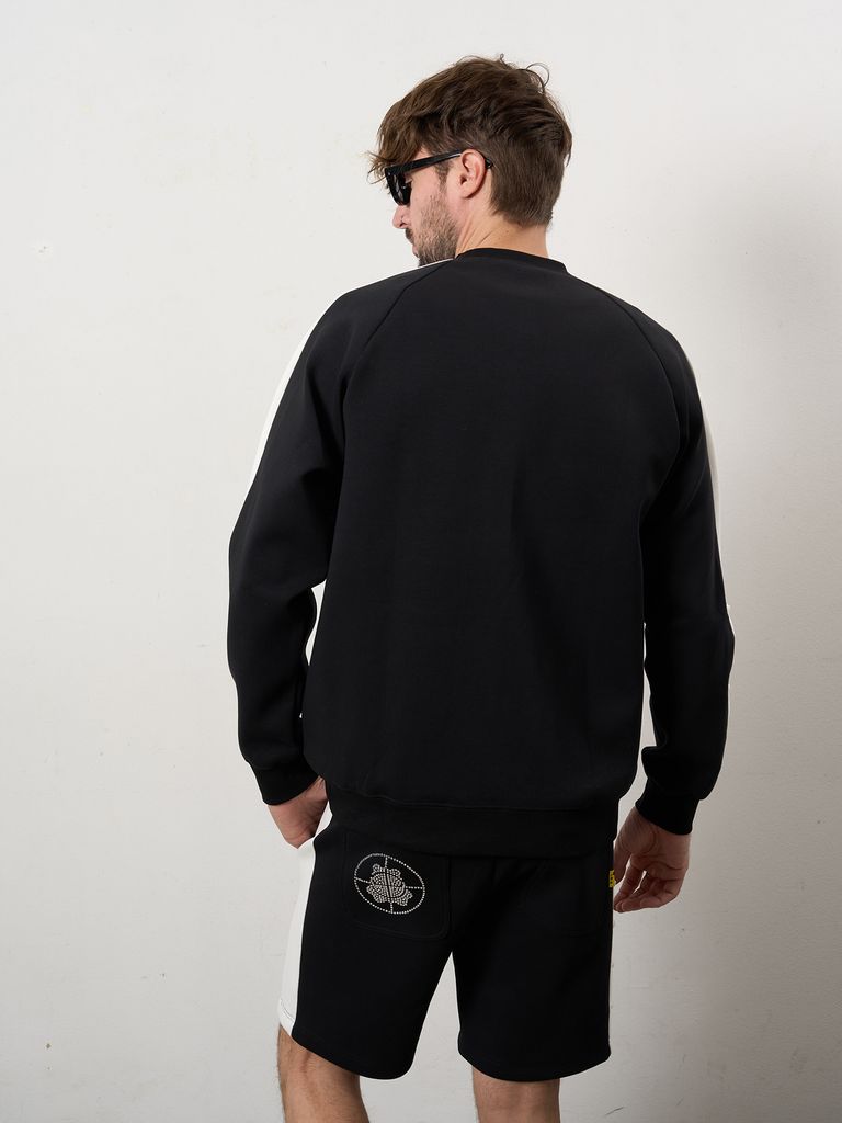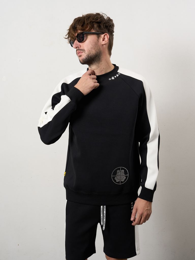 【予約品 10月16日(木) 締切】TRストレッチポンチ ラインストーン ターゲットベア ラインスエットシャツ / ブラック