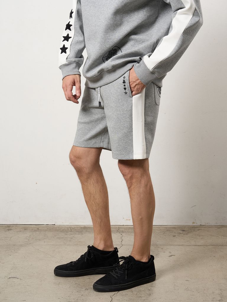 【予約品 10月16日(木) 締切】TRストレッチポンチ ラインストーン ターゲットベア ラインショートパンツ / 杢グレー