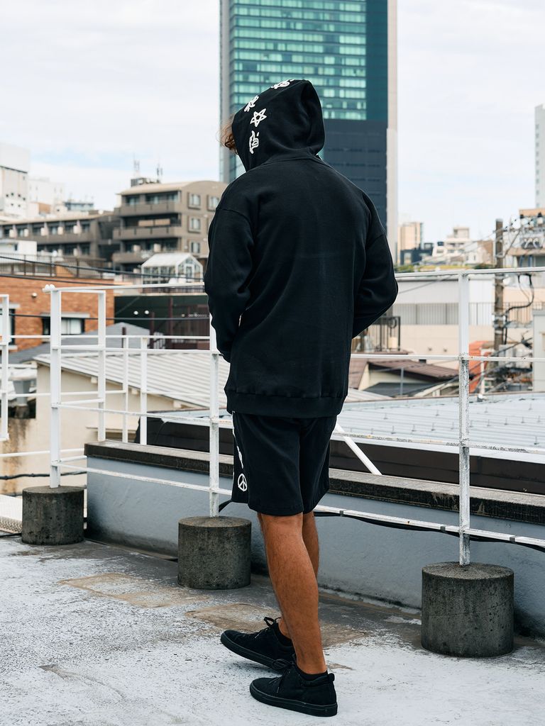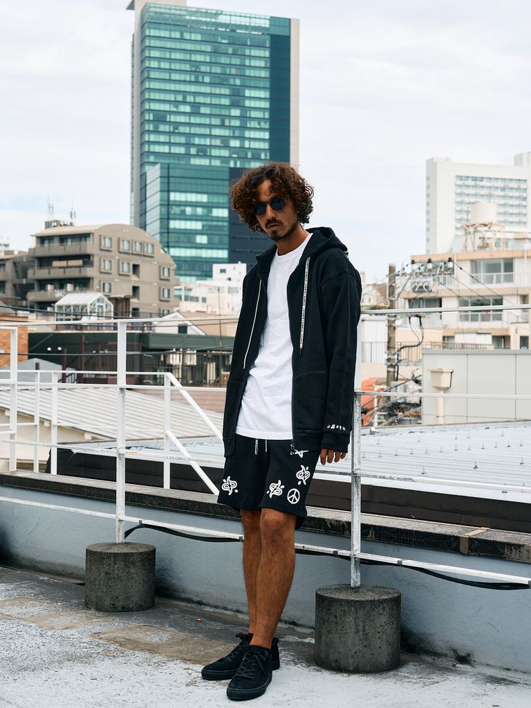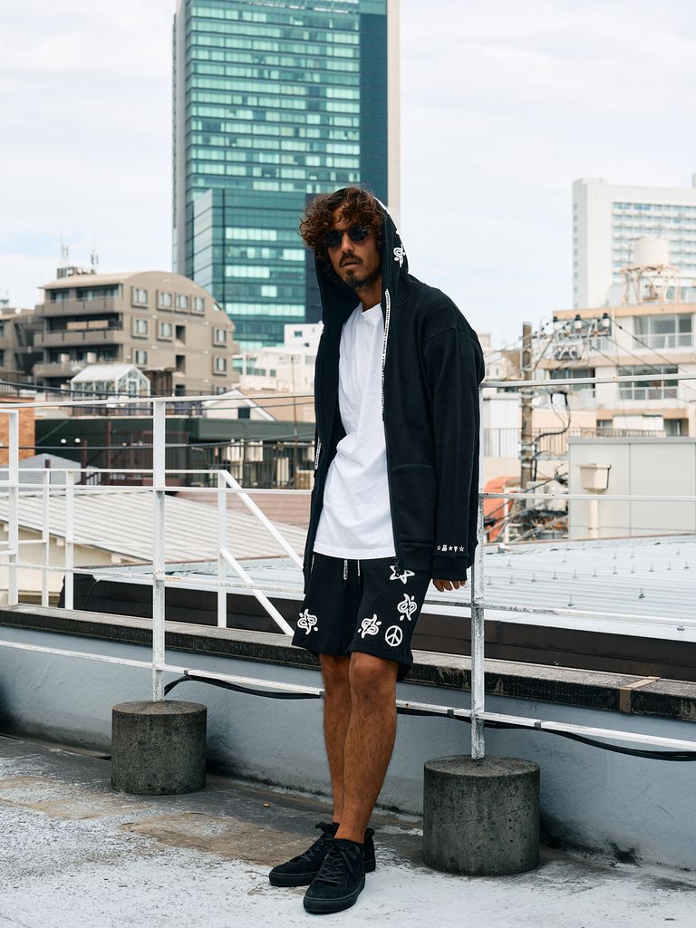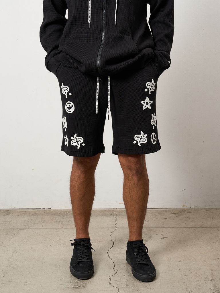 【予約品 10月16日(木) 締切】 ヘビーウエイトコットンワッフル ペイズリーサガラ ショートパンツ / ブラック