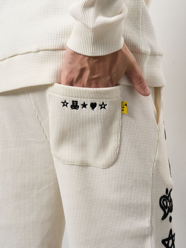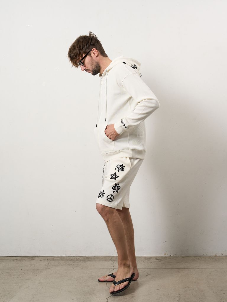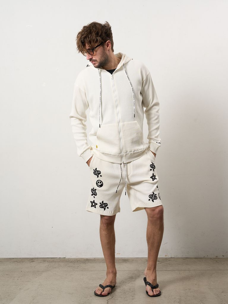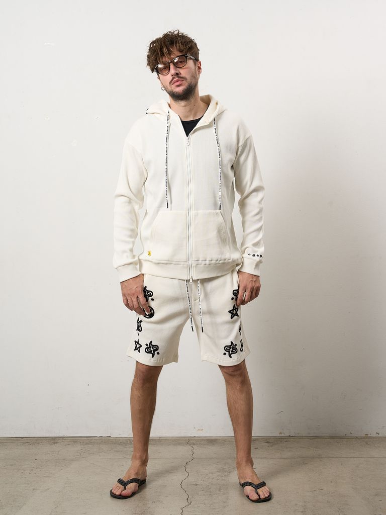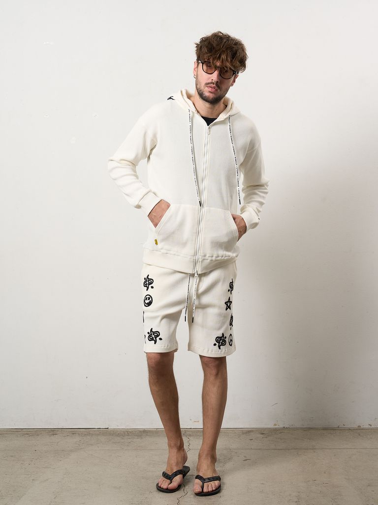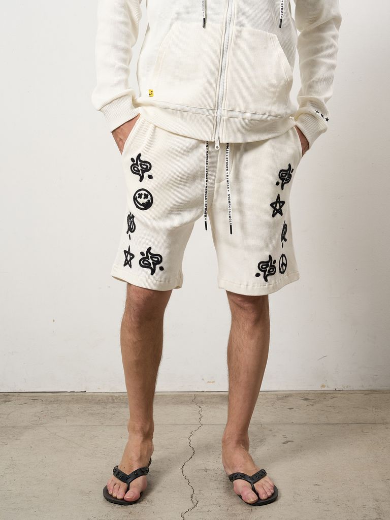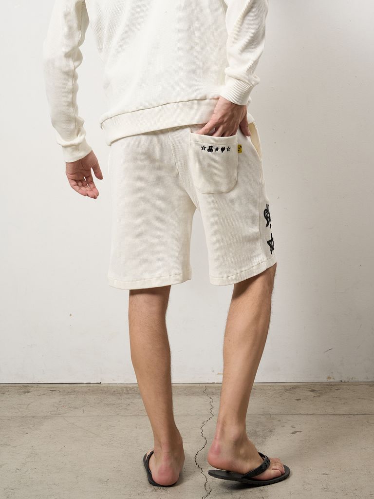 【予約品 10月16日(木) 締切】 ヘビーウエイトコットンワッフル ペイズリーサガラ ショートパンツ / ホワイト