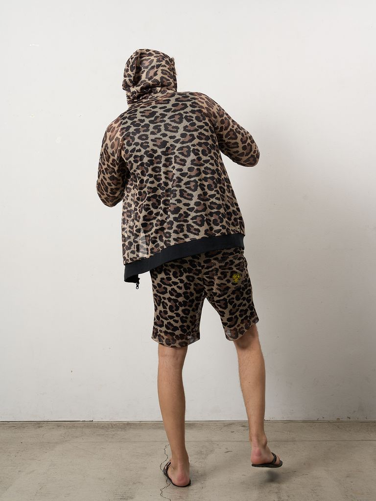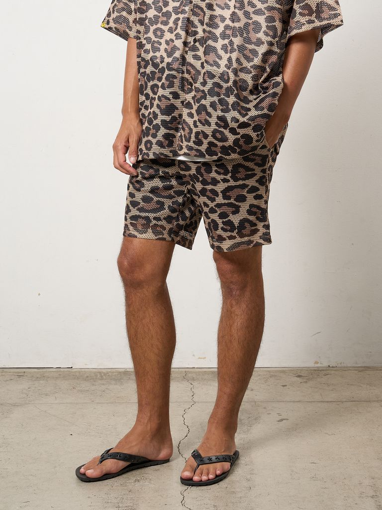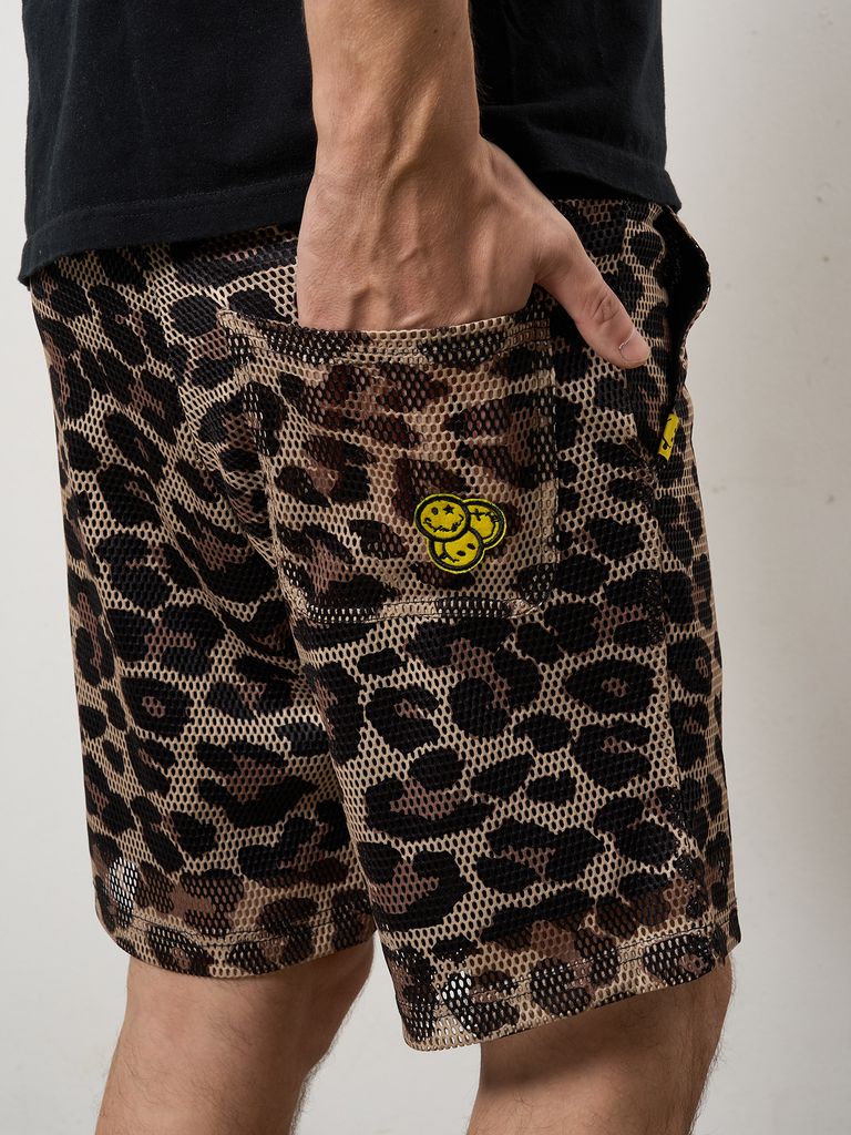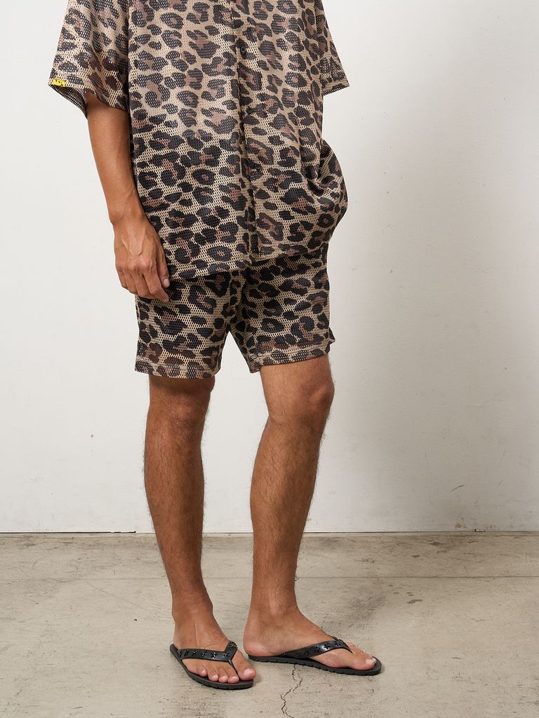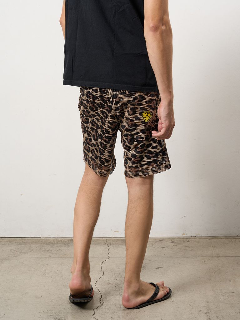 【予約品 10月16日(木) 締切】 レオパードメッシュ スマイリーパッチ ショートパンツ / ブラウン