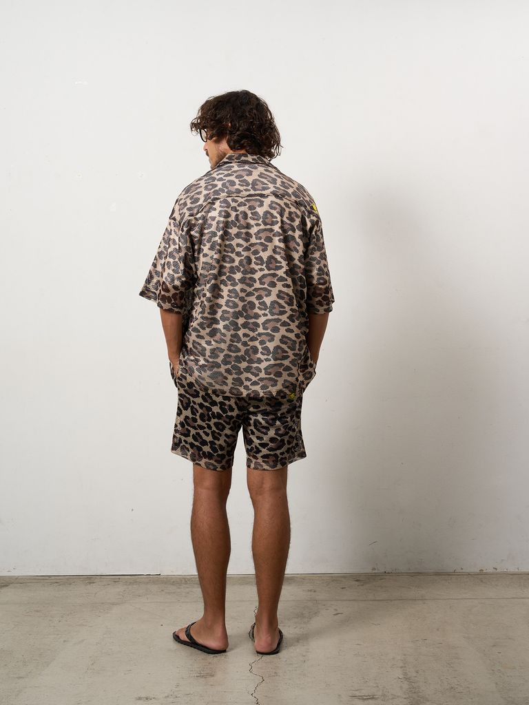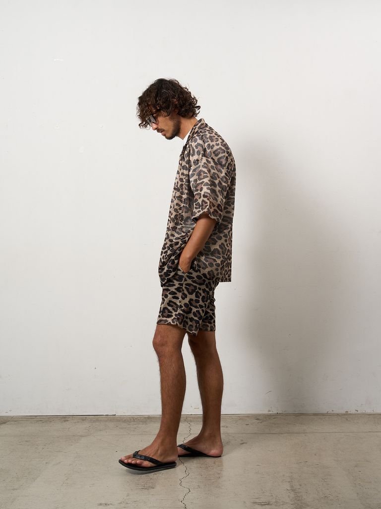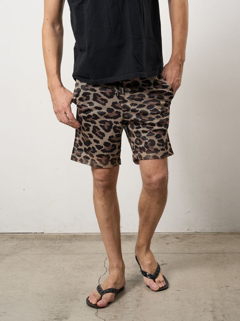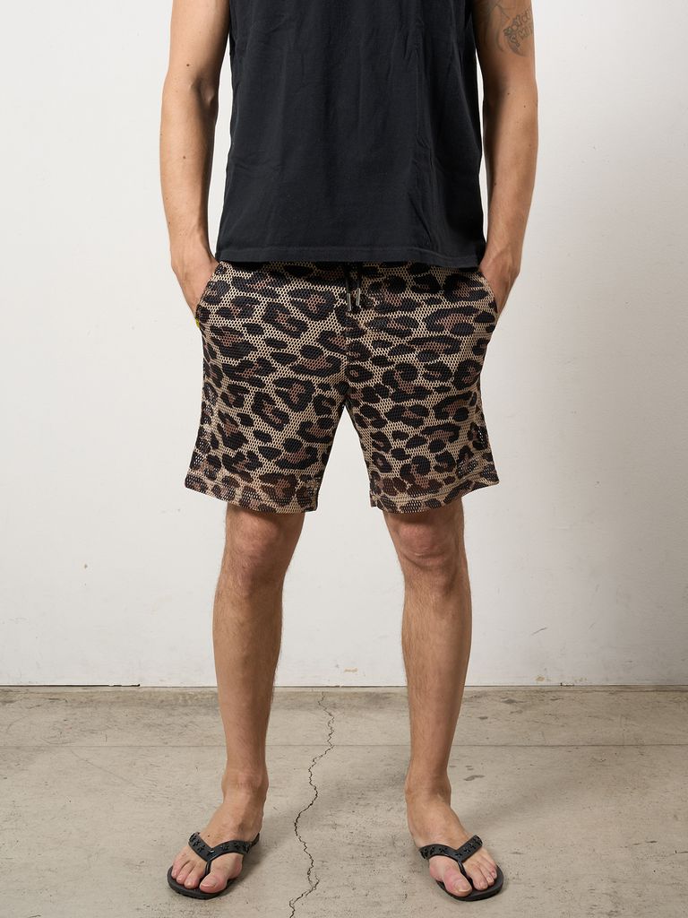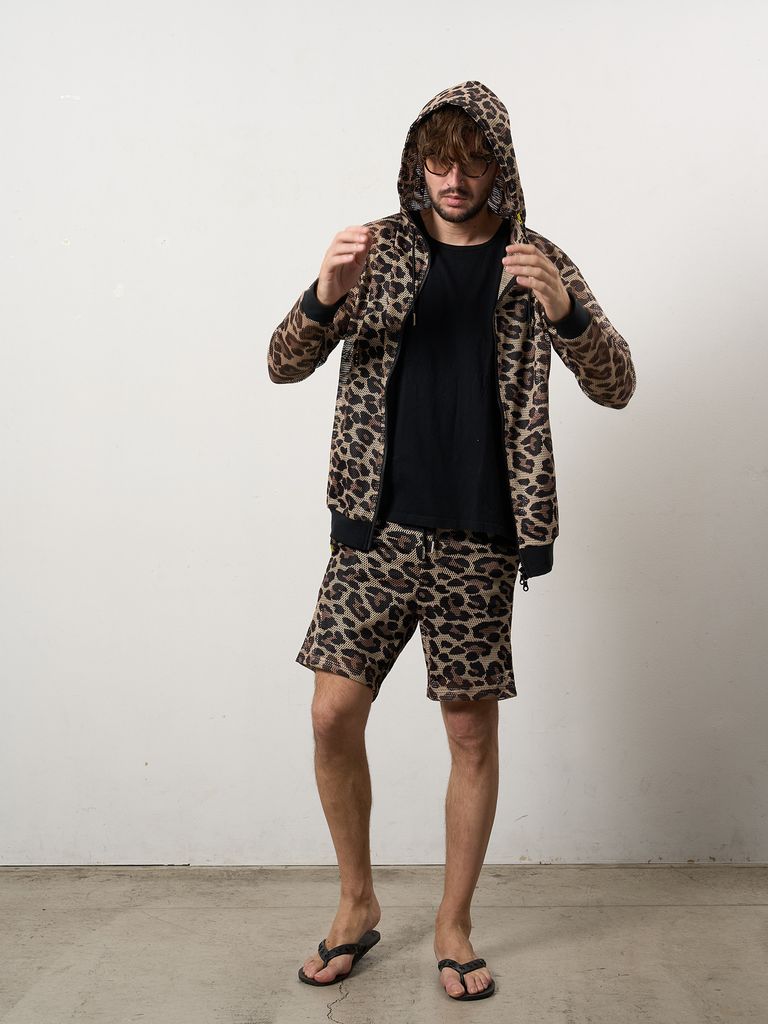 【予約品 10月16日(木) 締切】 レオパードメッシュ スマイリーパッチ ショートパンツ / ブラウン