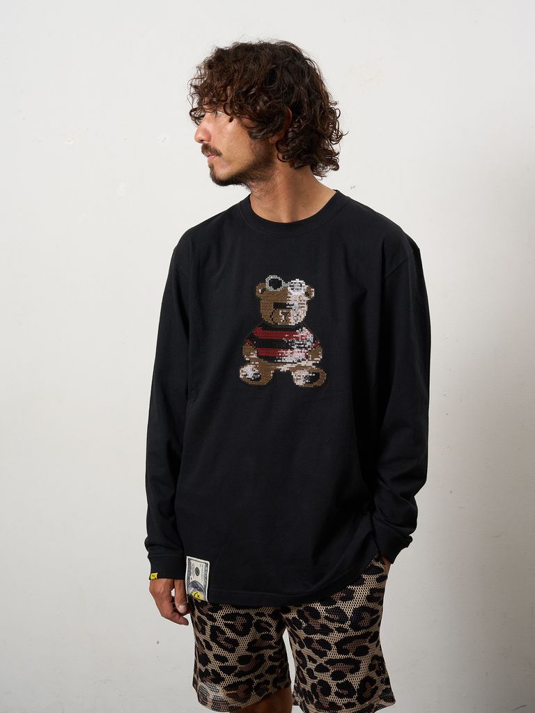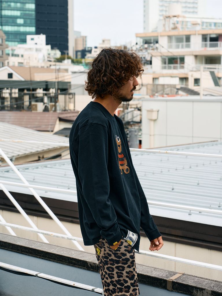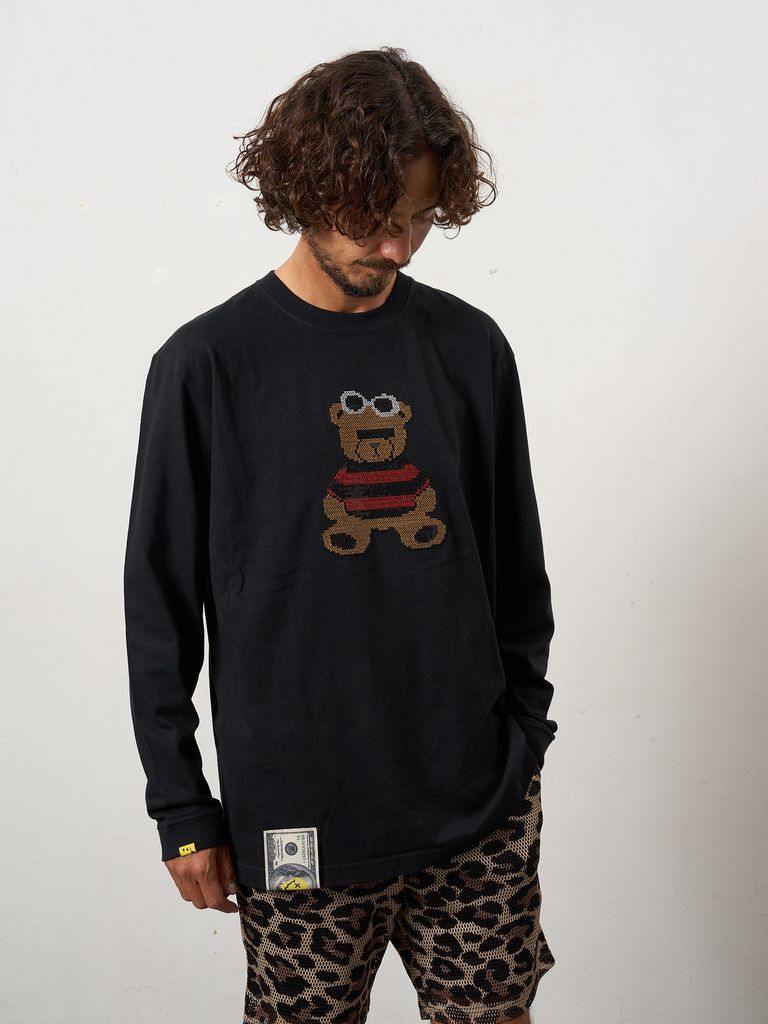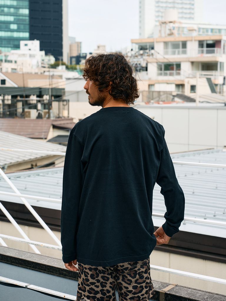 【予約品 10月16日(木) 締切】5.6ozコットン天竺 カートベアシークイン LSシャツ / ブラック