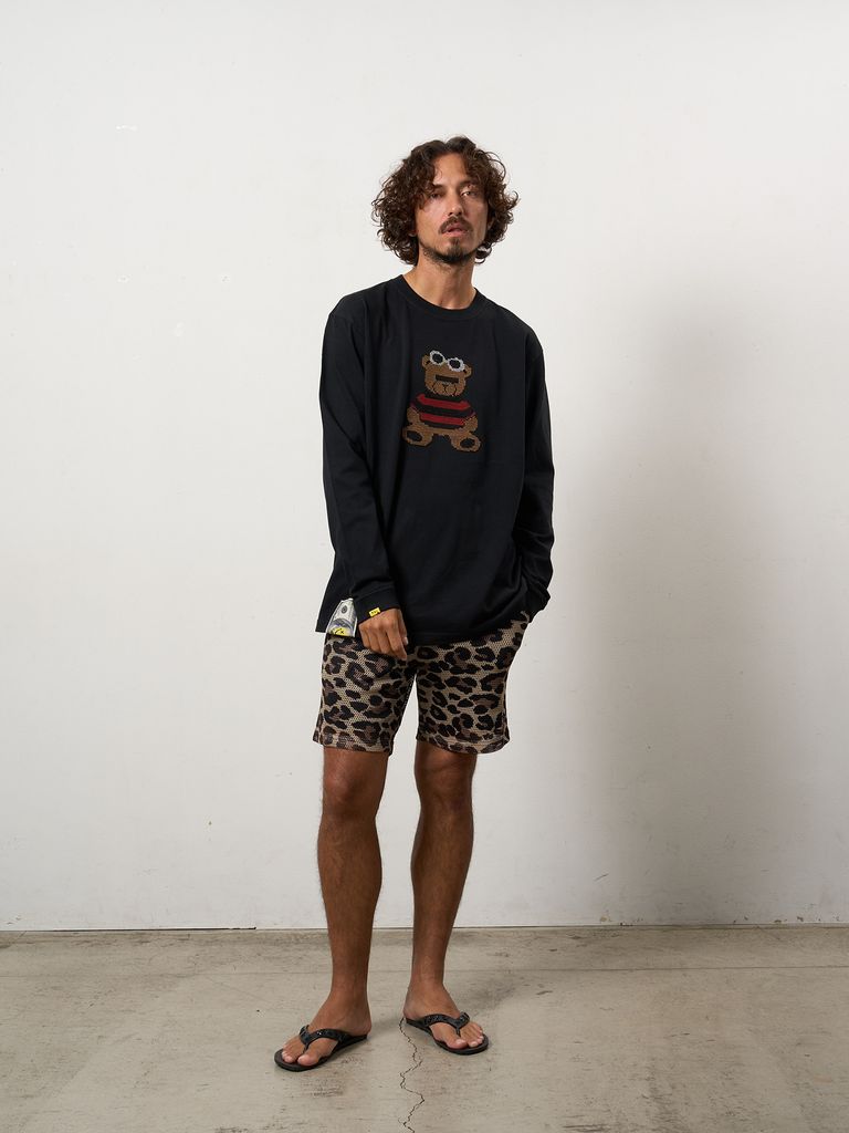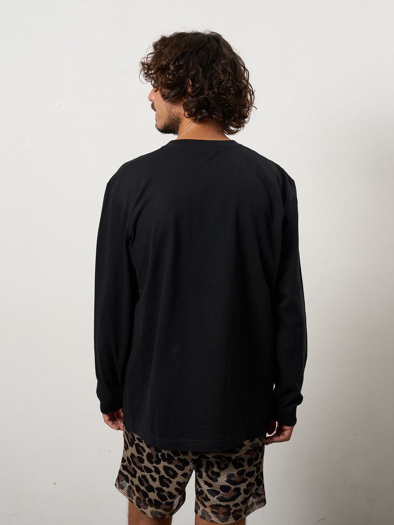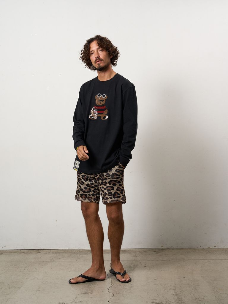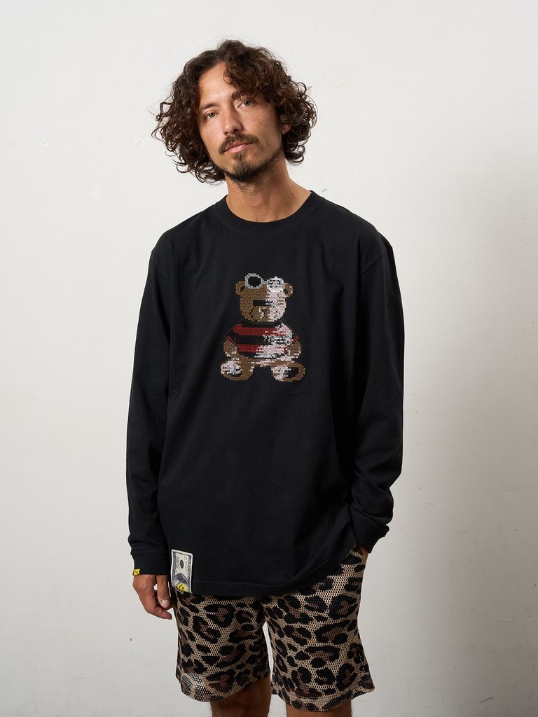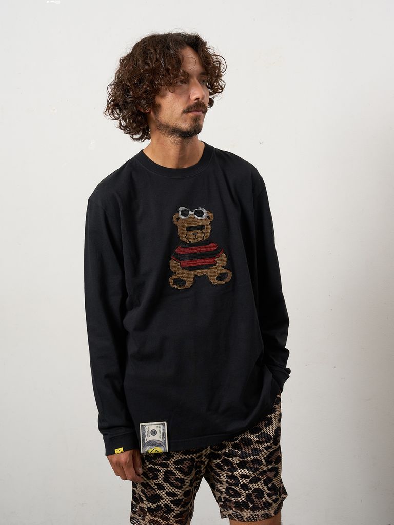 【予約品 10月16日(木) 締切】5.6ozコットン天竺 カートベアシークイン LSシャツ / ブラック