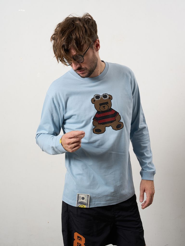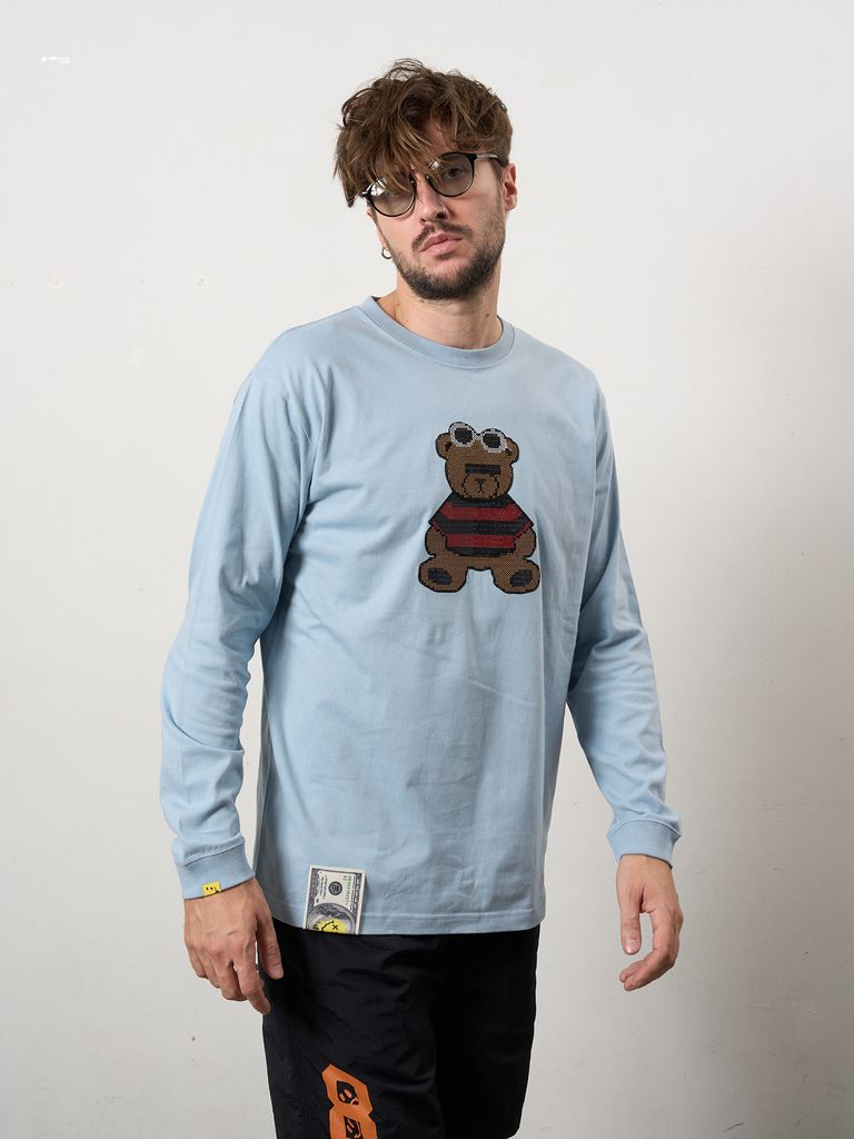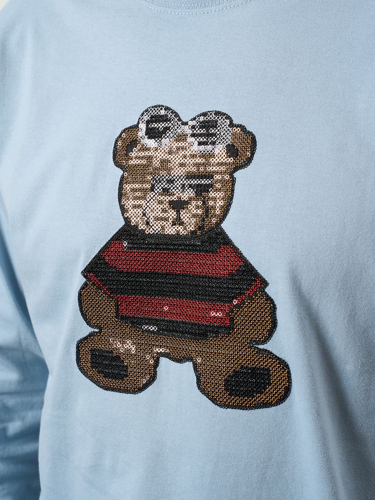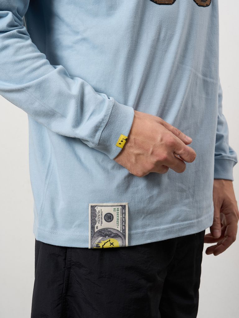 【予約品 10月16日(木) 締切】5.6ozコットン天竺 カートベアシークイン LSシャツ / ブルー
