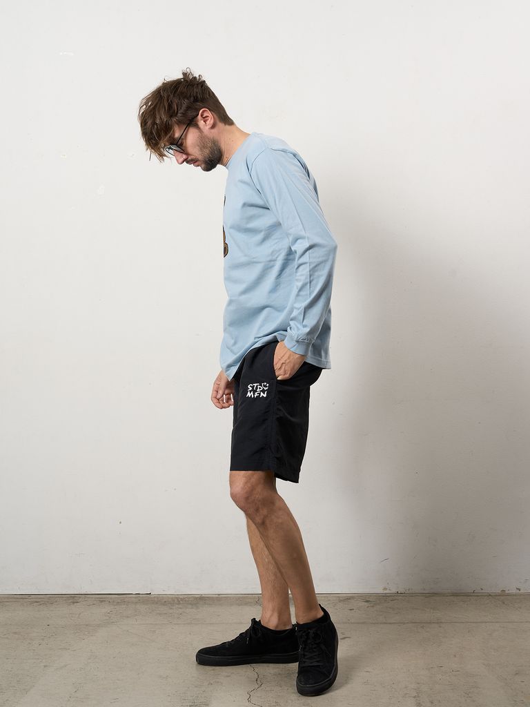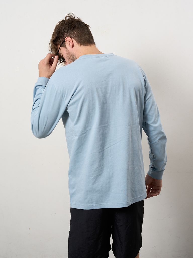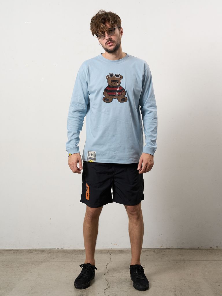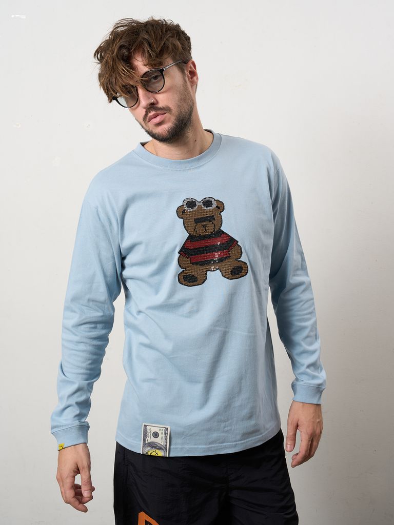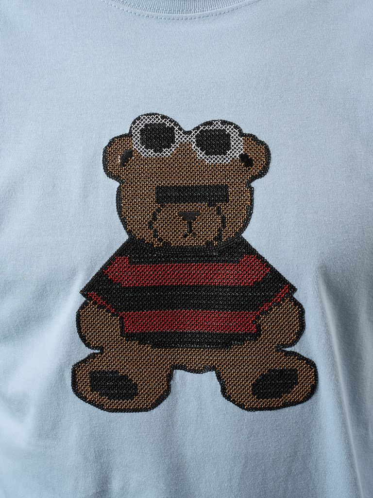 【予約品 10月16日(木) 締切】5.6ozコットン天竺 カートベアシークイン LSシャツ / ブルー