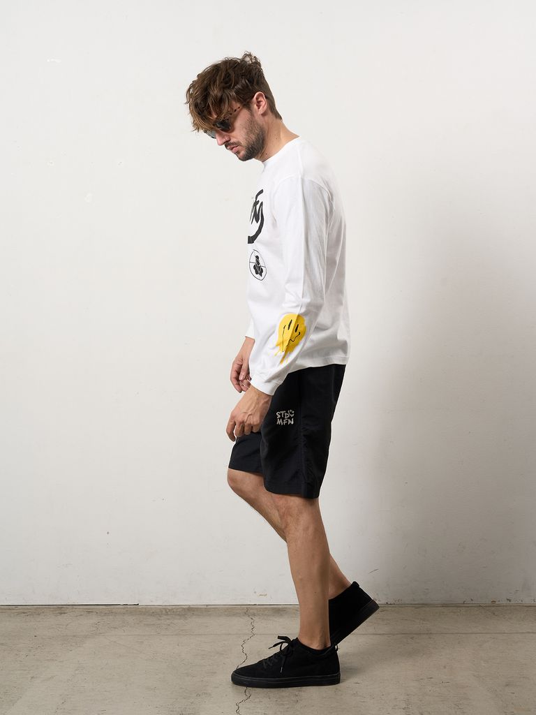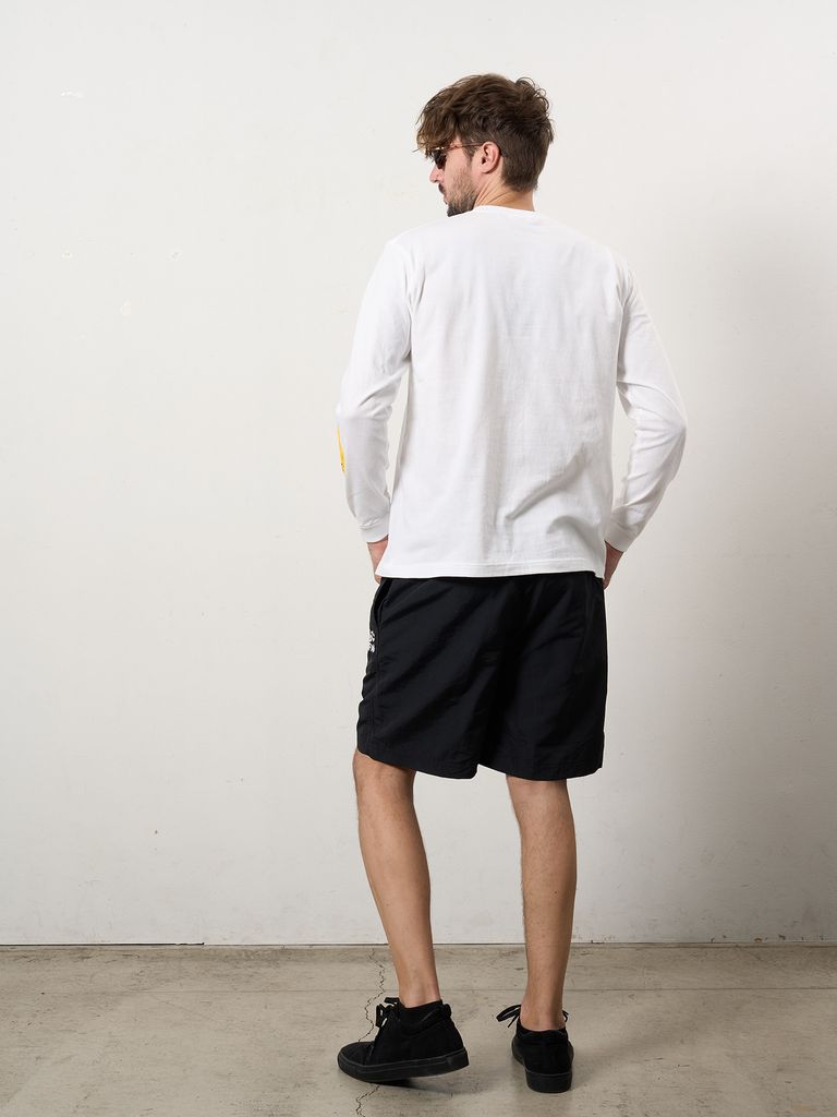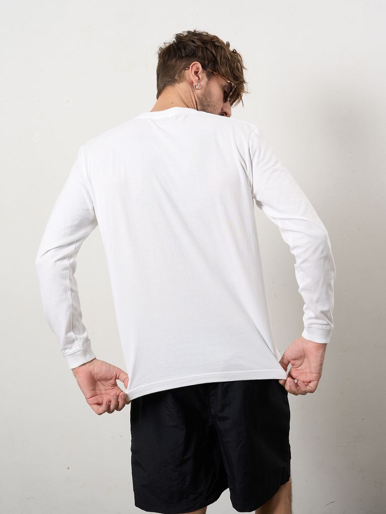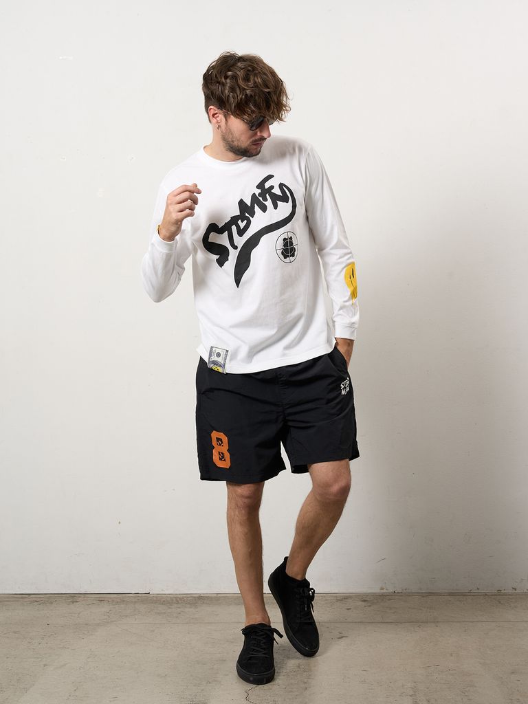 【予約品 10月16日(木) 締切】5.6ozコットン天竺 ウェービーロゴ&ドリップスマイル LSシャツ / ホワイト