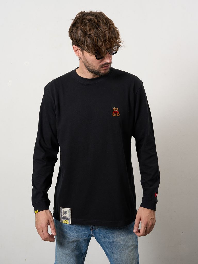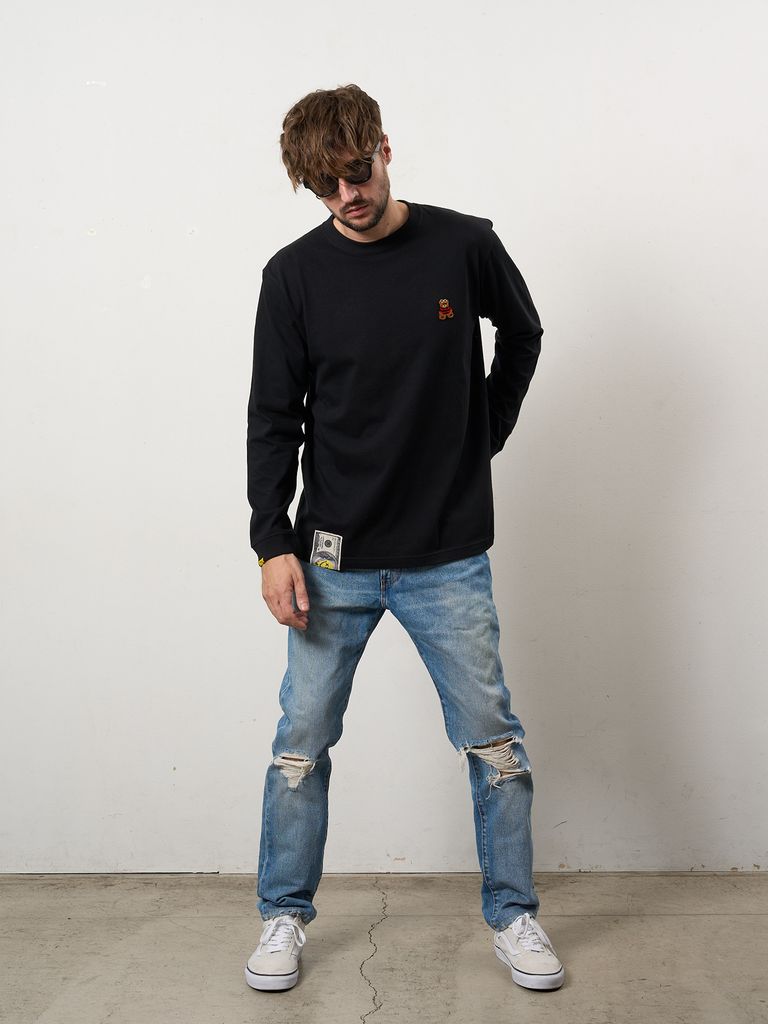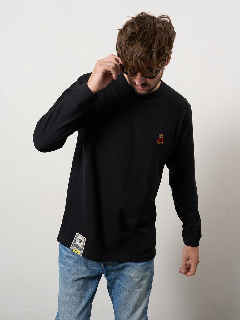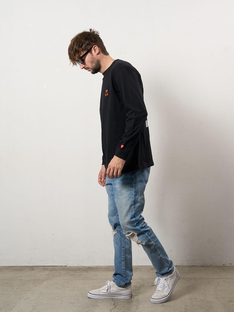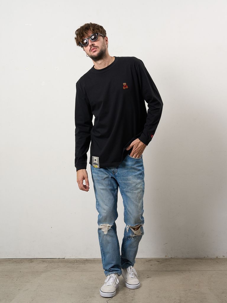 【予約品 10月16日(木) 締切】5.6ozコットン天竺 ターゲットベアフォームプリント LSシャツ / ブラック