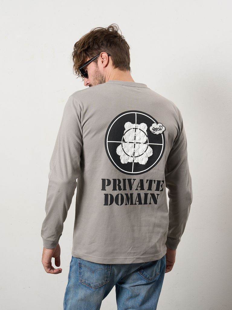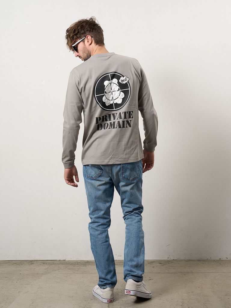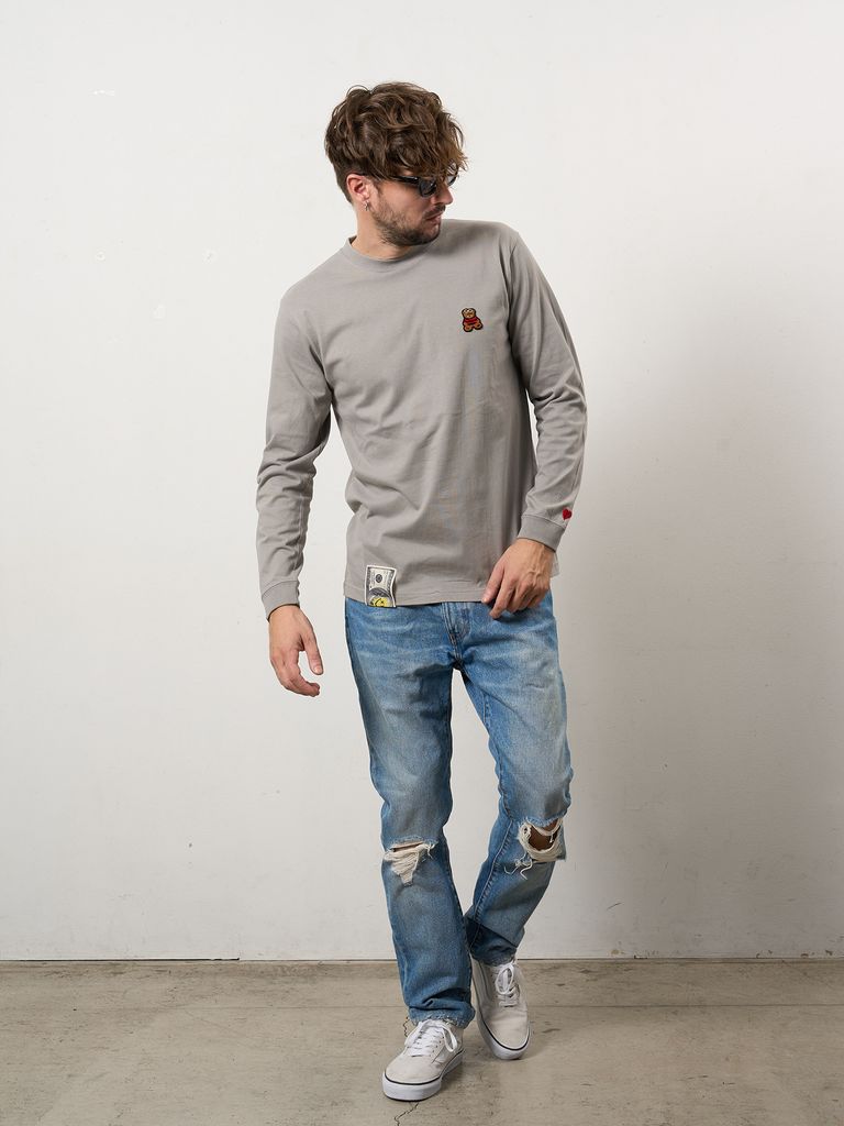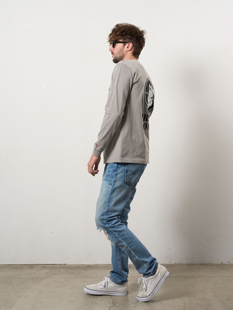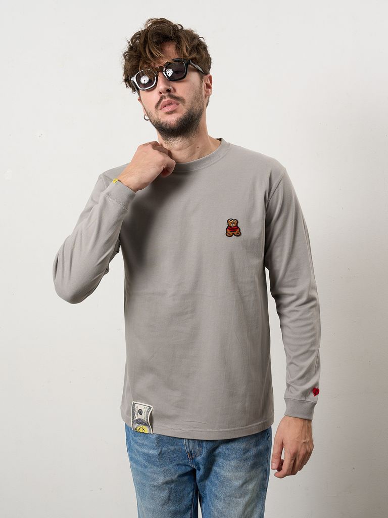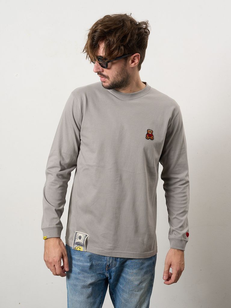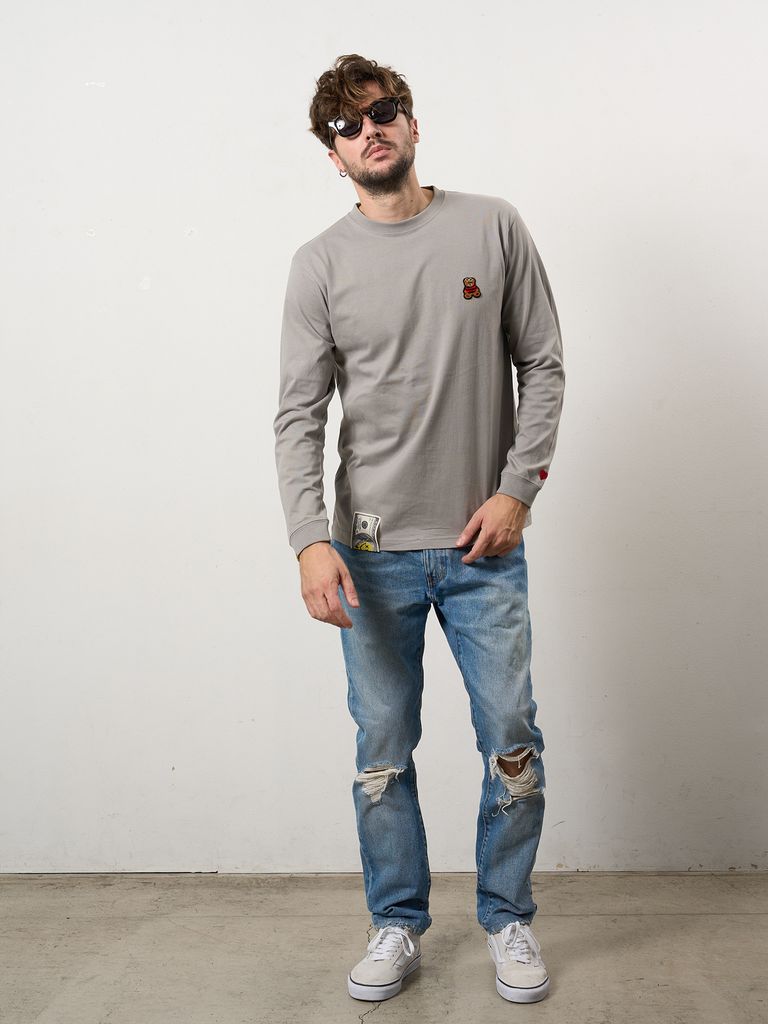 【予約品 10月16日(木) 締切】5.6ozコットン天竺 ターゲットベアフォームプリント LSシャツ / チャコールグレー