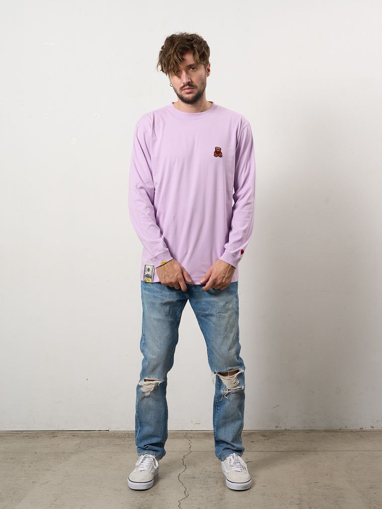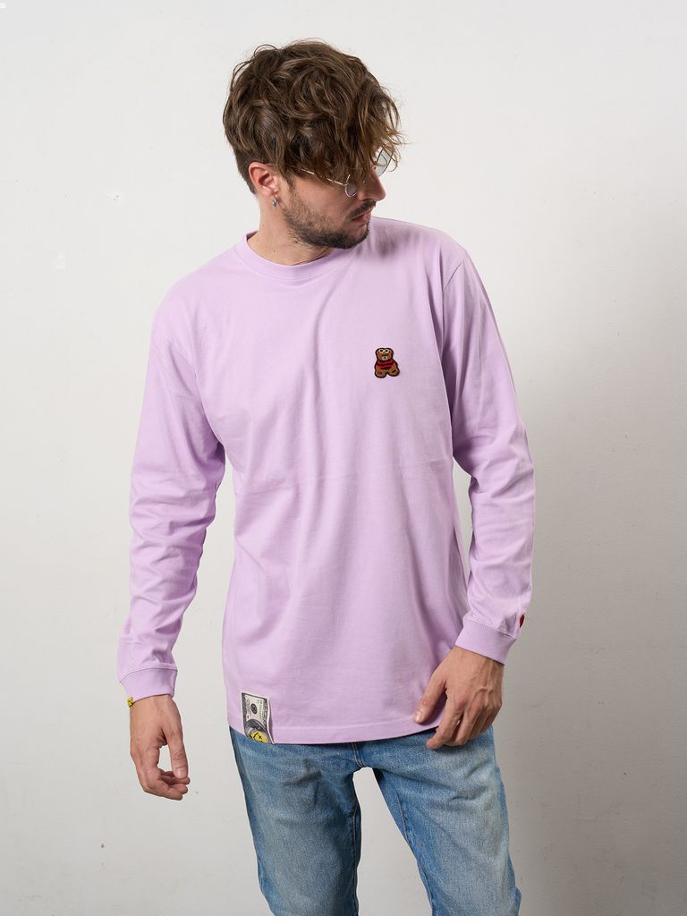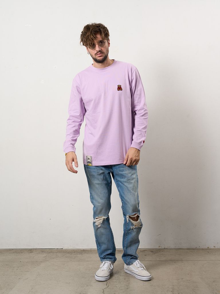 【予約品 10月16日(木) 締切】5.6ozコットン天竺 ターゲットベアフォームプリント LSシャツ / パープル
