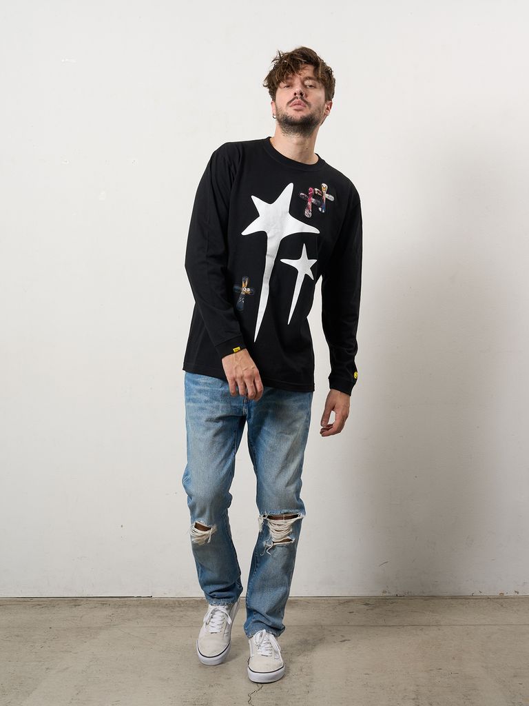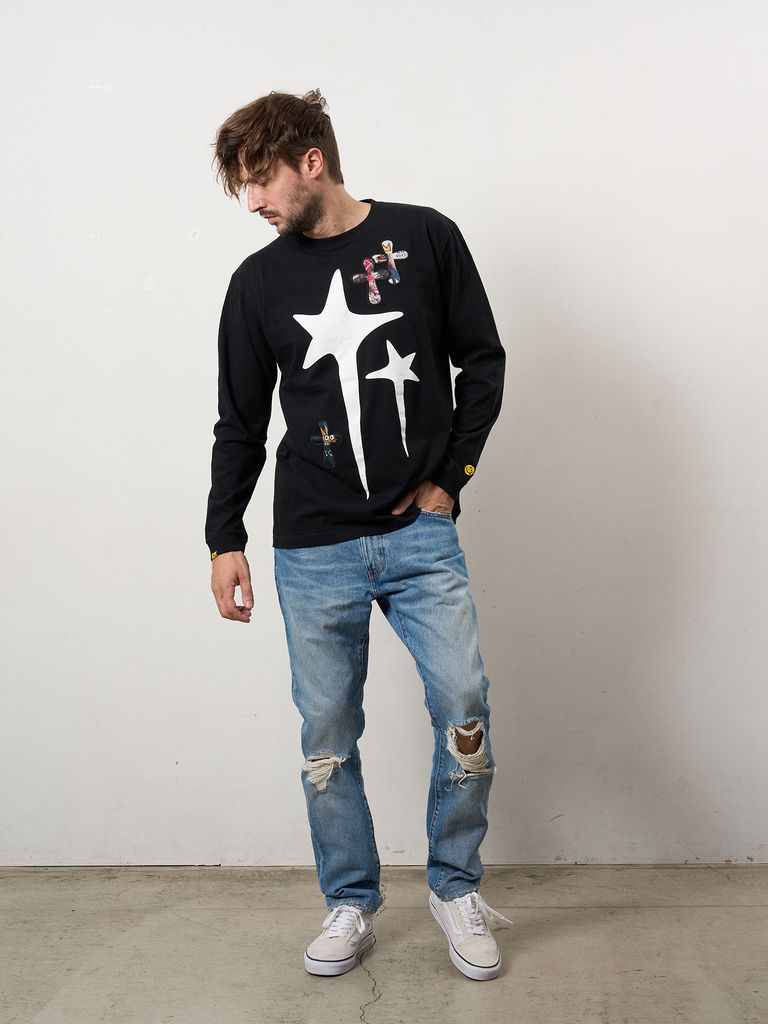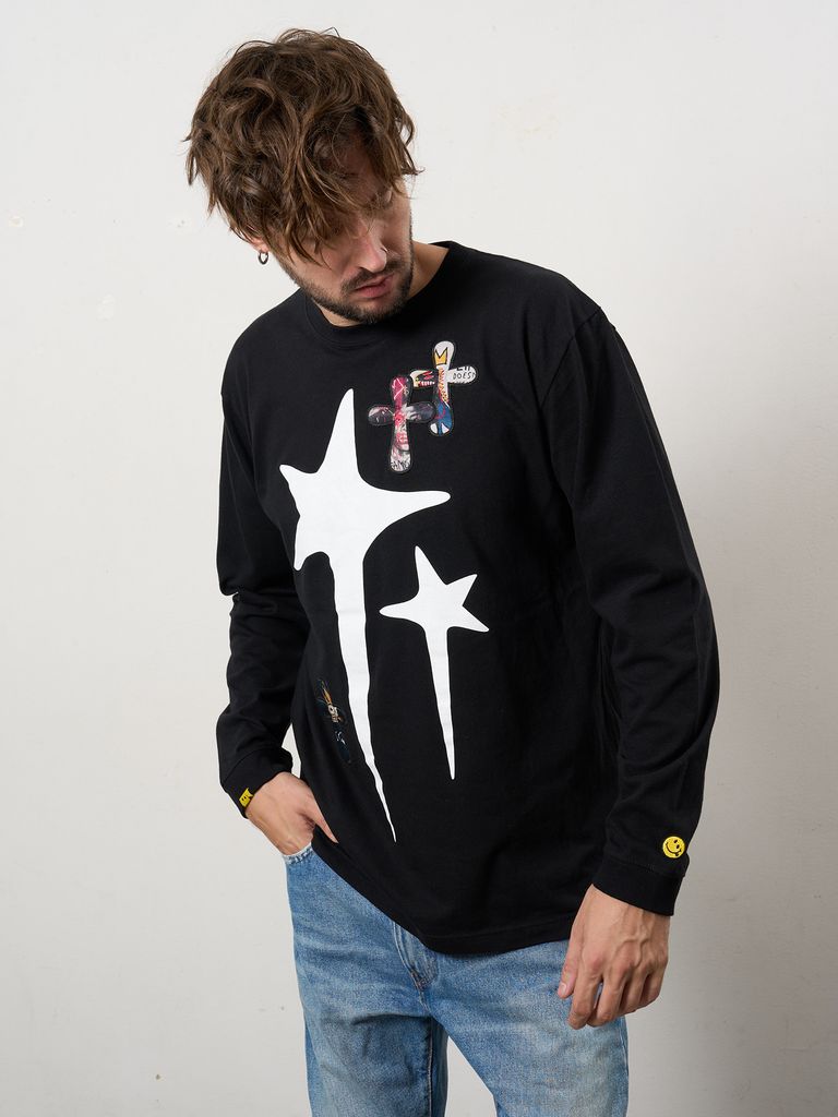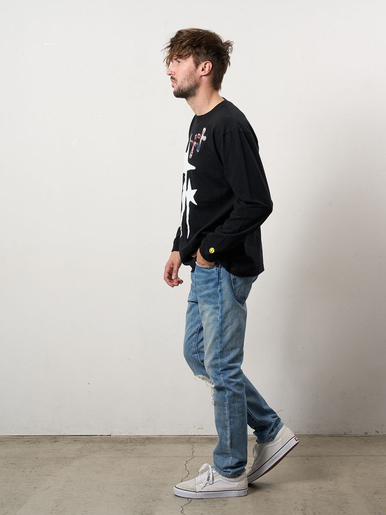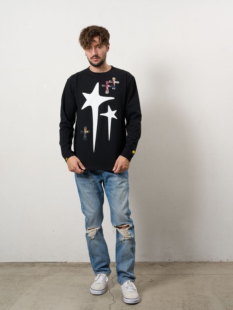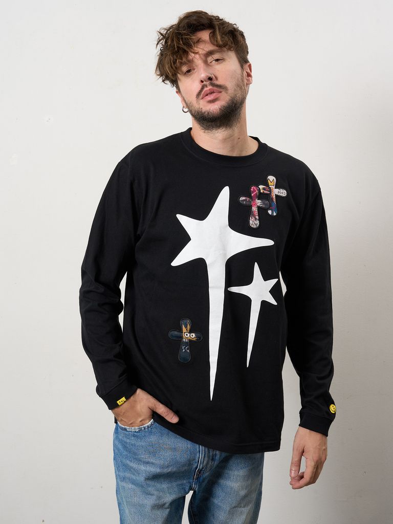 【予約品 10月16日(木) 締切】5.6ozコットン天竺 ドリップスター&クロスパッチ LSシャツ / ブラック