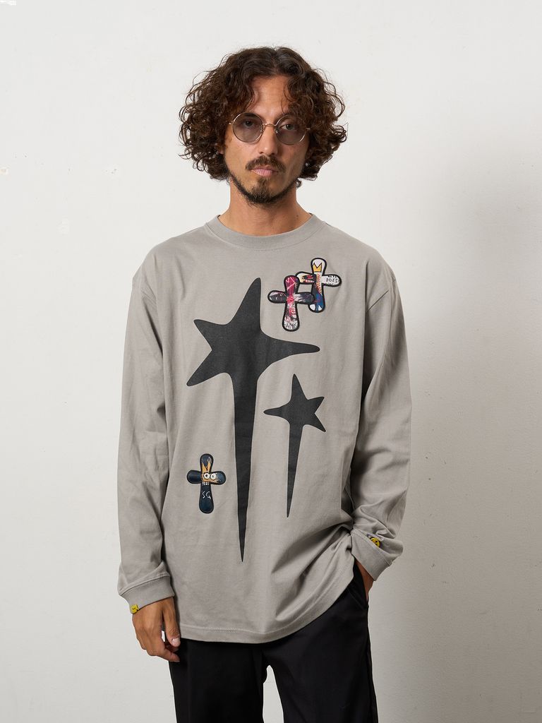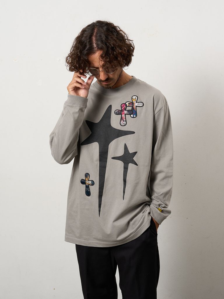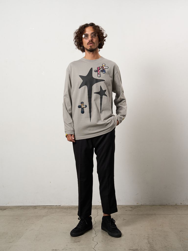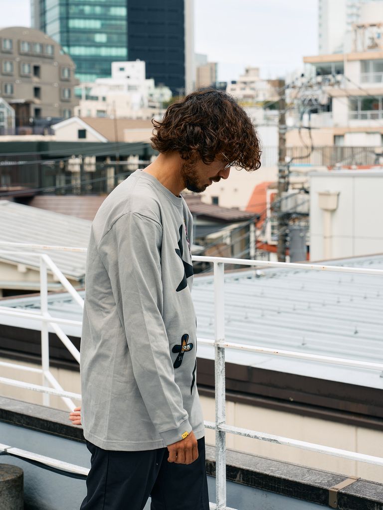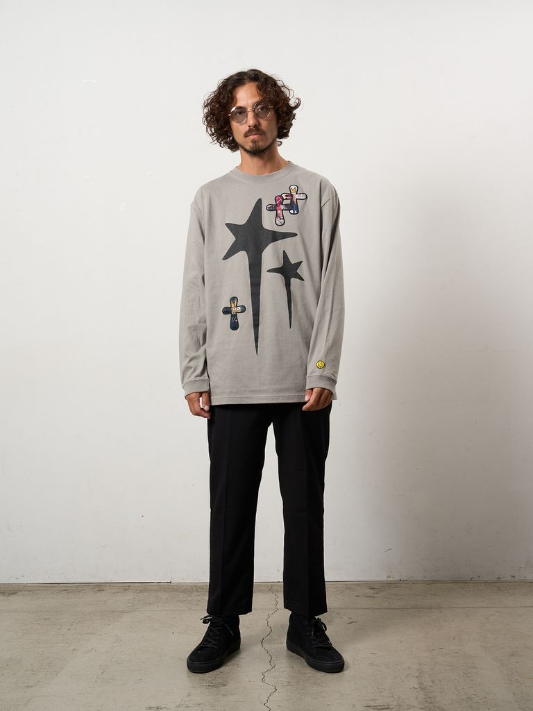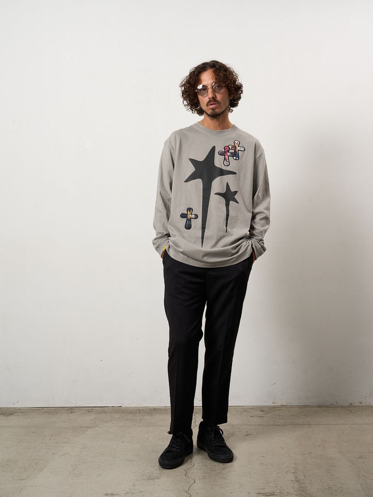 【予約品 10月16日(木) 締切】5.6ozコットン天竺 ドリップスター&クロスパッチ LSシャツ / チャコールグレー