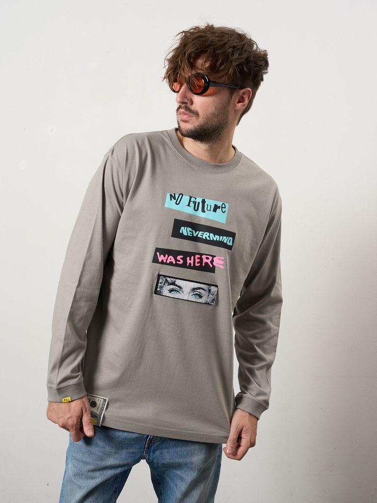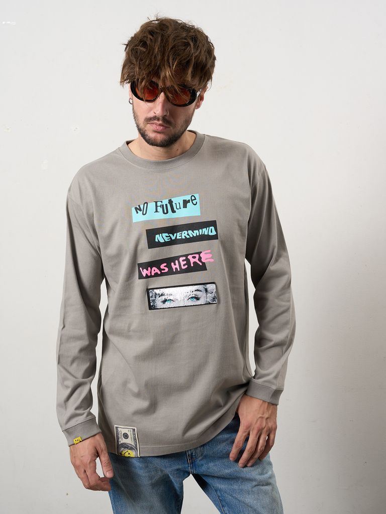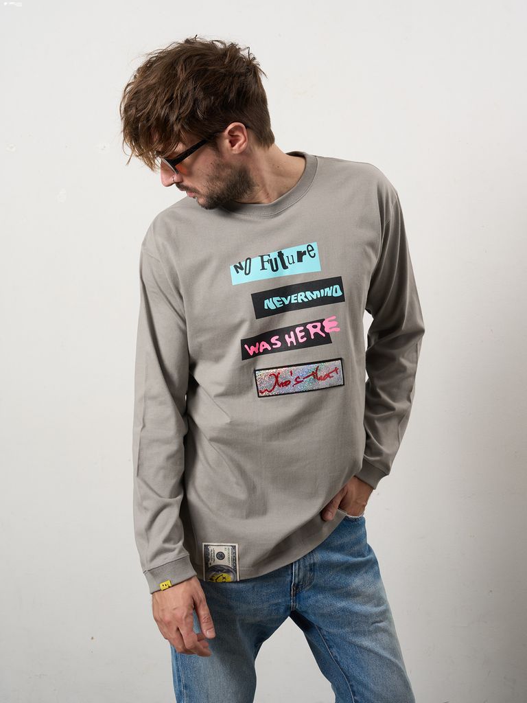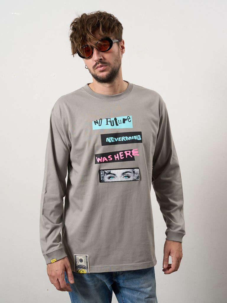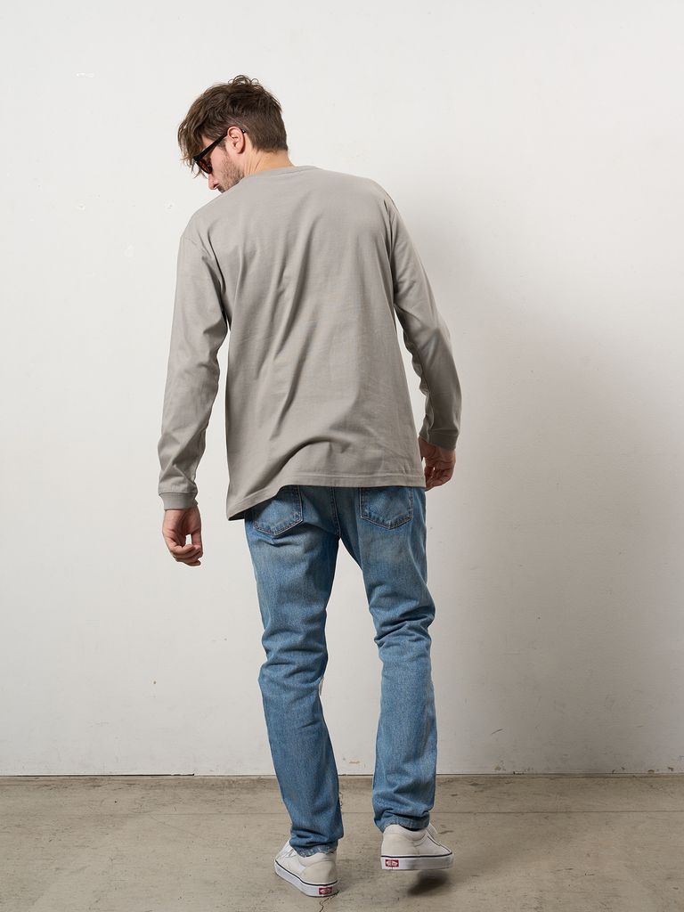 【予約品 10月16日(木) 締切】5.6ozコットン天竺 タイトルボックスシークイン LSシャツ / チャコールグレー