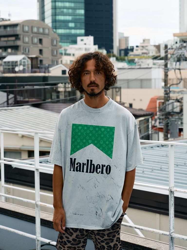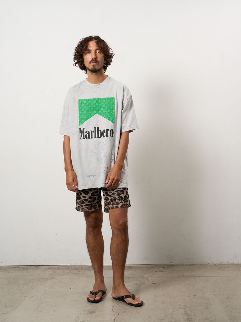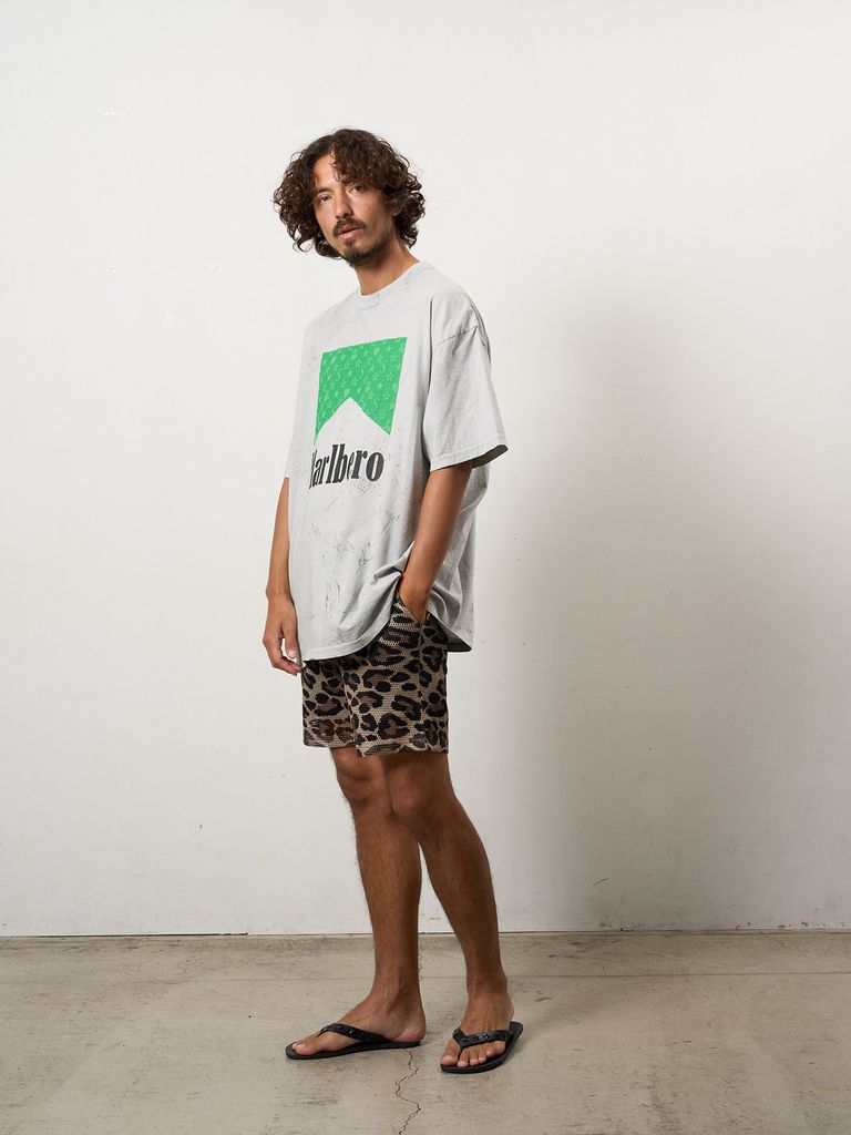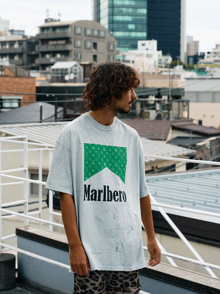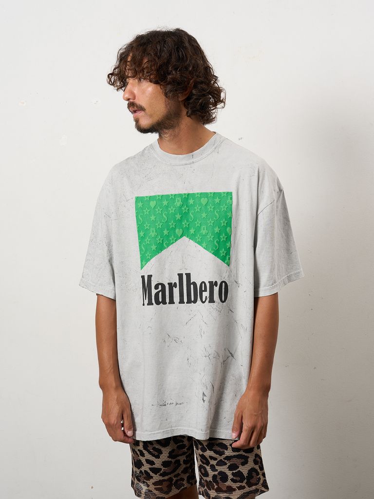 【予約品 10月16日(木) 締切】7ozピグメントウォッシュドコットン天竺 MARLBERO フォームプリント SSシャツ / ライトグレー