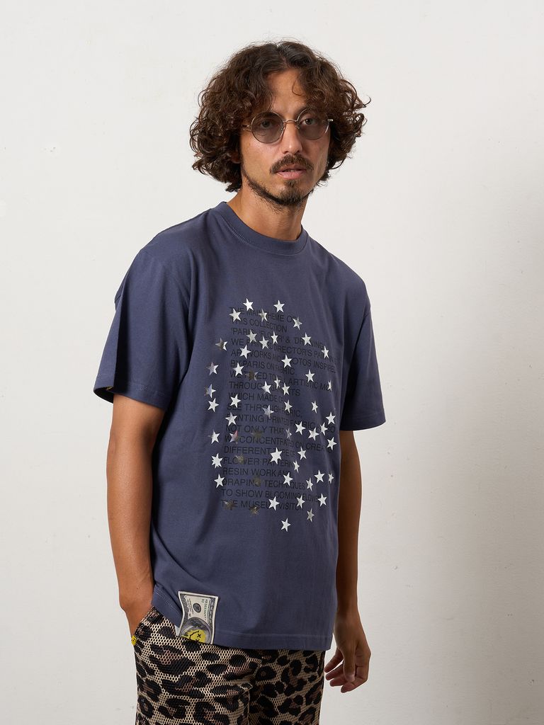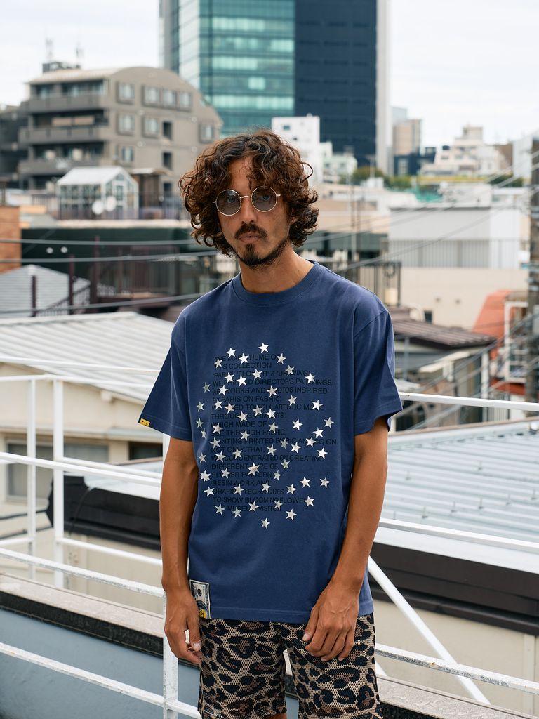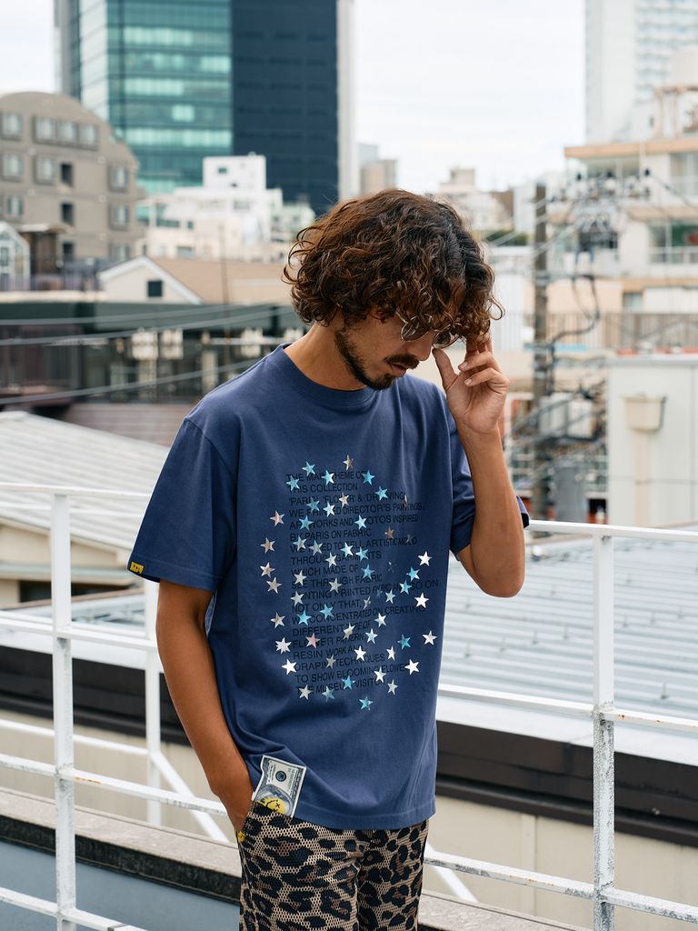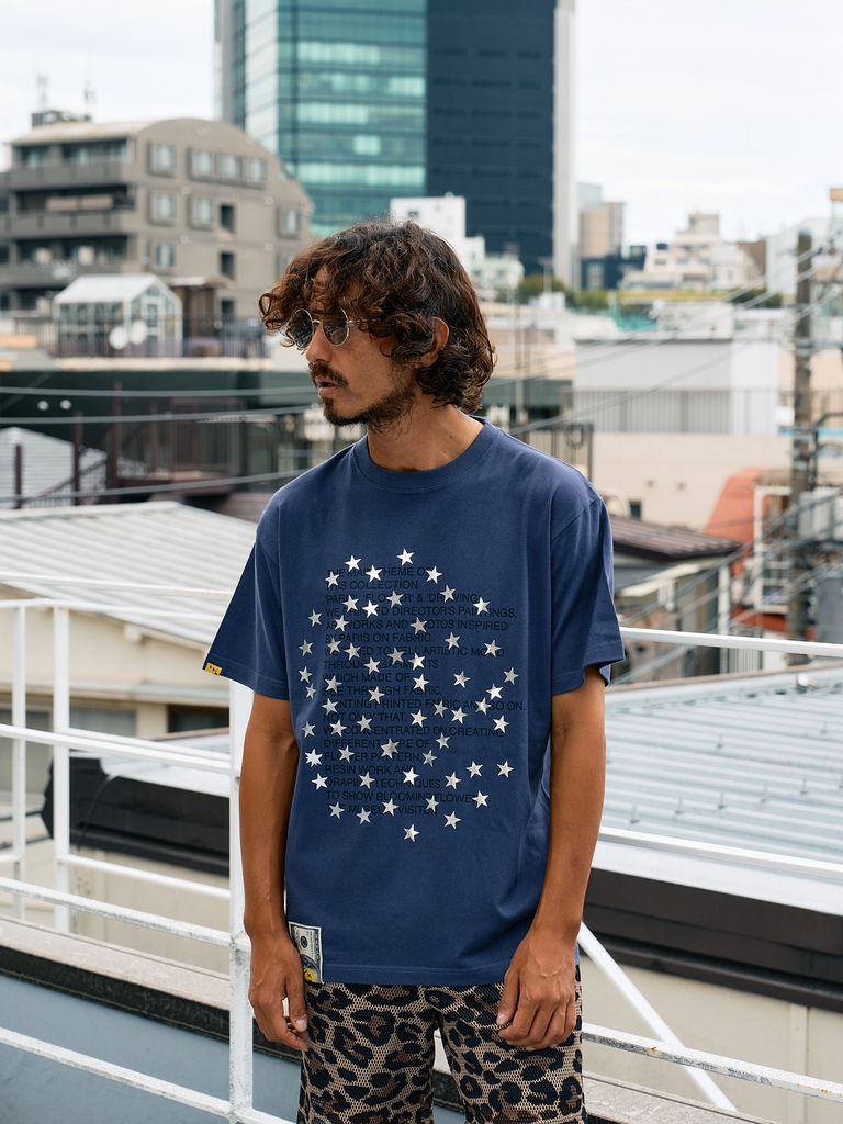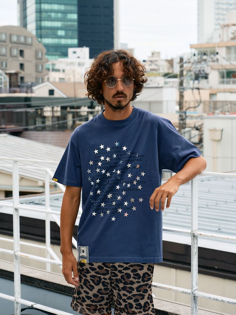 【予約品 10月16日(木) 締切】5.6ozコットン天竺 メッセージスター箔プリント SSシャツ / パープル