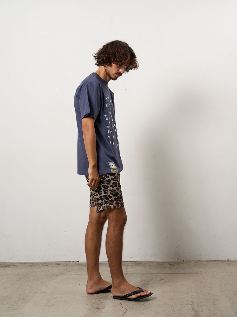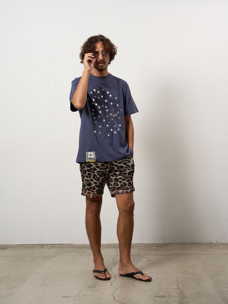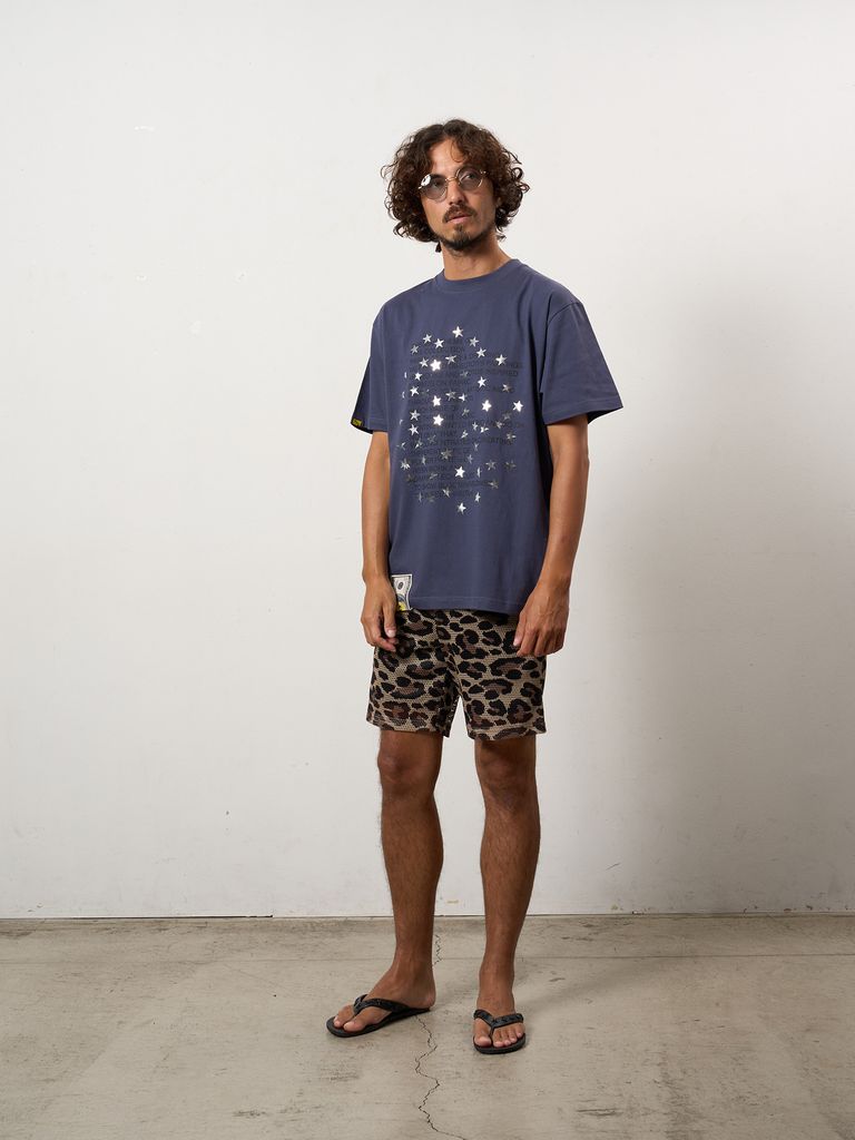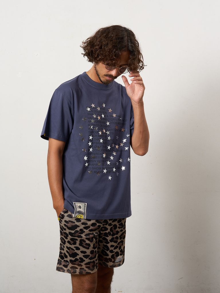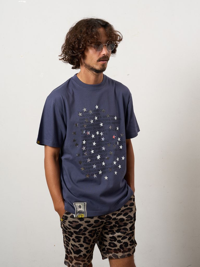 【予約品 10月16日(木) 締切】5.6ozコットン天竺 メッセージスター箔プリント SSシャツ / パープル
