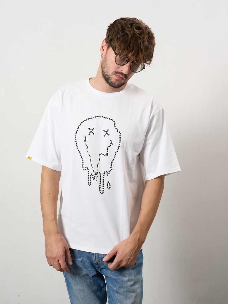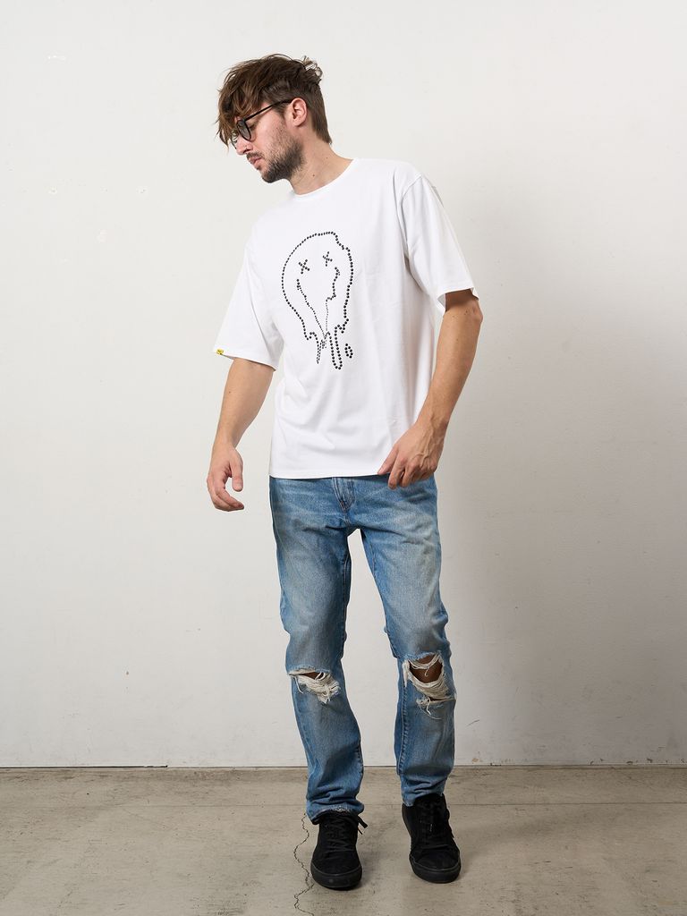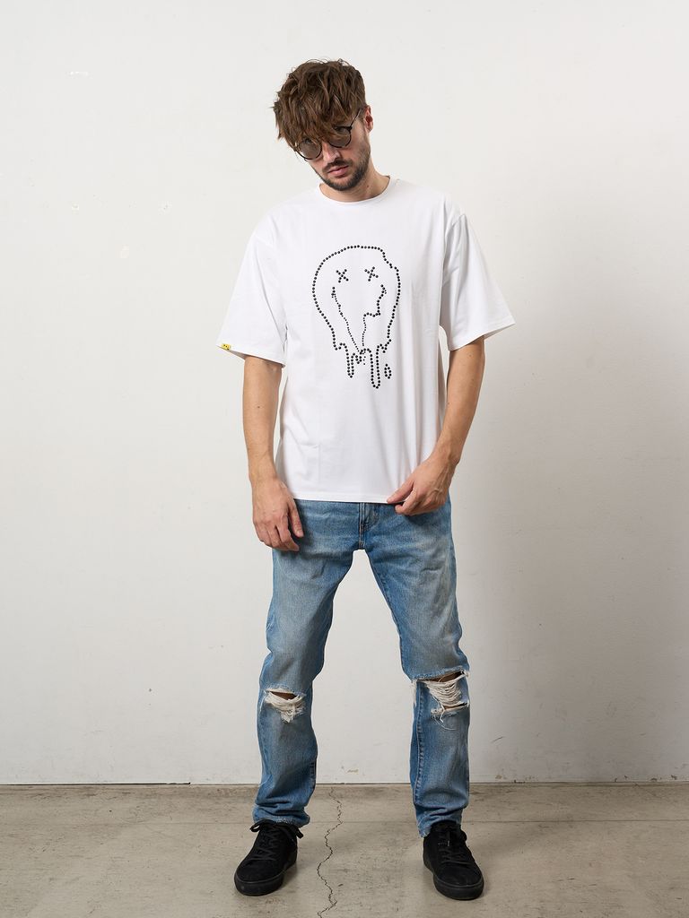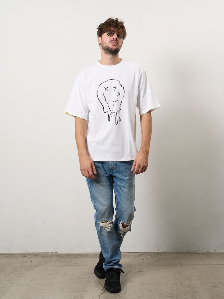 【予約品 10月16日(木) 締切】7ozコットン天竺 メタルスタッズスマイル SSシャツ / ホワイト