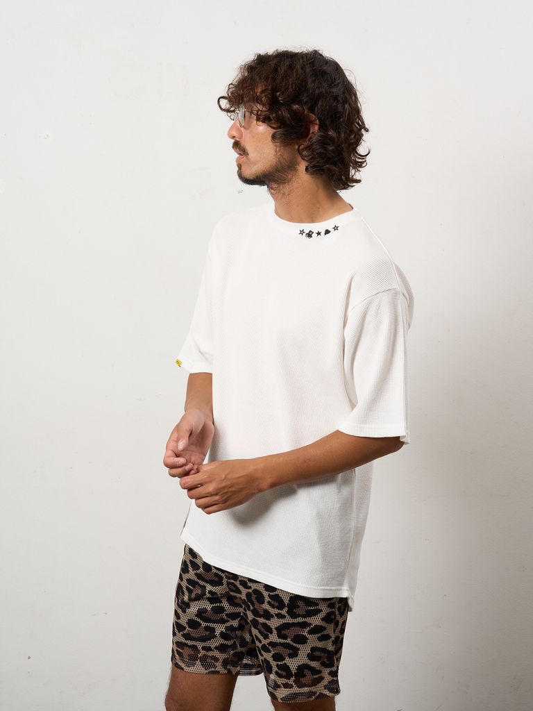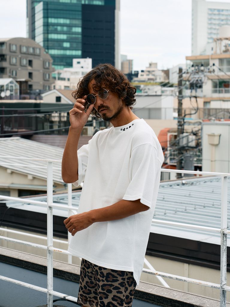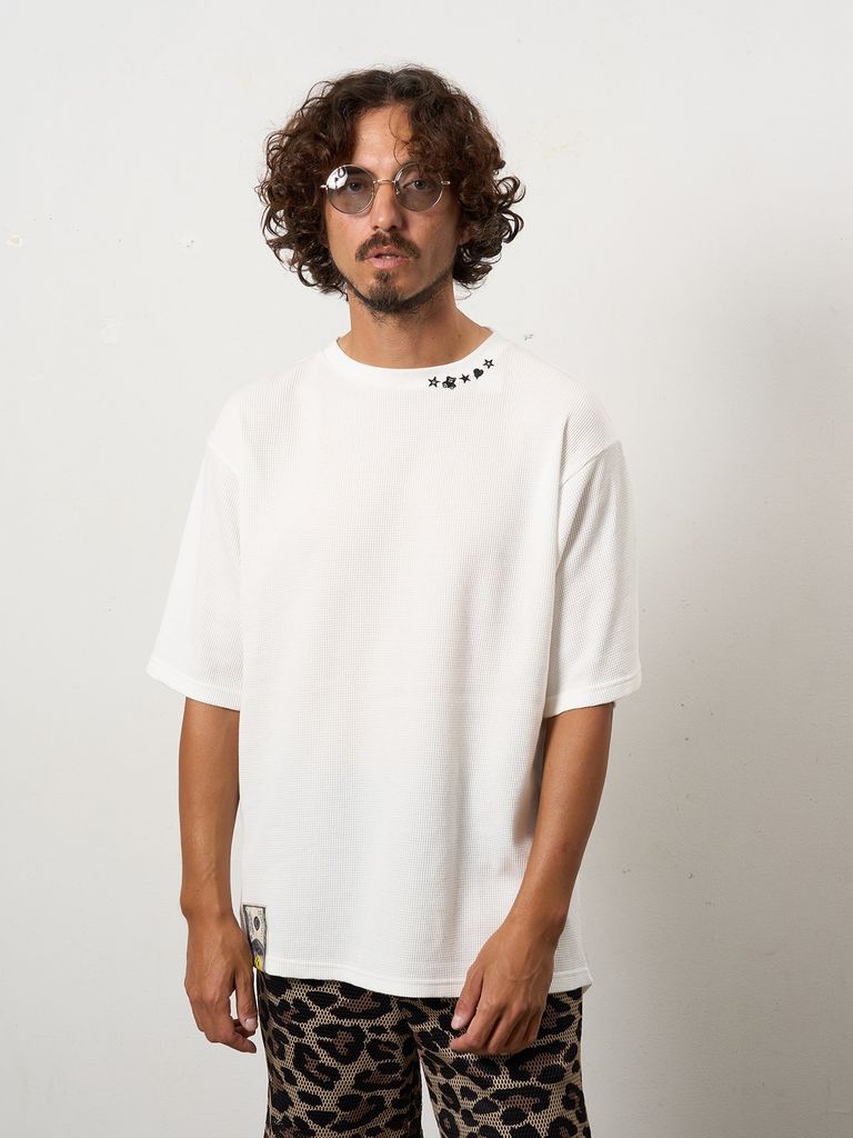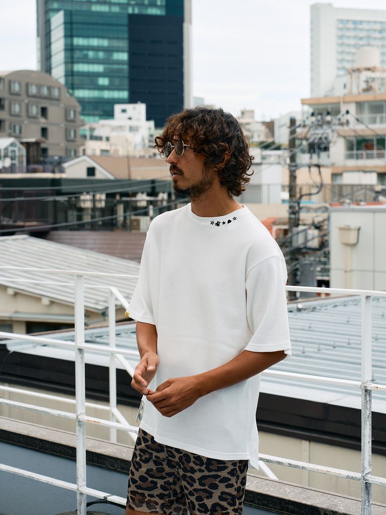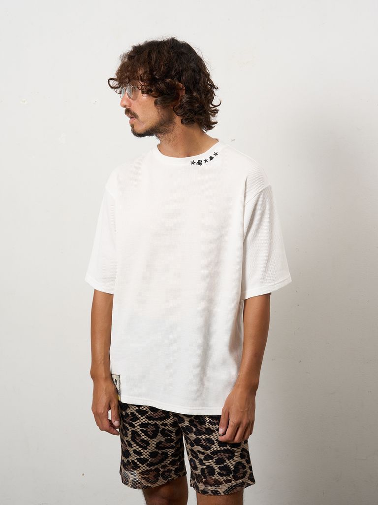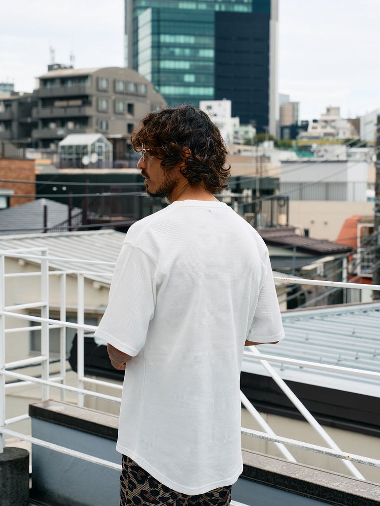 【予約品 10月16日(木) 締切】コットンヘビーワッフル ワンポイント刺繍 オーバーサイズSSシャツ / ホワイト