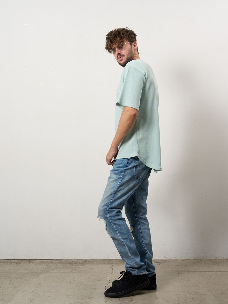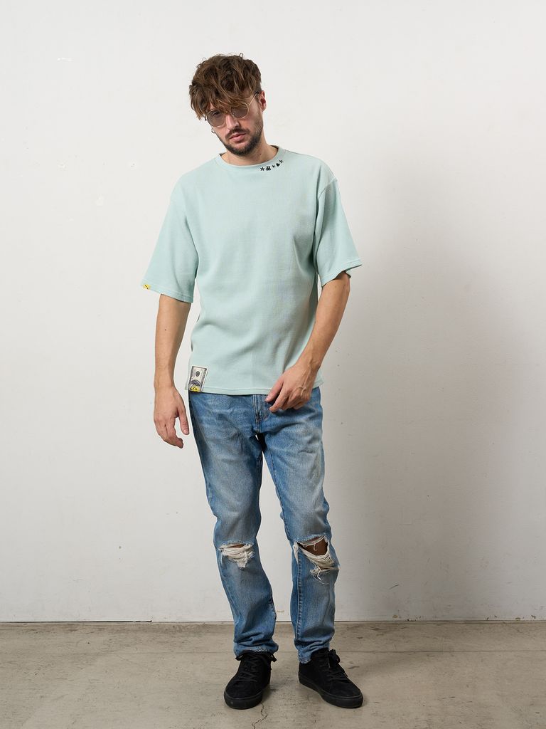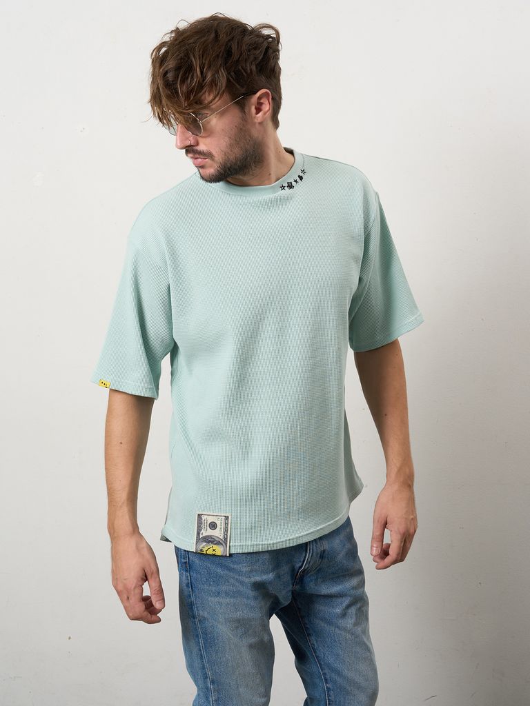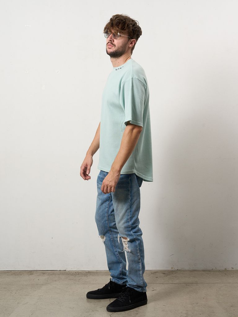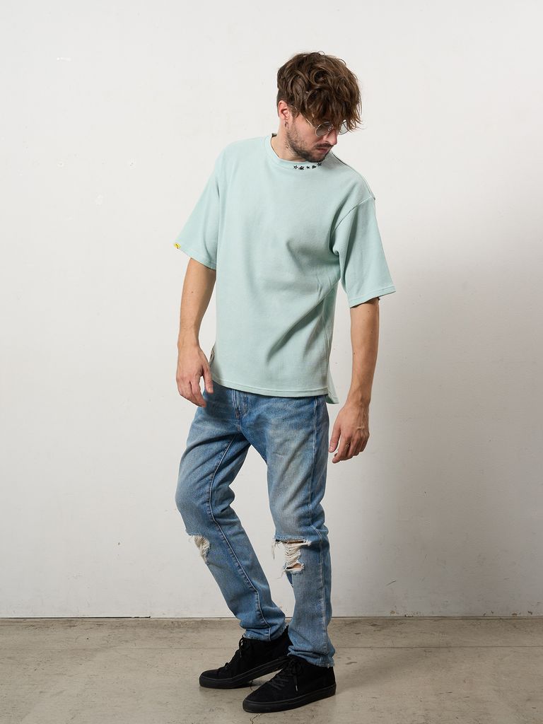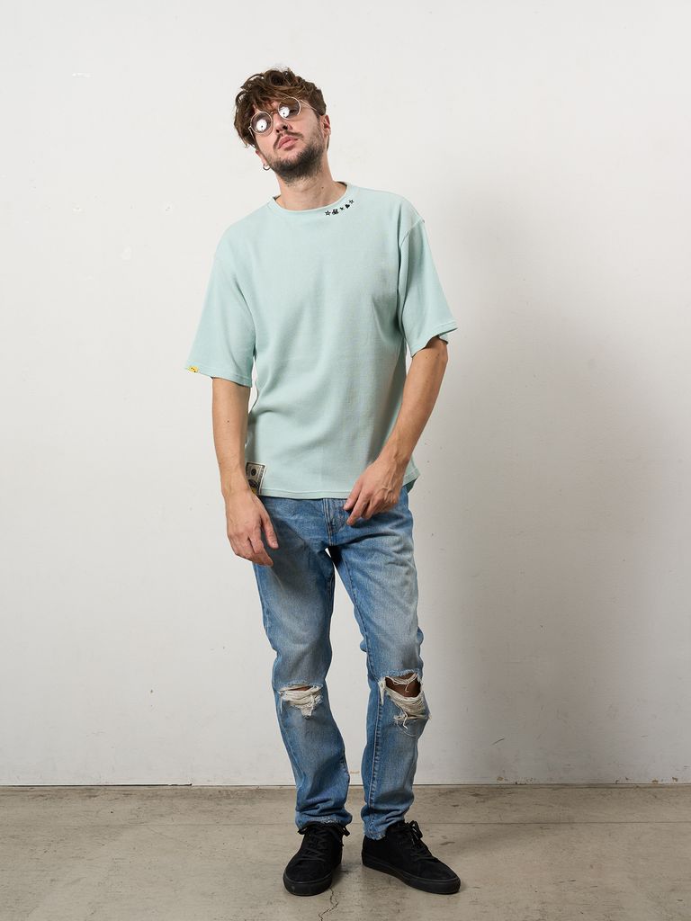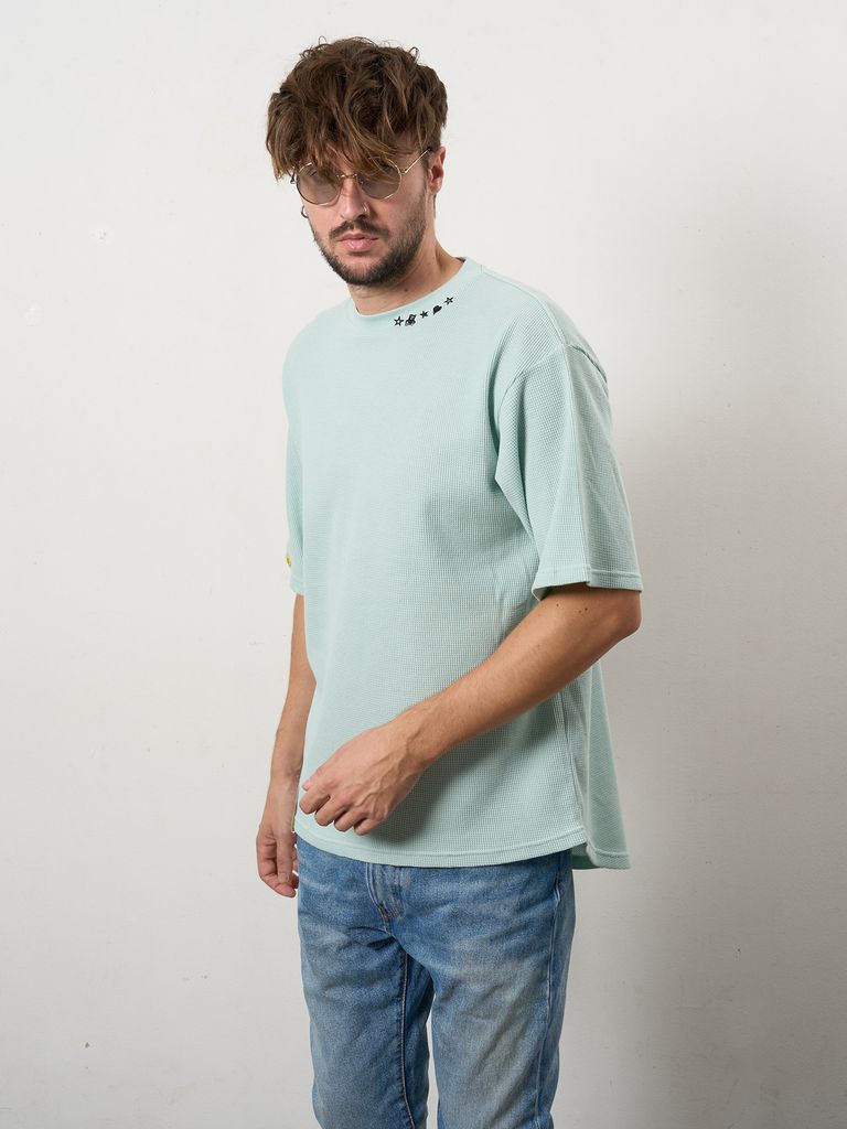 【予約品 10月16日(木) 締切】コットンヘビーワッフル ワンポイント刺繍 オーバーサイズSSシャツ / ミント