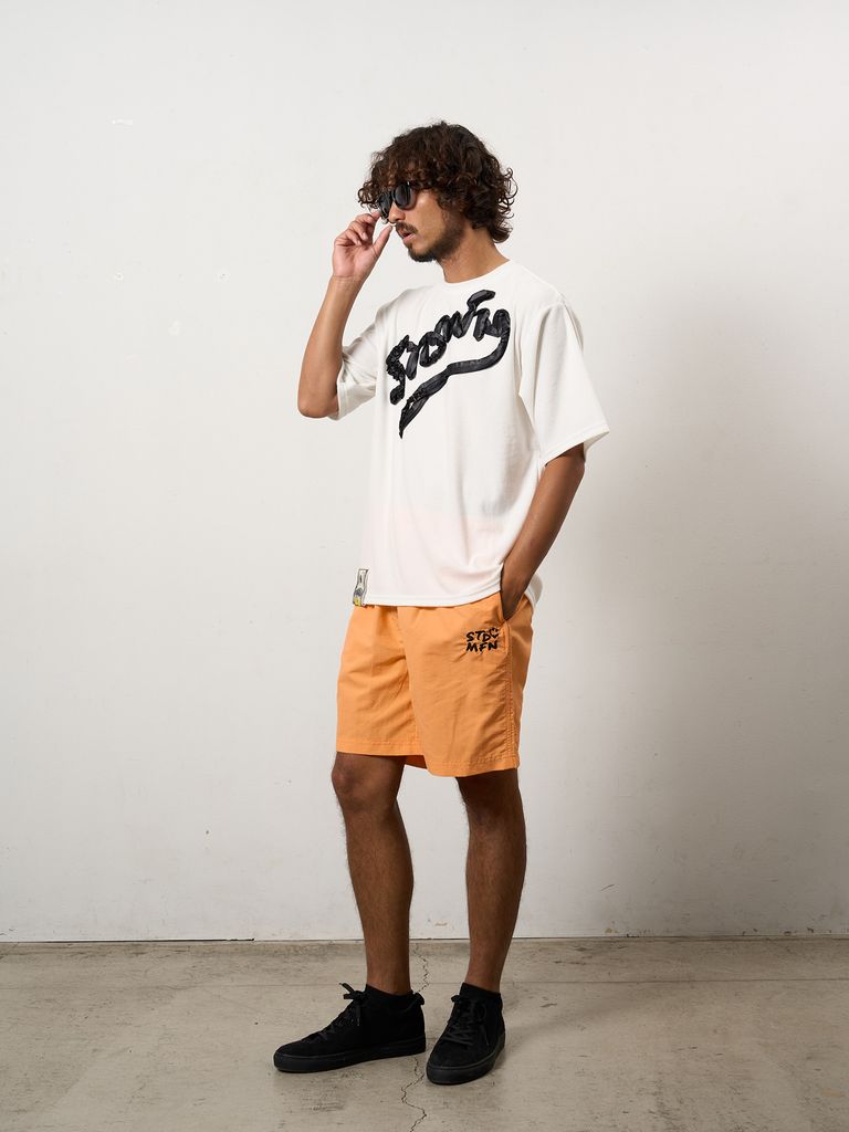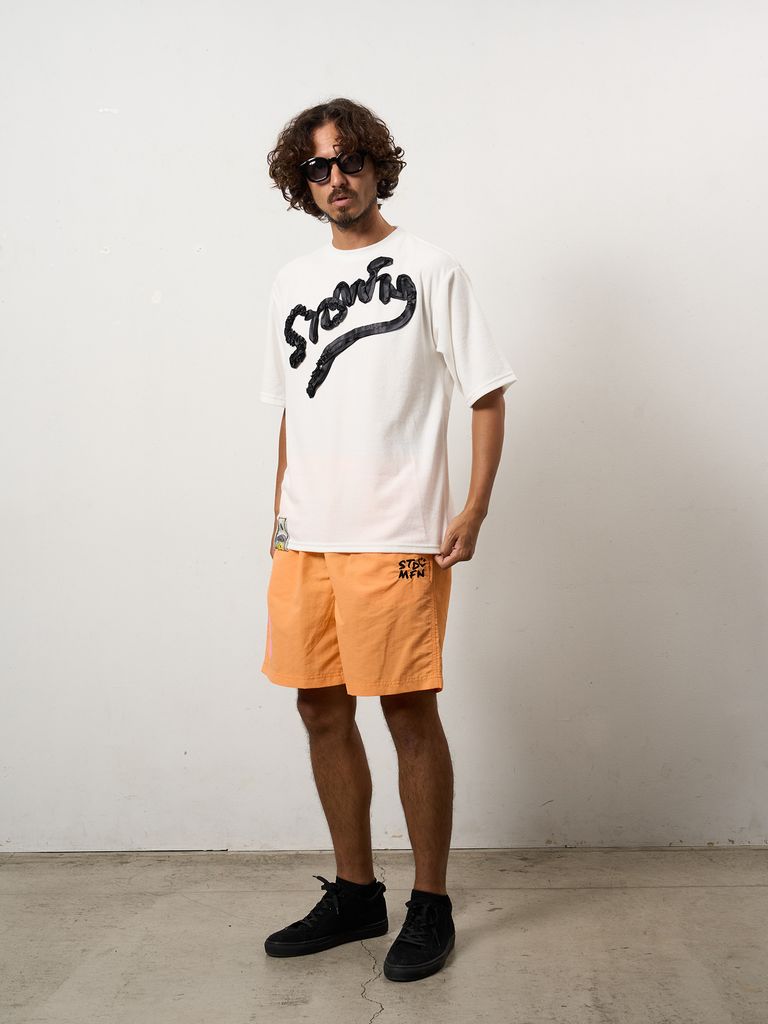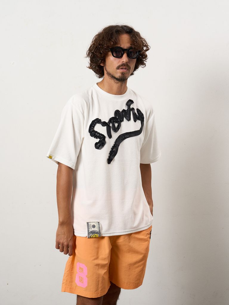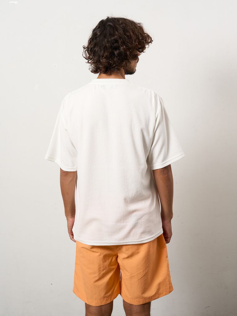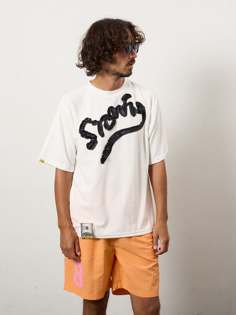 【予約品 10月16日(木) 締切】TCパイル ウェービーロゴテープ刺繍オーバーサイズSSシャツ / ホワイト