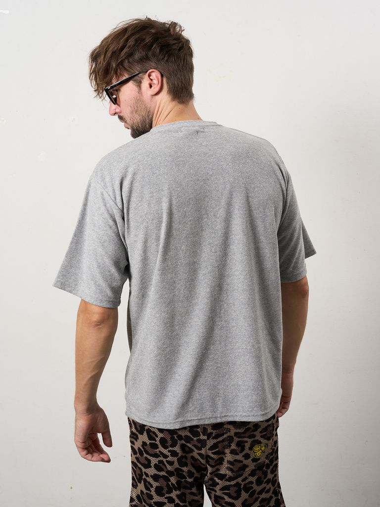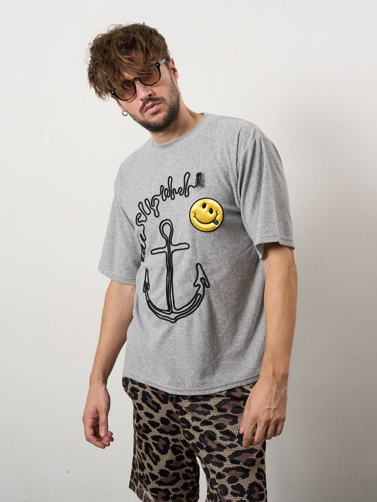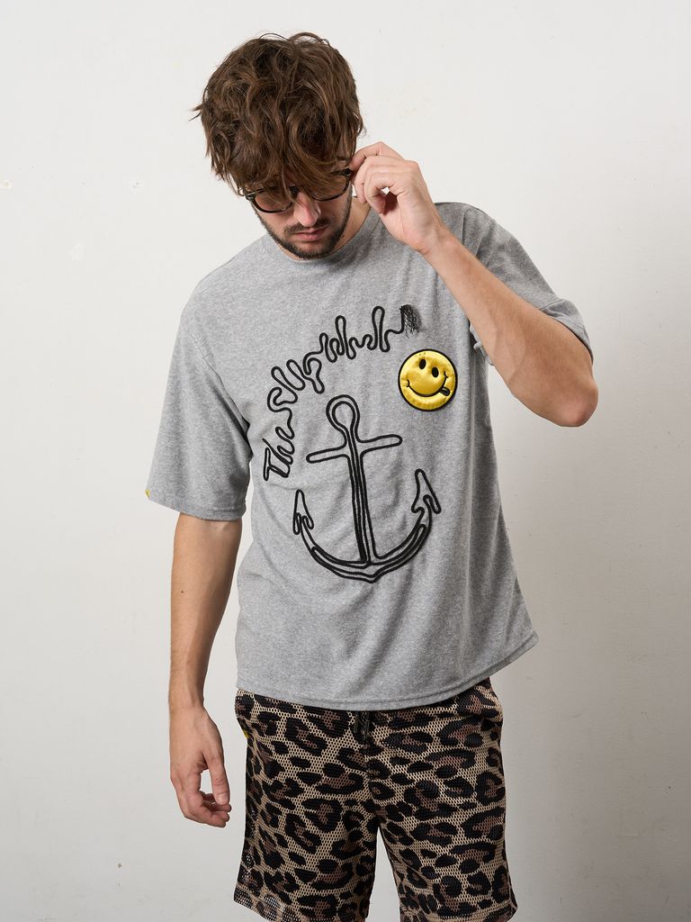 【予約品 10月16日(木) 締切】TCパイル アンカーロープ刺繍スマイルパフパッチオーバーサイズSSシャツ / 杢グレー