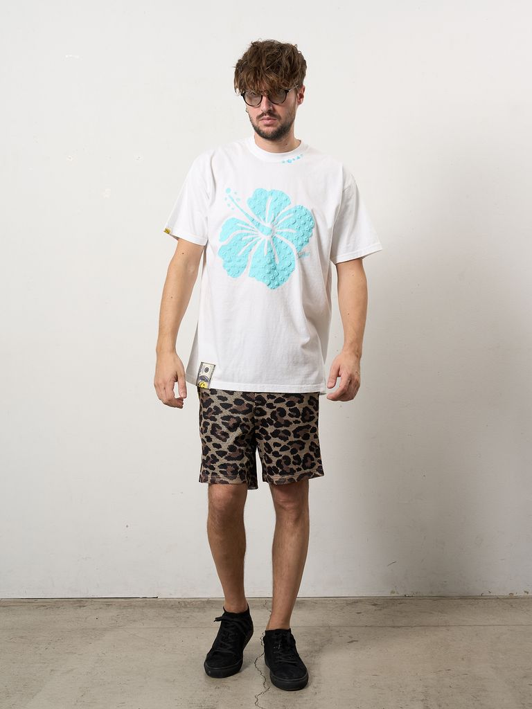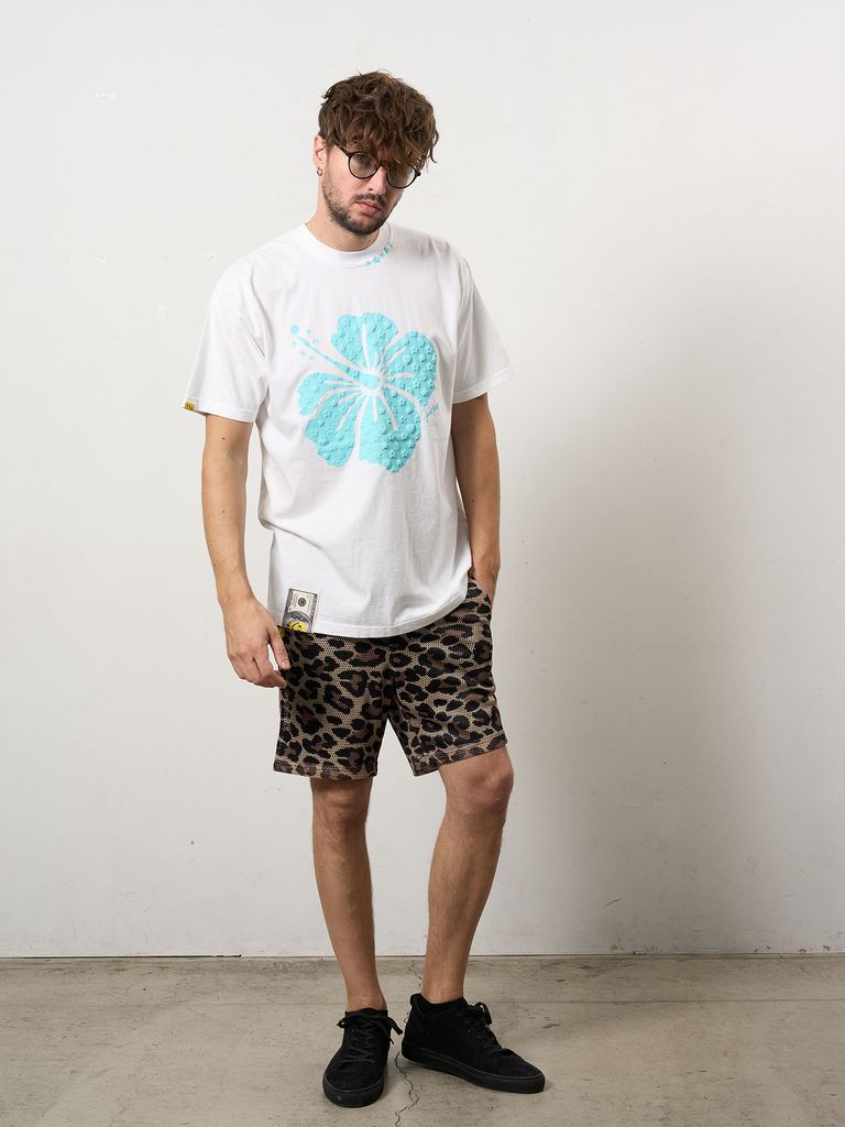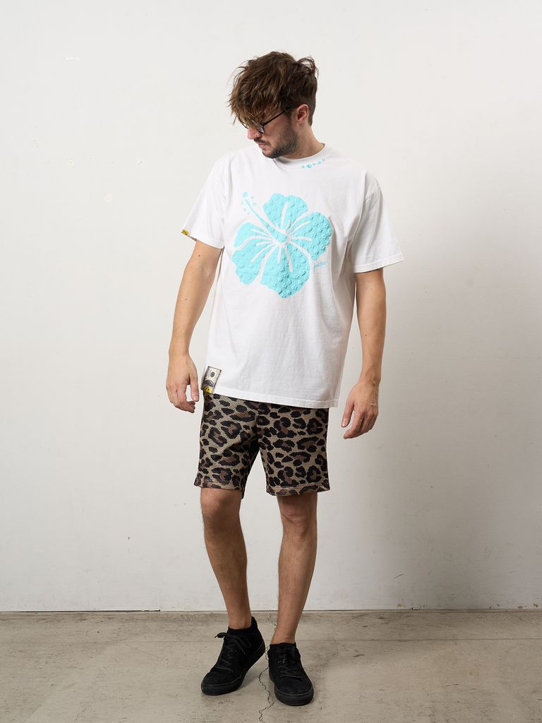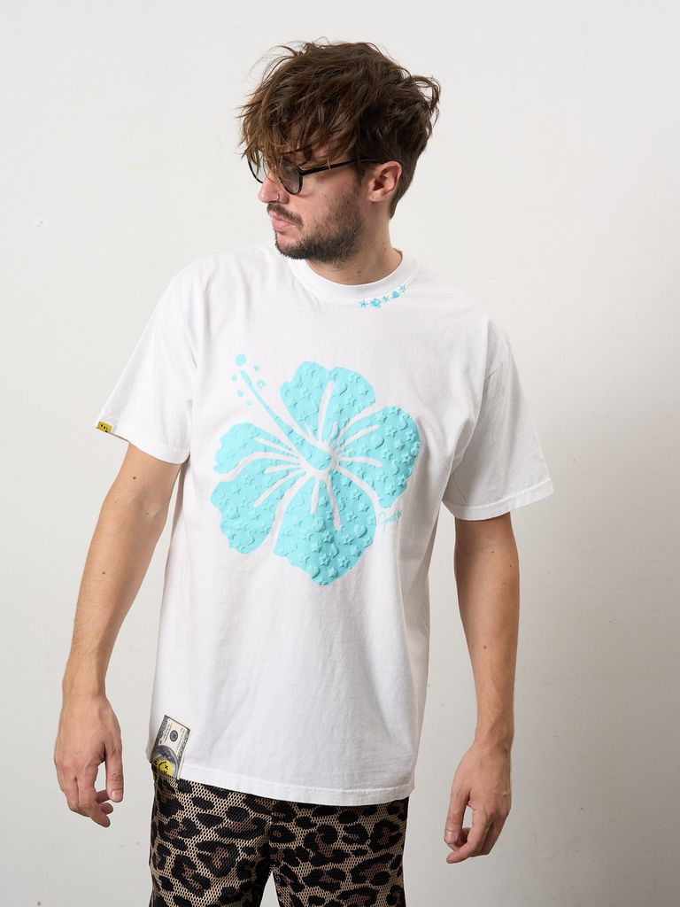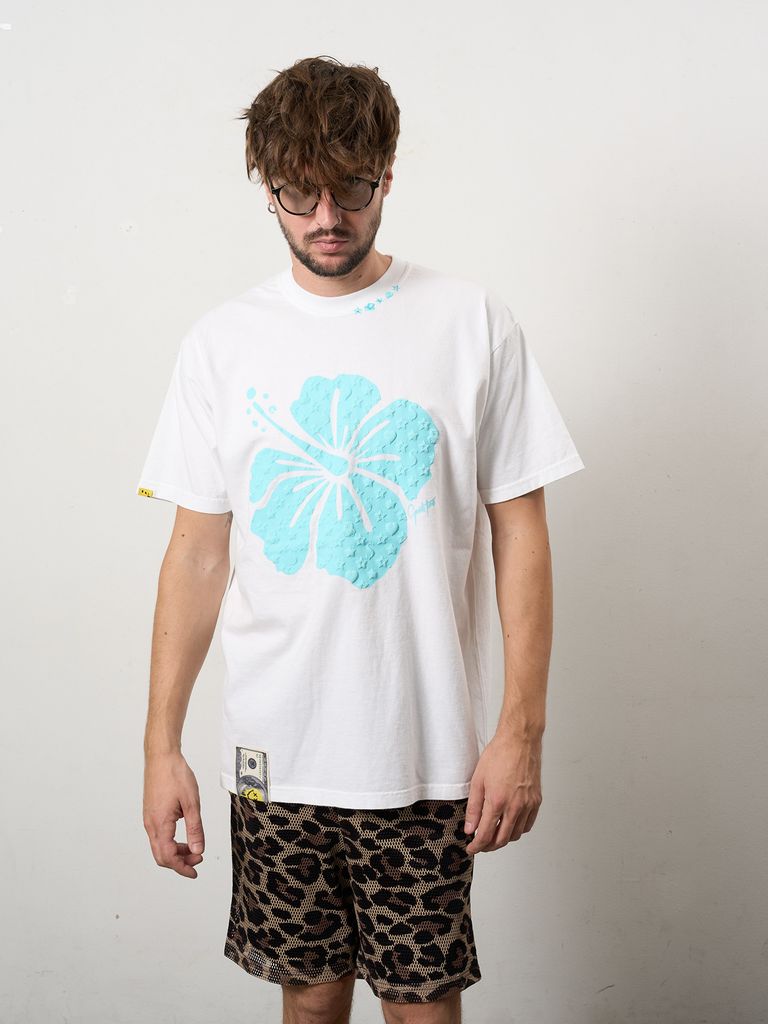 【予約品 10月16日(木) 締切】7oz ピグメントウォッシュドコットン天竺 フラワーフォームプリント SSシャツ / ホワイト