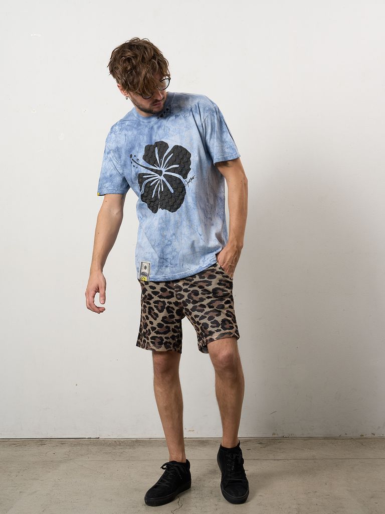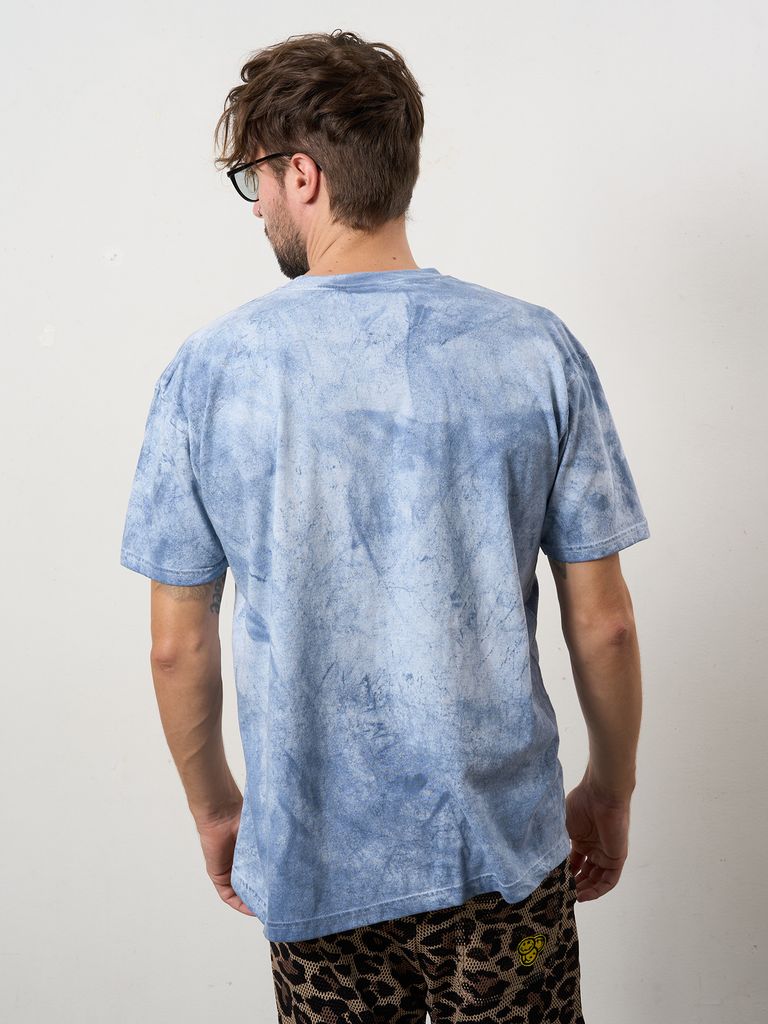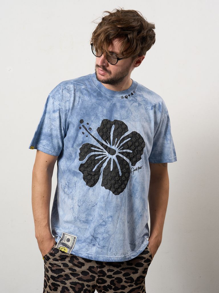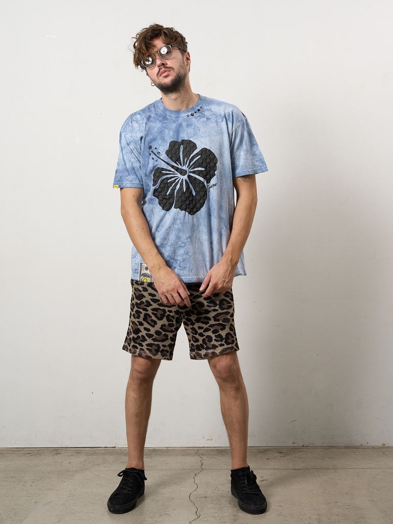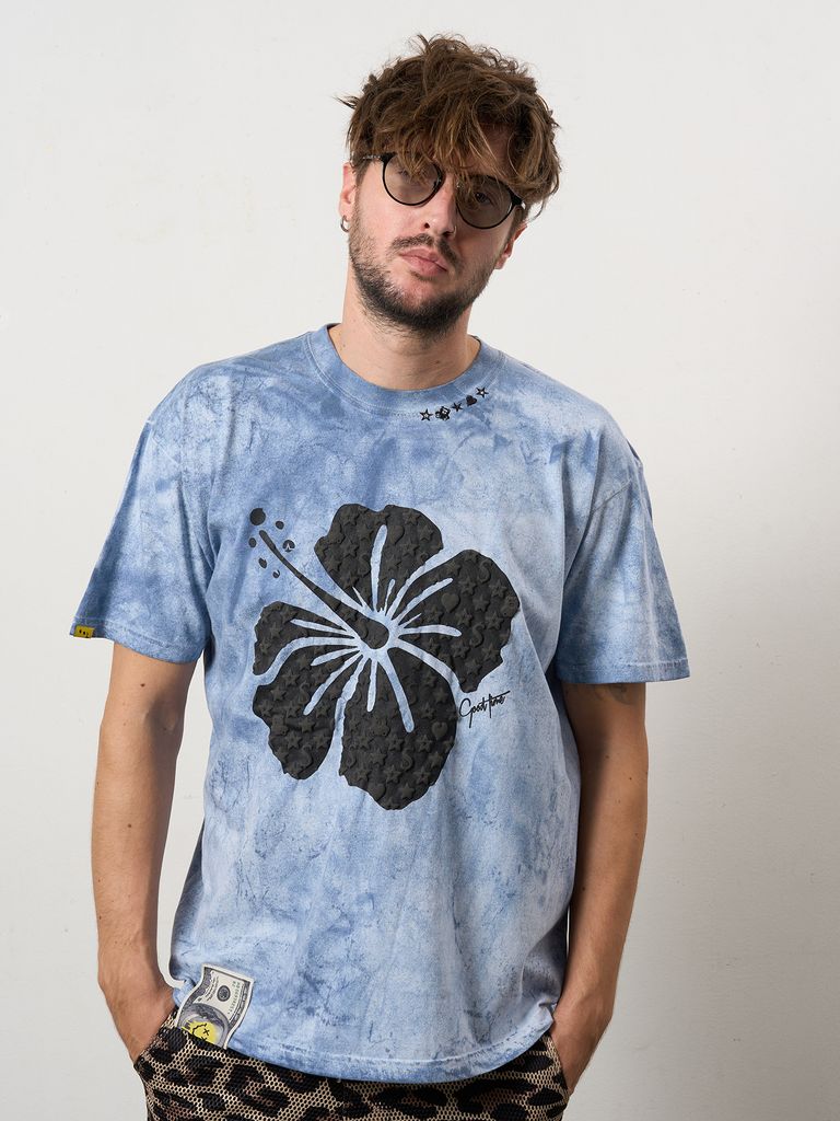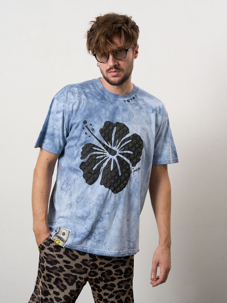 【予約品 10月16日(木) 締切】7oz ピグメントウォッシュドコットン天竺 フラワーフォームプリント SSシャツ / ライトブルー