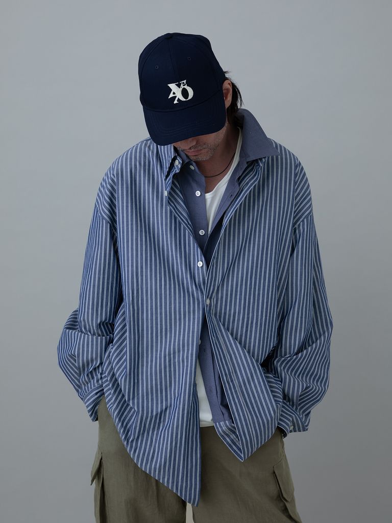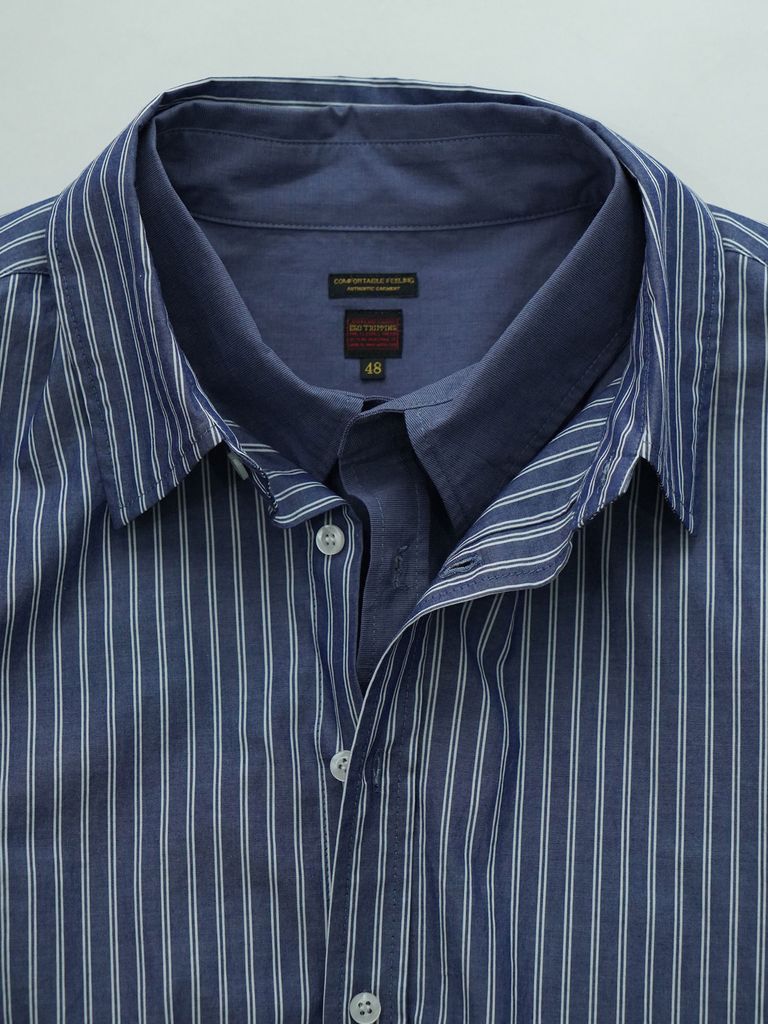 【予約品 10月26日(日) 締切】DOUBLESHIRT / レイヤード ストライプシャツ / NAVY.st