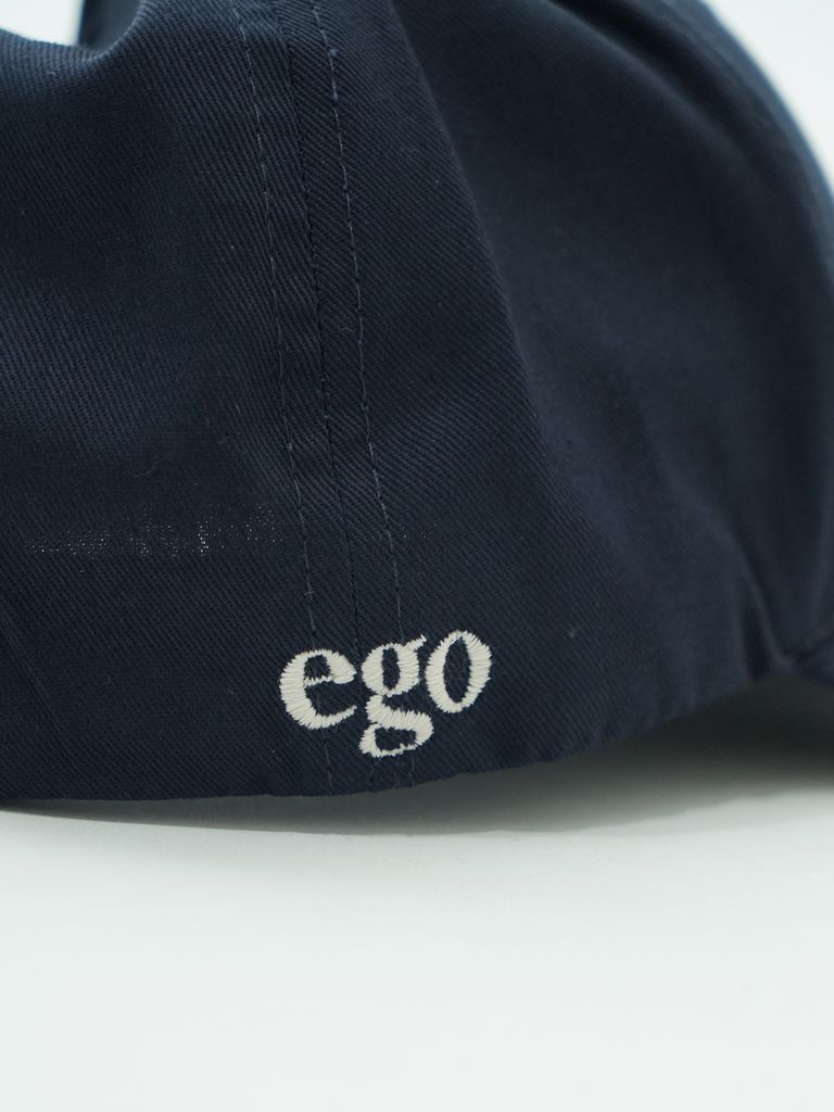 エゴトリッピングの象徴的なロゴを現代アート風にアレンジしたマークがフロントに刺繍され、ブランドの個性を際立たせています。