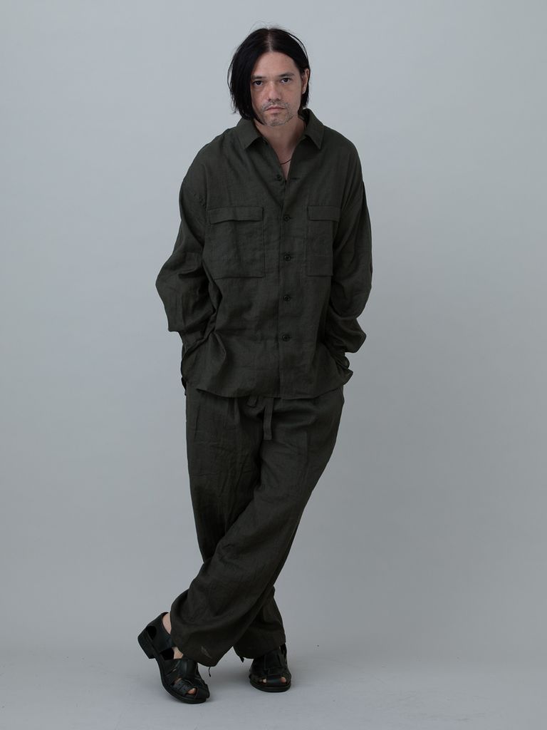 【予約品 11月23日(日) 締切】LINENOVERSHIRT / リネン ポロシャツ / CHARCOAL