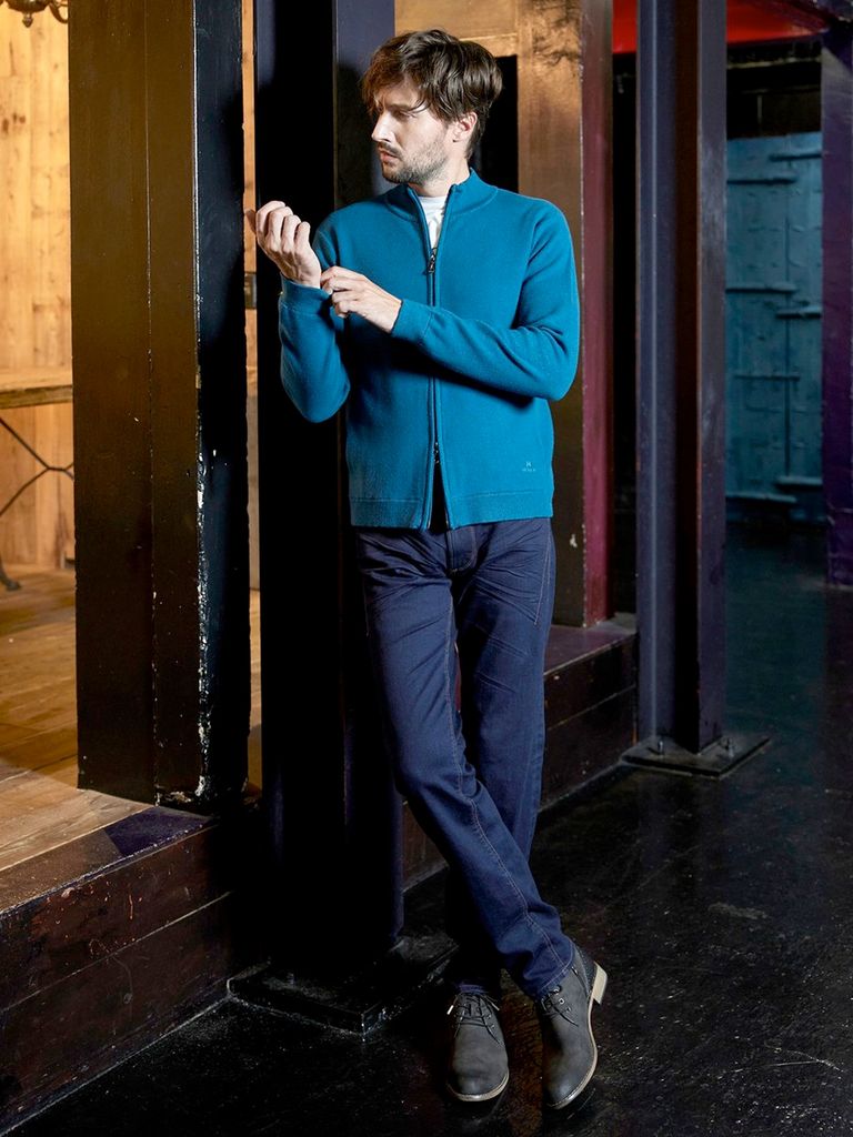 アウターとしても、コートのインナーとしても着用していただける汎用性の高いブルゾンニットになります。