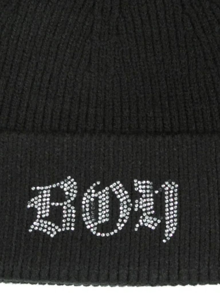 BOY RHINESTONE KNIT CAP BLACK×クリア【B224N9000502】
