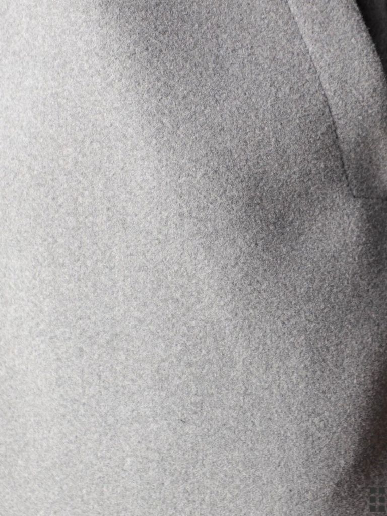 ポリエステルのニットジャージ素材の表面を起毛、縮絨した様におさえたメルトン風仕上げのウールライクな素材。ジャージ素材なのでストレッチ性があり、プリッとした横張り感が強いのでシルエットを綺麗に作ります。