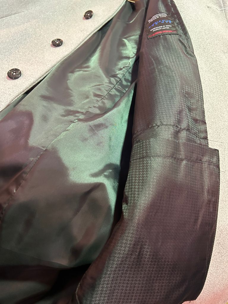 胸辺りに身返しとの切り替えを利用したスラッシュポケットを両身に配置しています。上まで釦止めが出来るので防風性も高く、保温性の高い裏地を採用した総裏仕様なので防寒性も良いです。